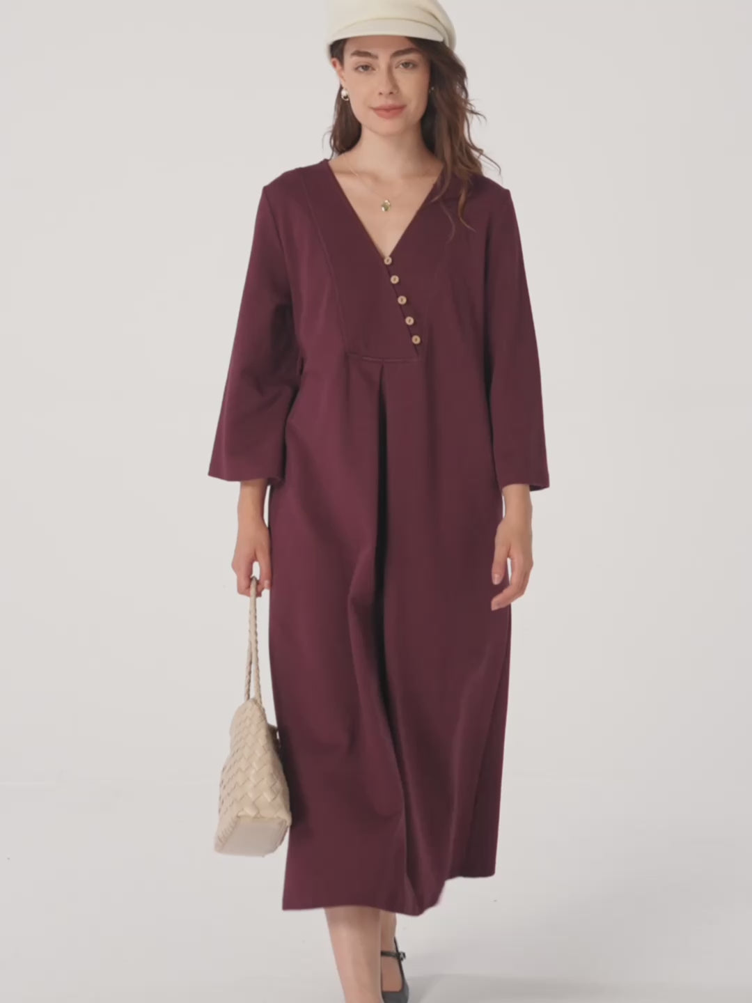 Cotton Asymmetric V-Neck Pleat Maxi Dress BELLATRIX