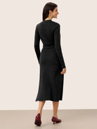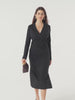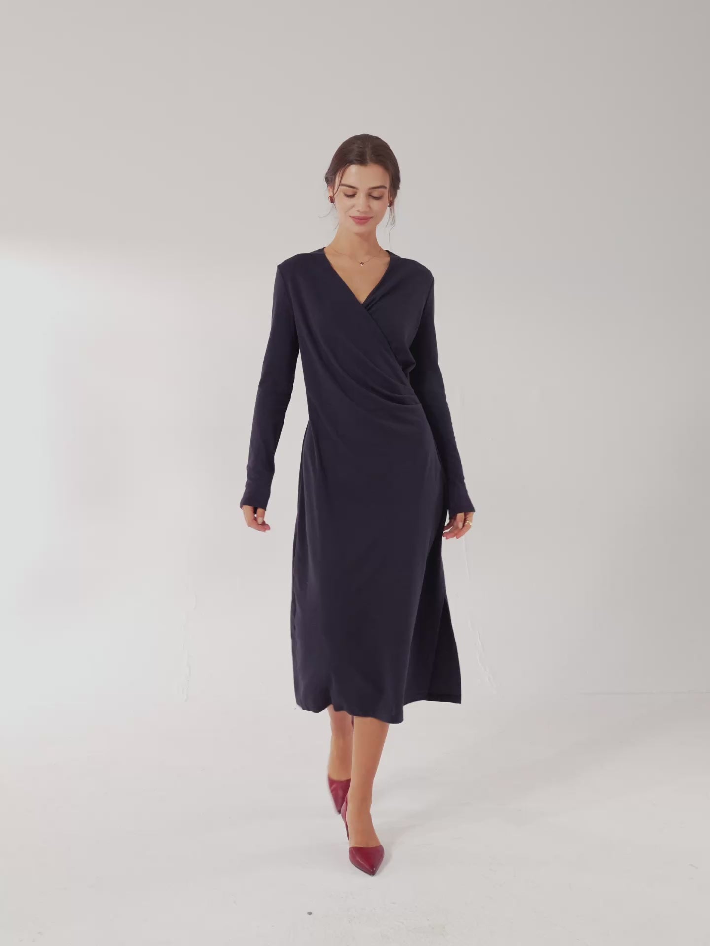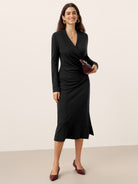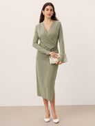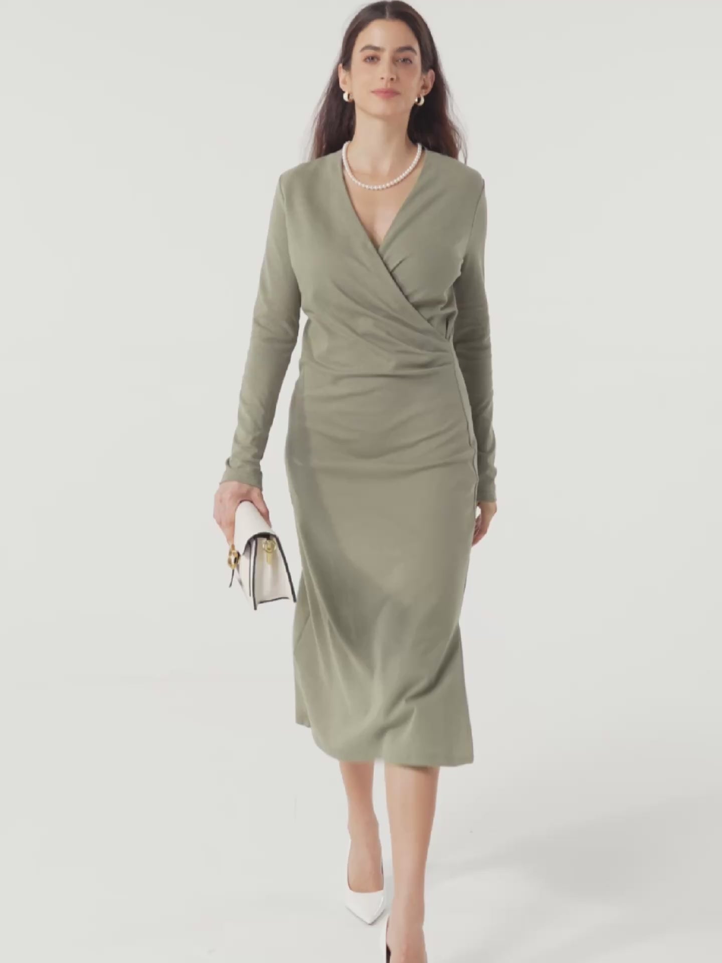Linen Crossover V-Neck Wrap Stretch Midi Dress MARNIE