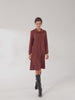A midi dress crafted from stretchy Tencel Wool with a draped neckline and practical design details, offering warmth and versatility in a maroon hue. Perfect for layering in seasonal transitions or climate-controlled spaces.