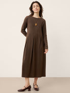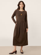 Wool Arc-Panel Sculpted Pleats Maxi Dress CALISTA