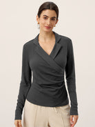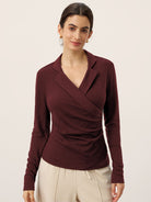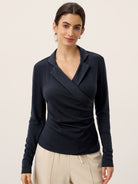 Wool Asymmetric Side Ruched Stretch Top BRIONY