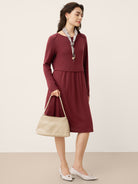 Wool Lyocell Accordion Pleat Crew Neck Midi Dress AILANI