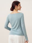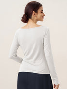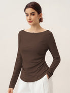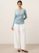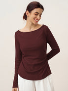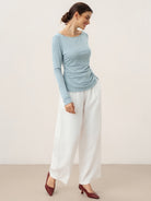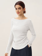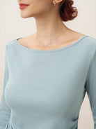 Wool Side Ruched Boat Neck Stretch Top VIVIEN