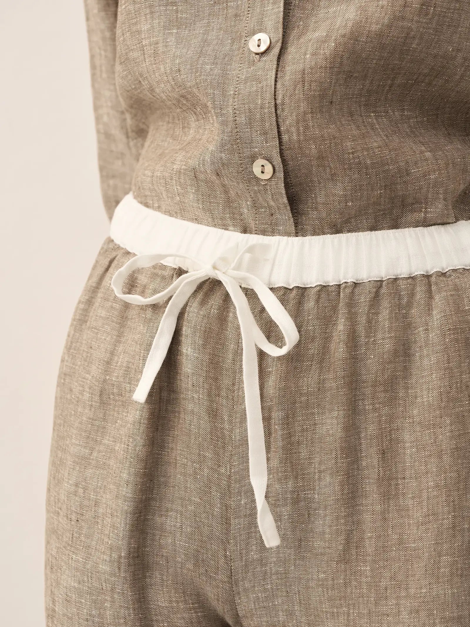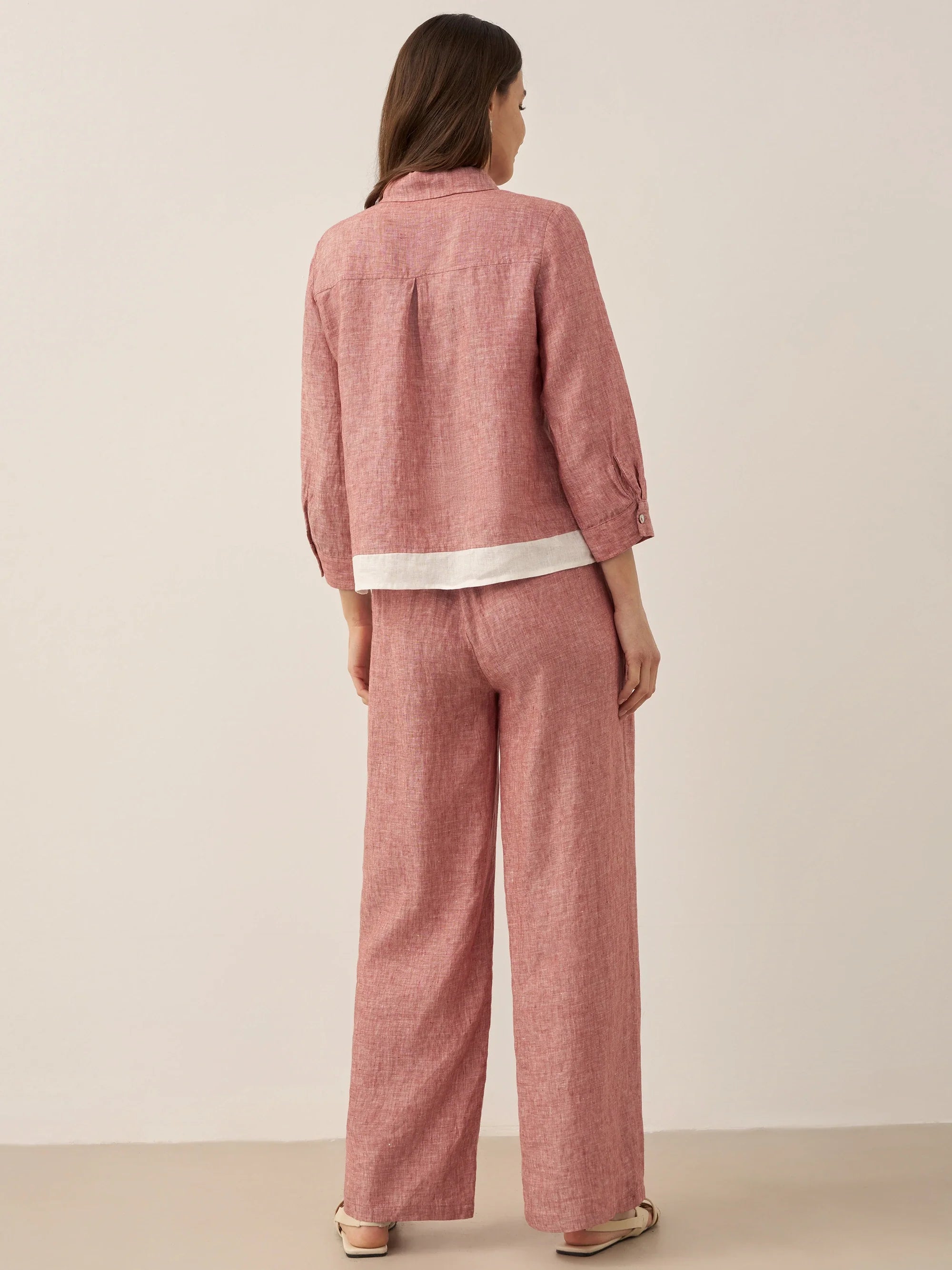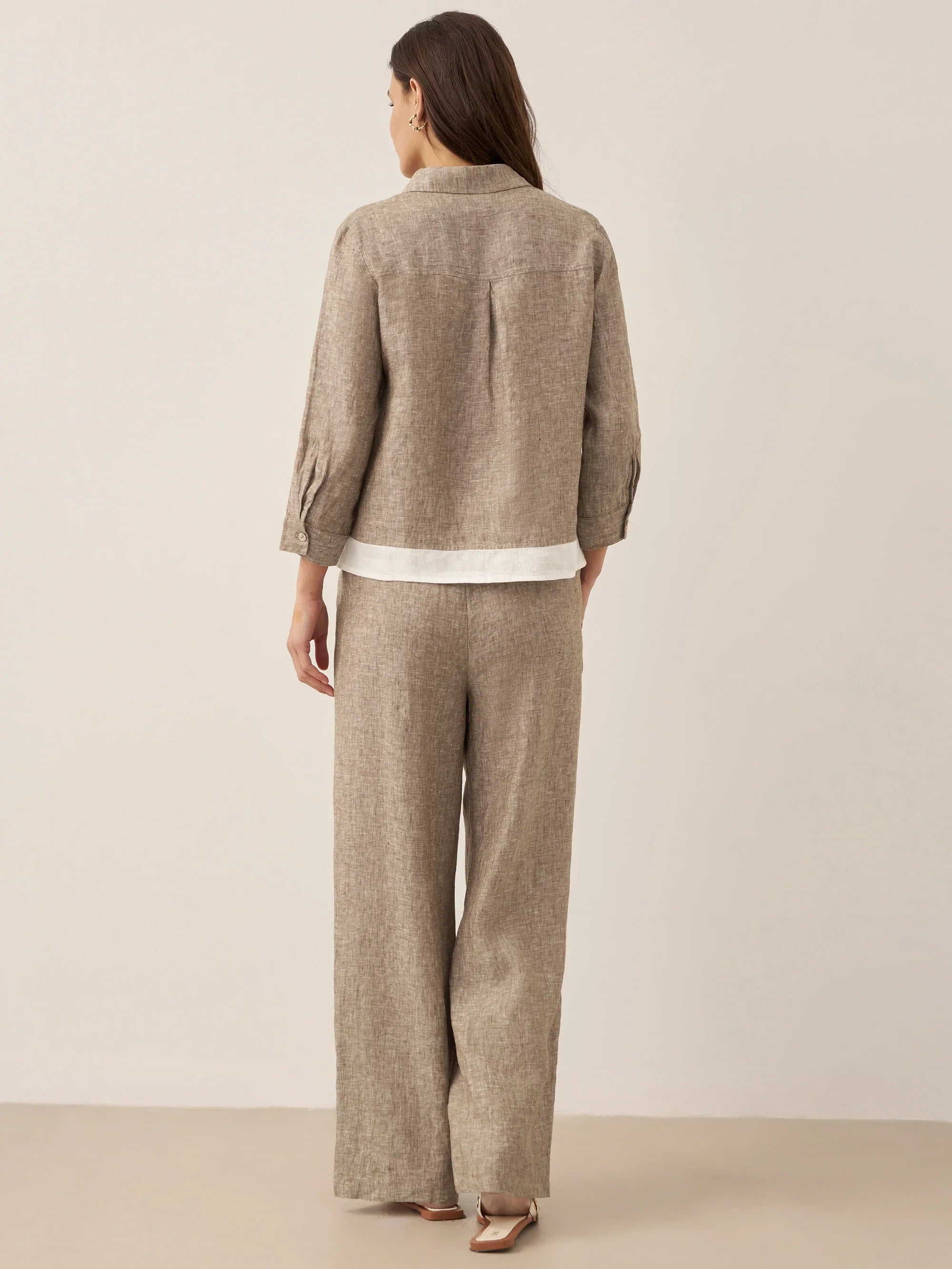 100% lightweight European linen(<145g/m²), offering a soft, flexible garment.