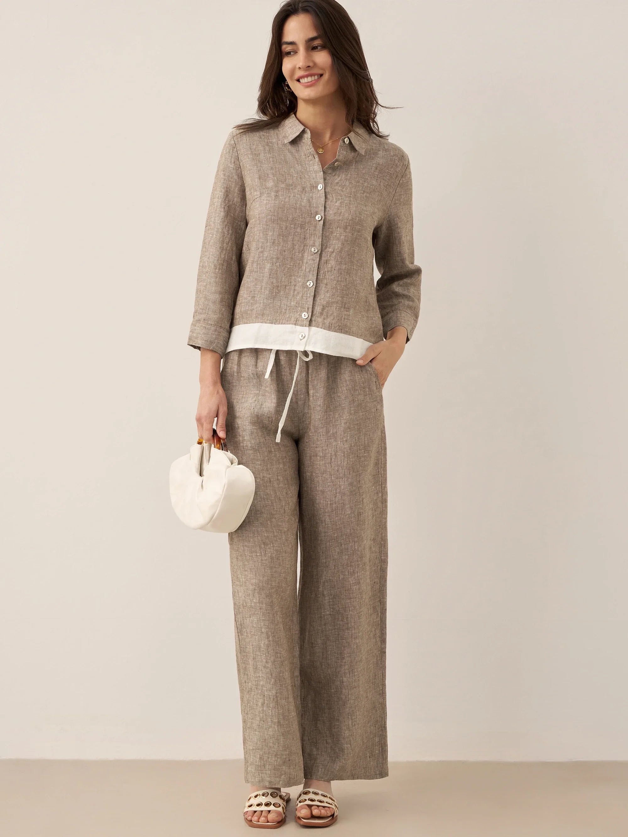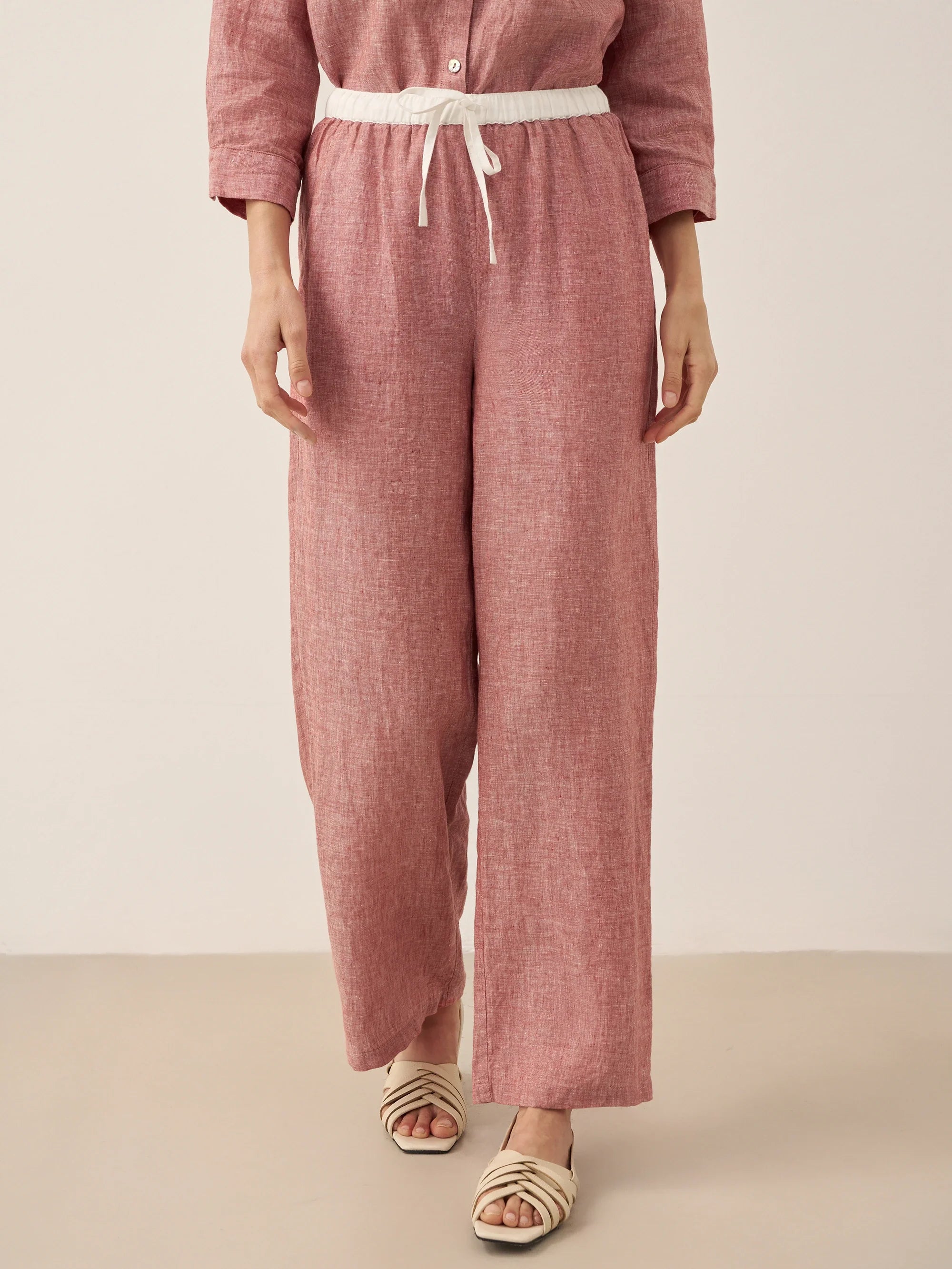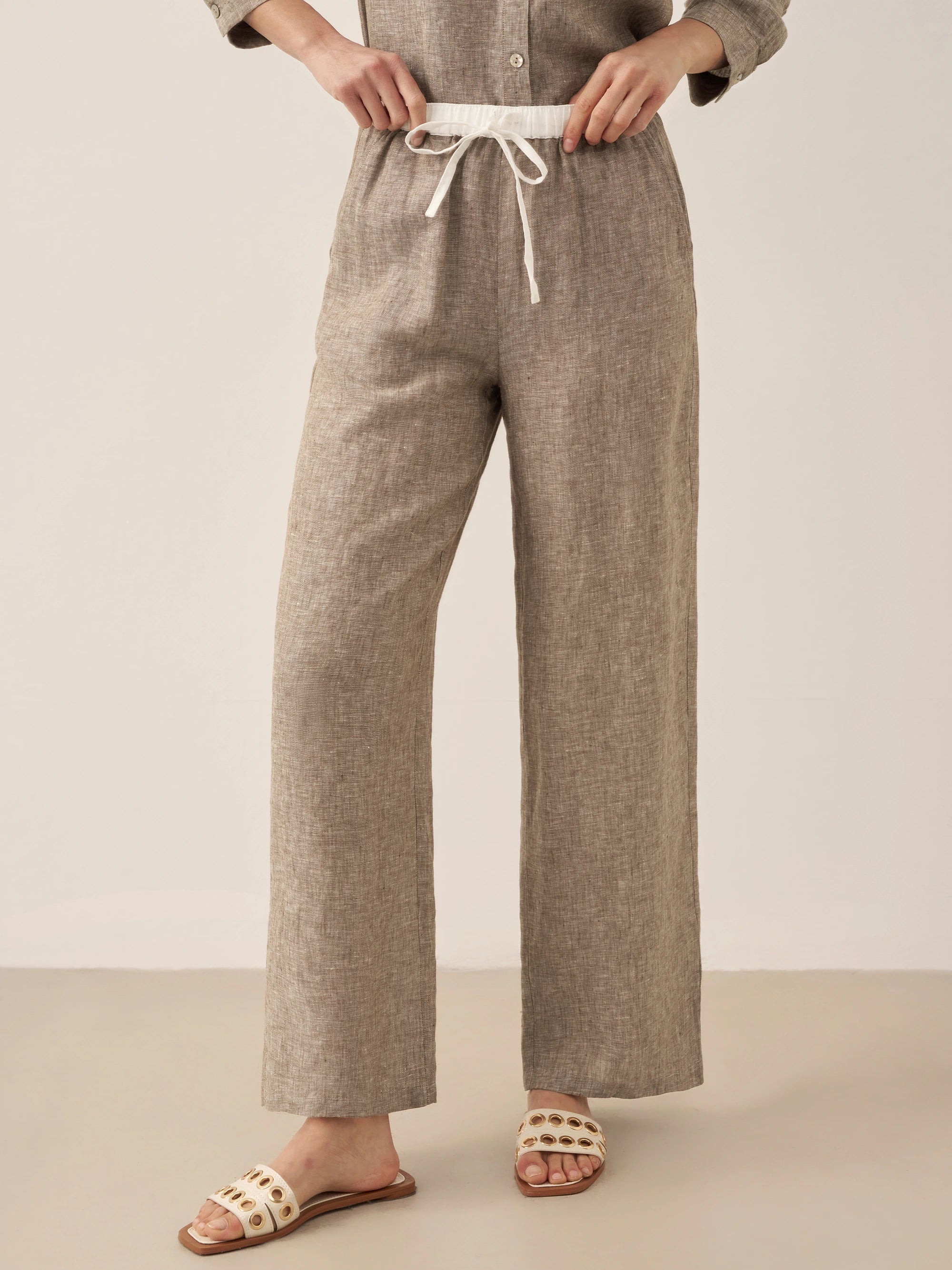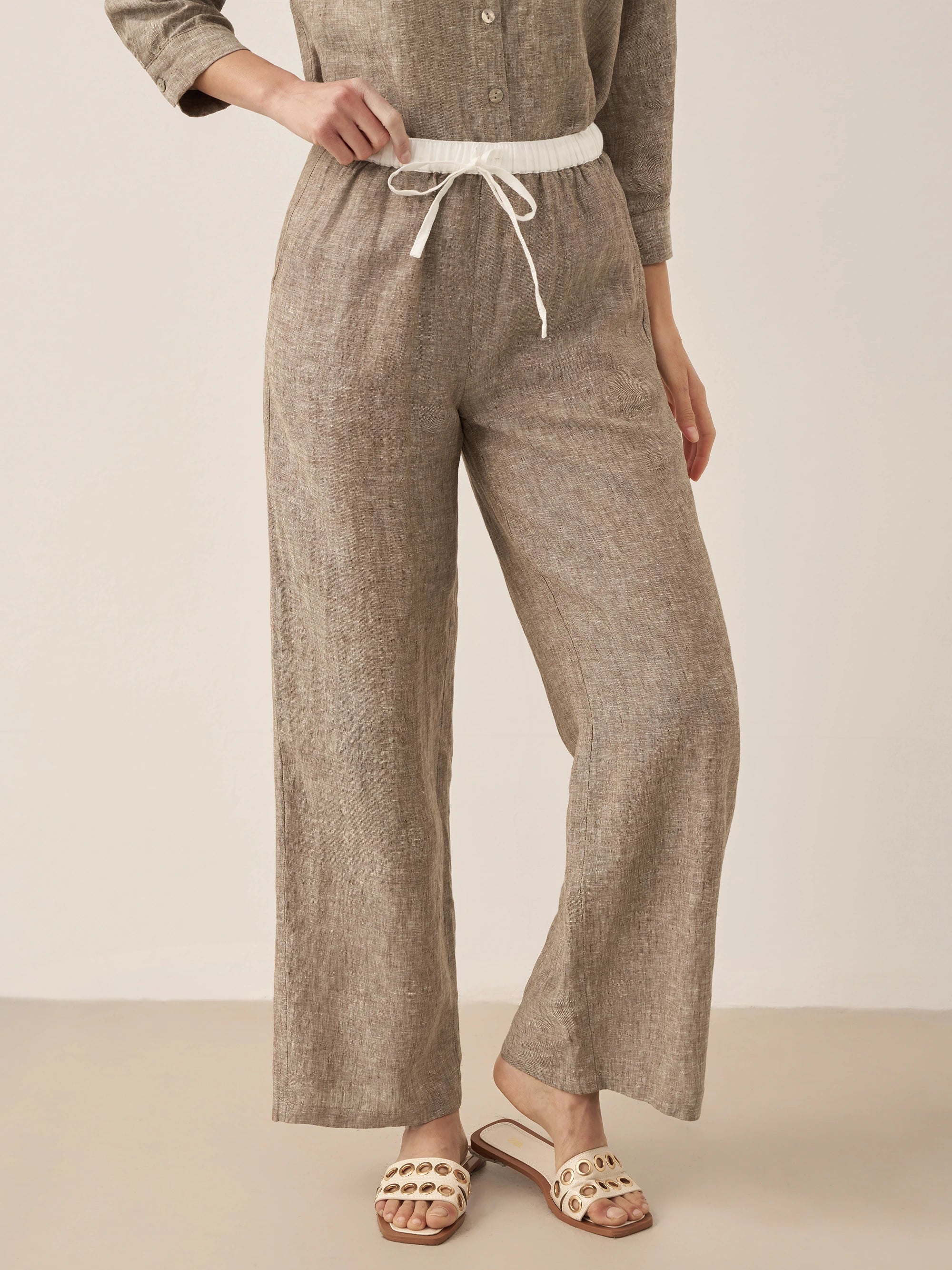 100% Linen Elastic Waist Straight-Leg Trousers JOURDAN