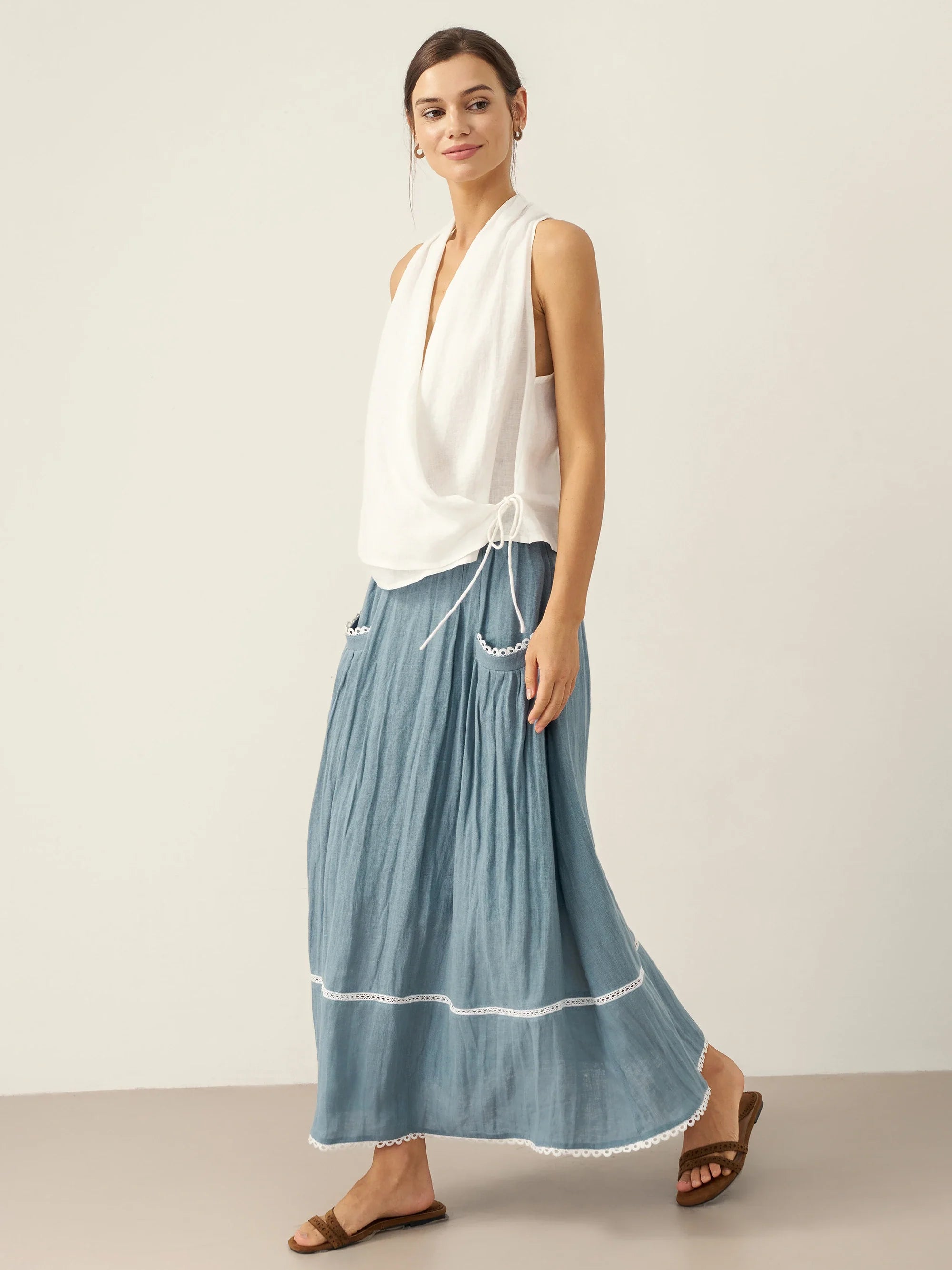 100% Linen Halter Neck Tie-Front Crop Top Faye