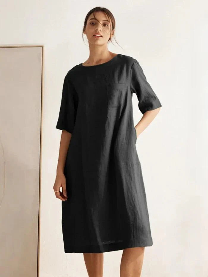 100% Linen Mid-Sleeve Maxi Dress GEORGINA