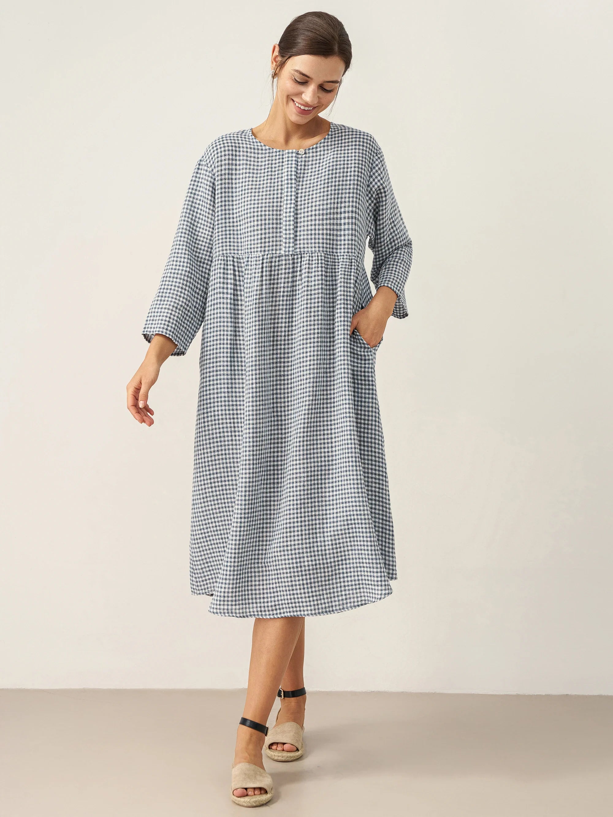 Effortless elegance meets relaxed comfort in this linen midi dress with thoughtful details.