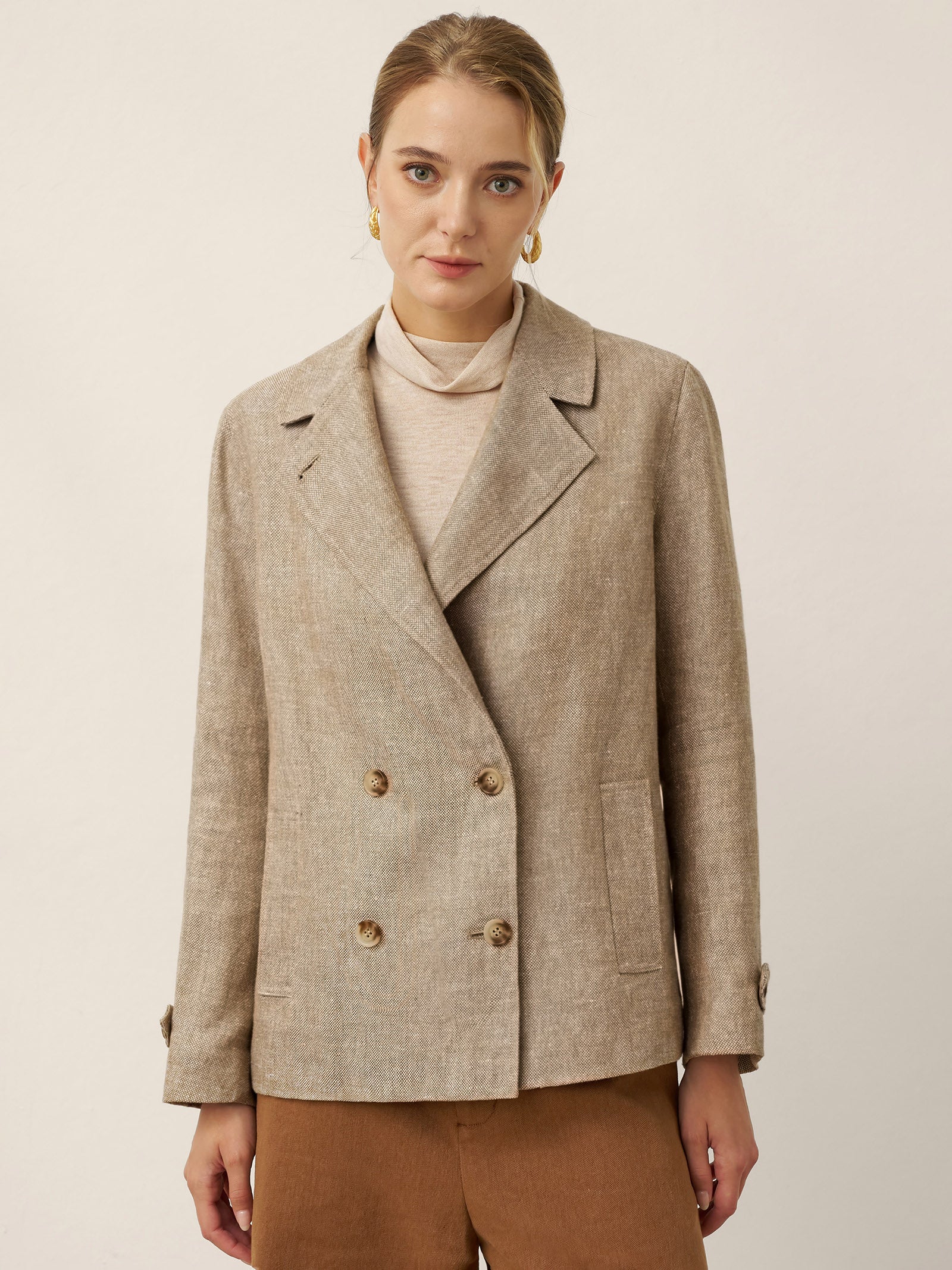 100% Linen Convertible Stand Collar Double Breasted Blazer Jacket NAOMI