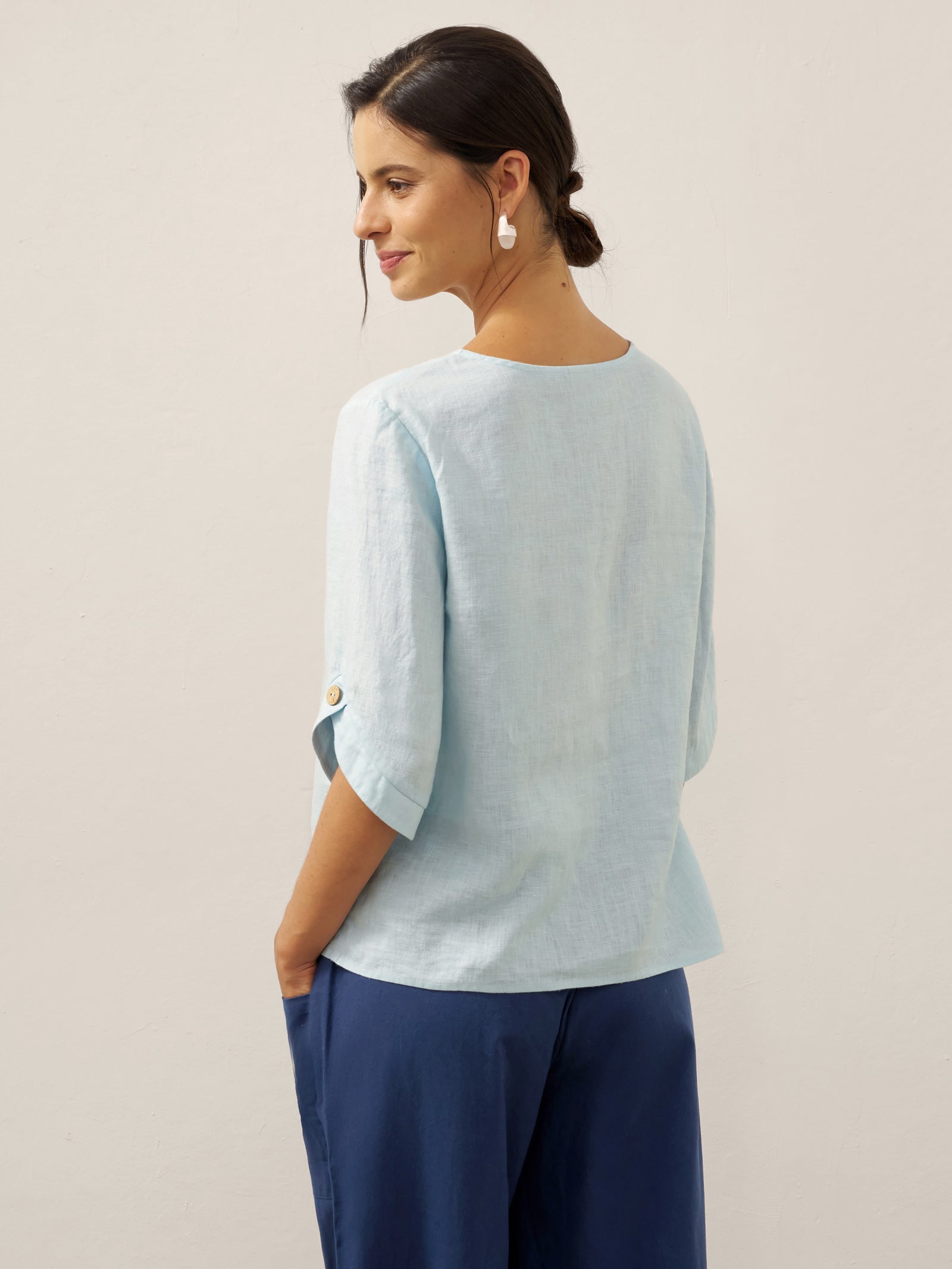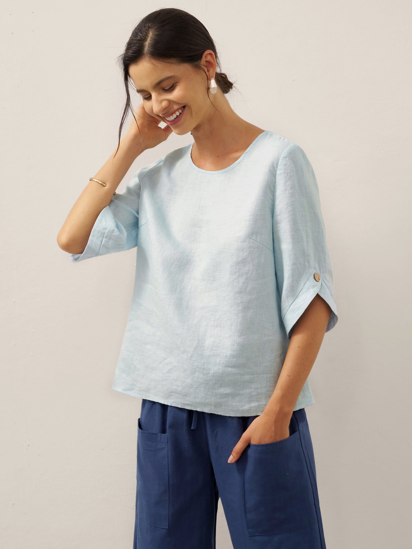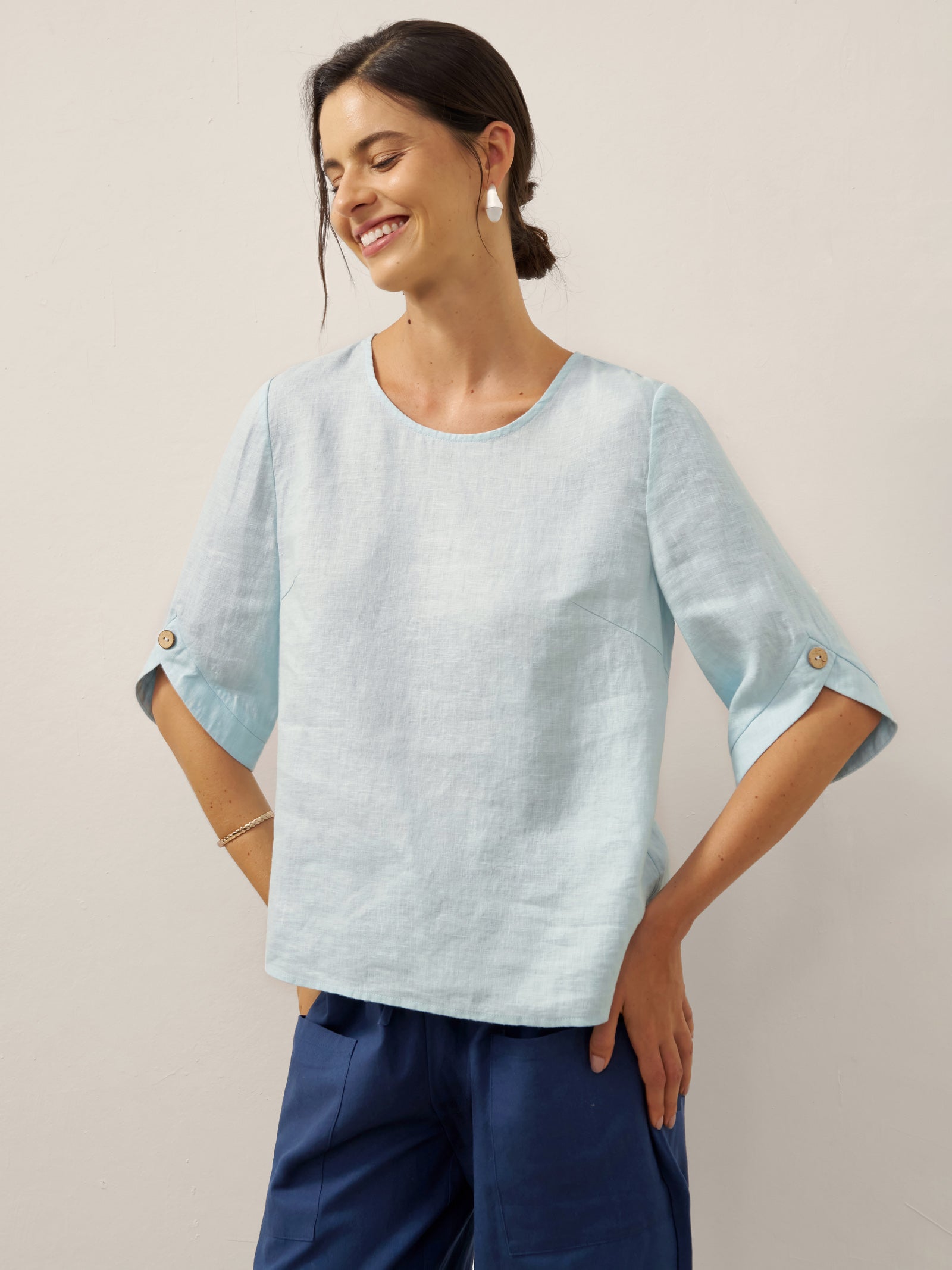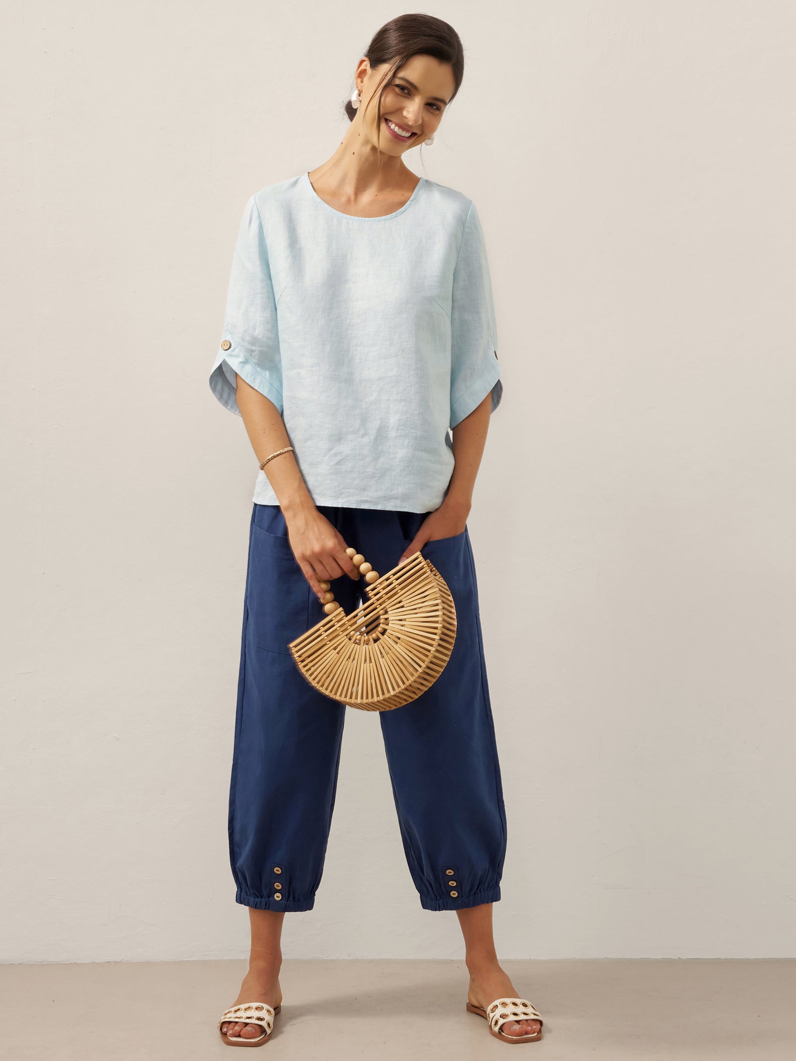100% Linen Elbow Sleeve Pullover Top NOLA