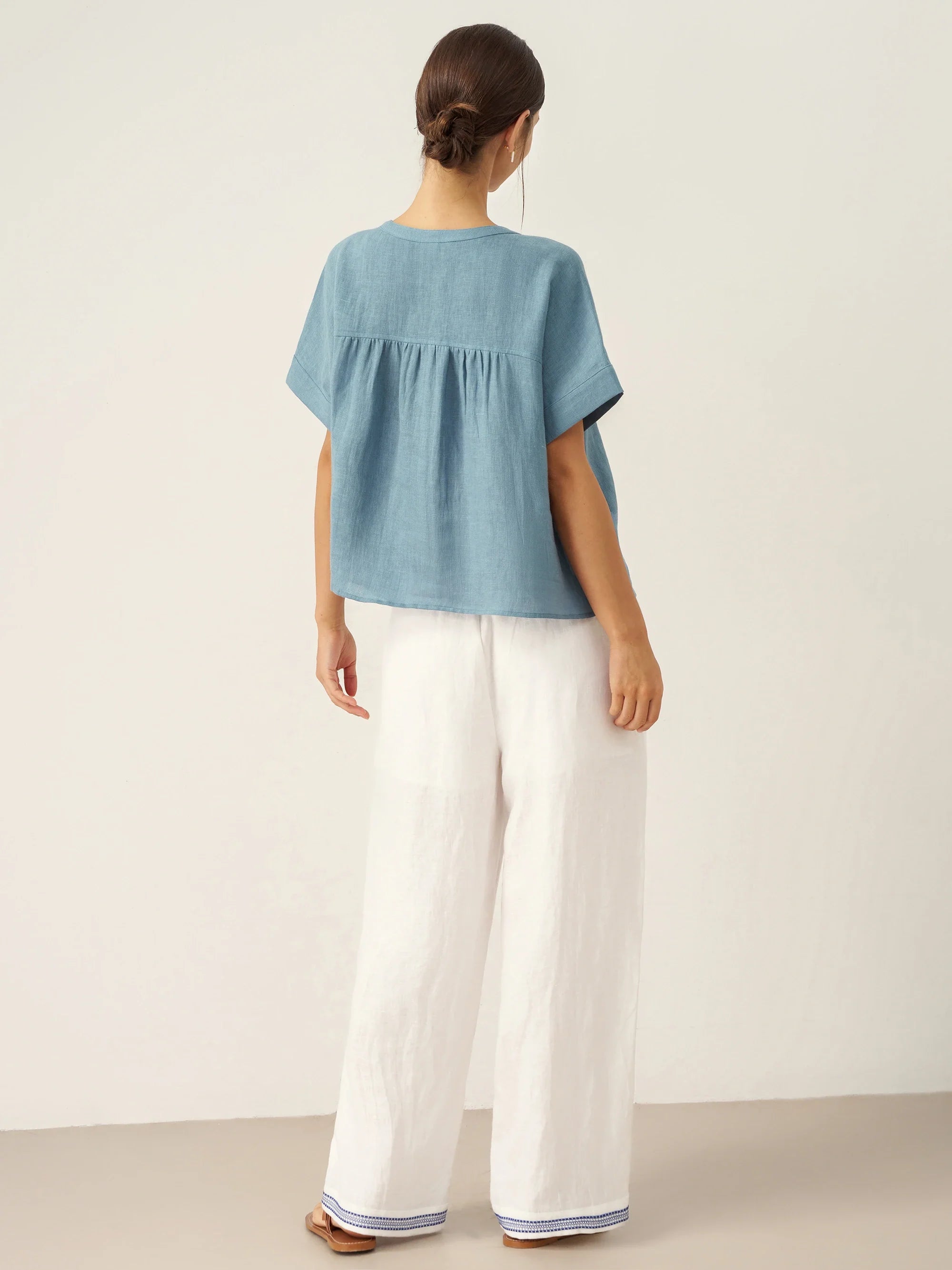 Made from pure flax, our linen lacks elasticity, resulting in natural wrinkles when worn or slept in. Embrace the 'lived-in luxe' aesthetic — a deliberate, carefree rumpled look that exudes quality. Our linen is garment-washed before it gets to you though, so you should experience minimal shrinkage.