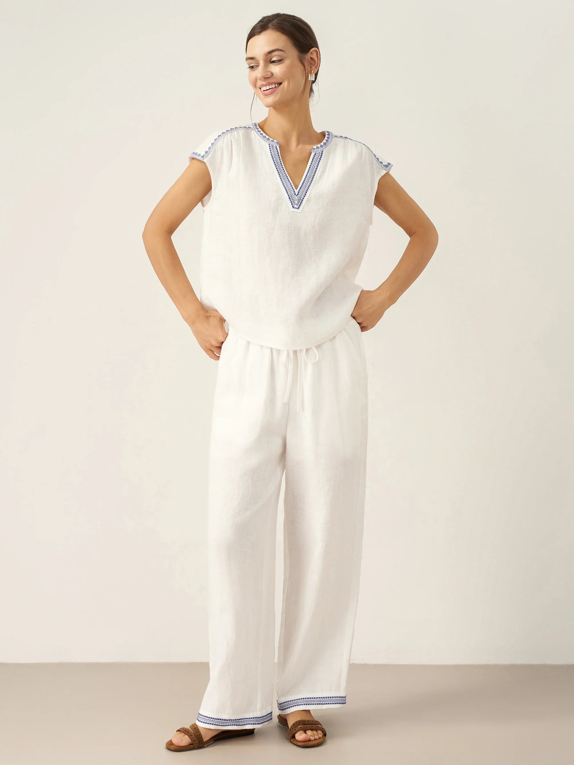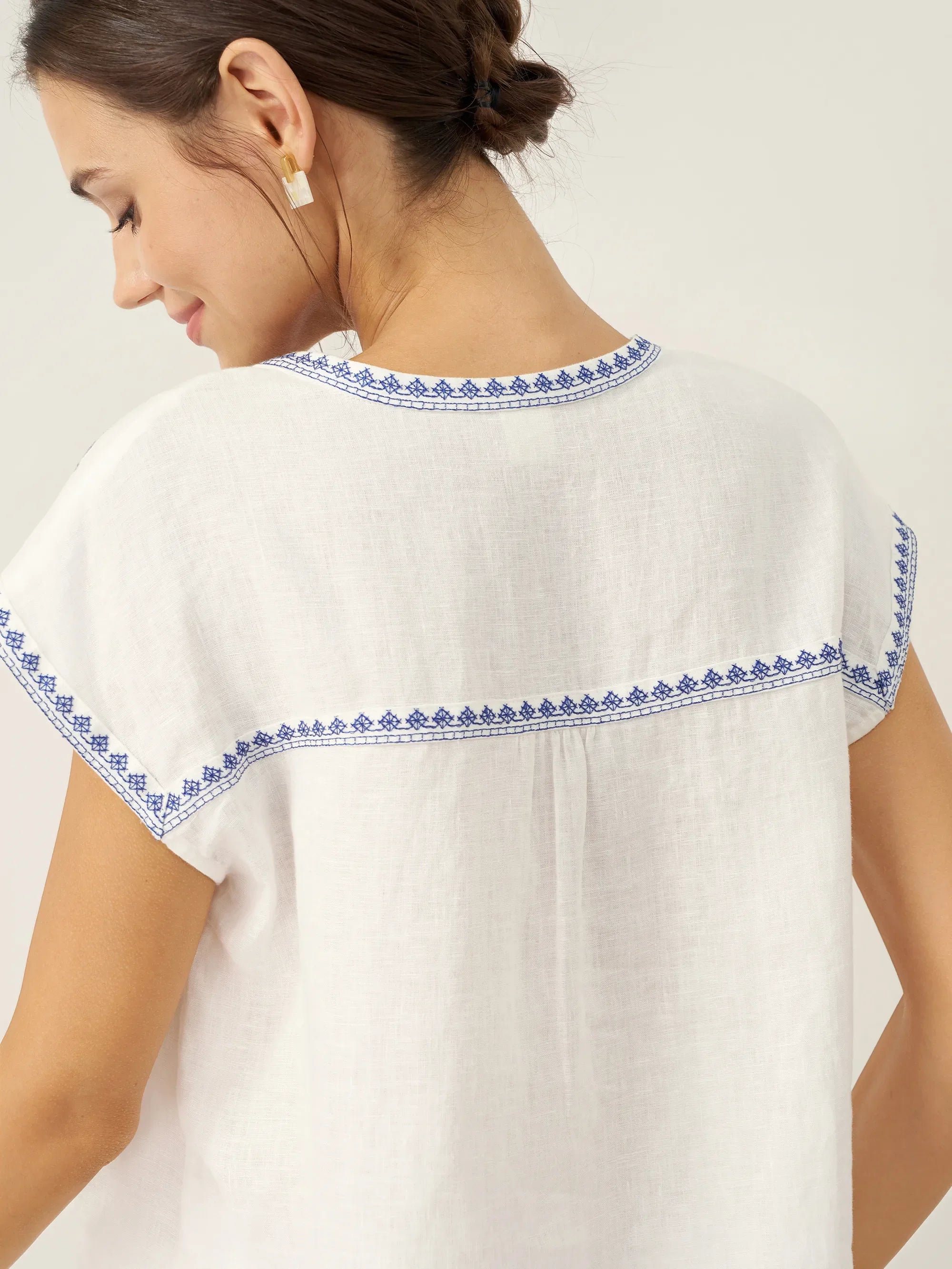 Modern geometry meets breezy elegance in this linen crop top with thoughtful details.