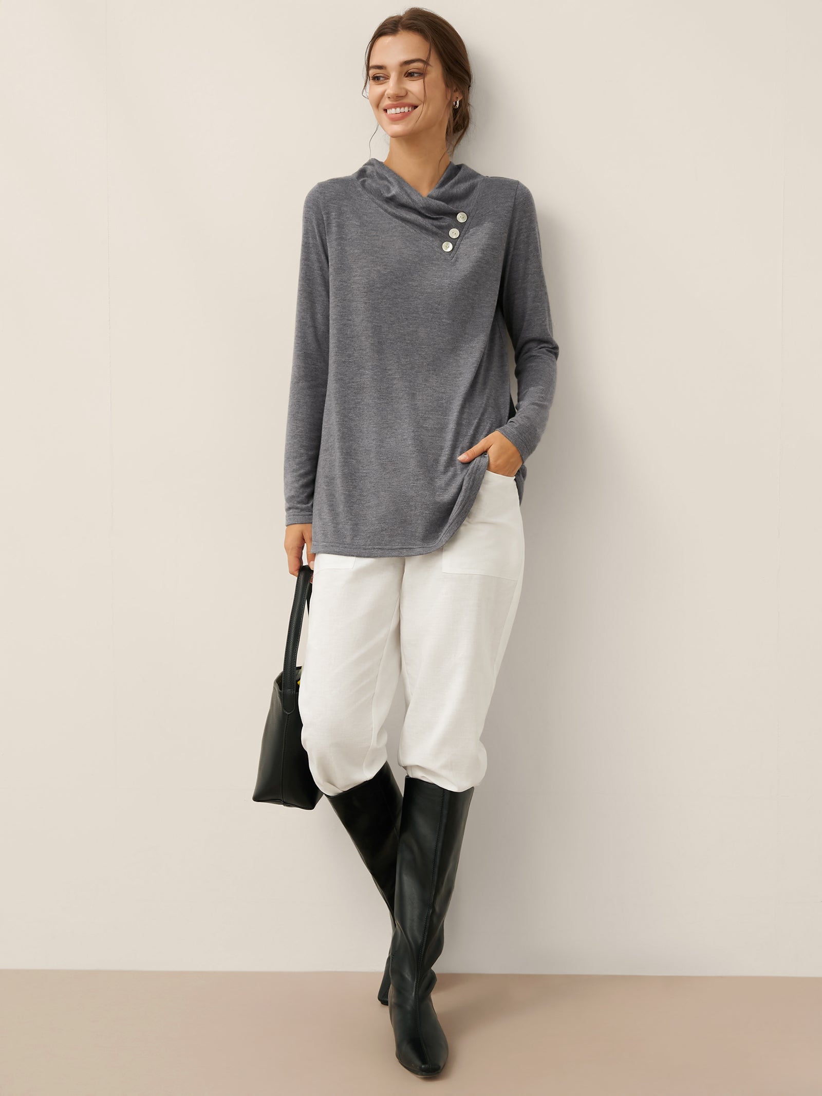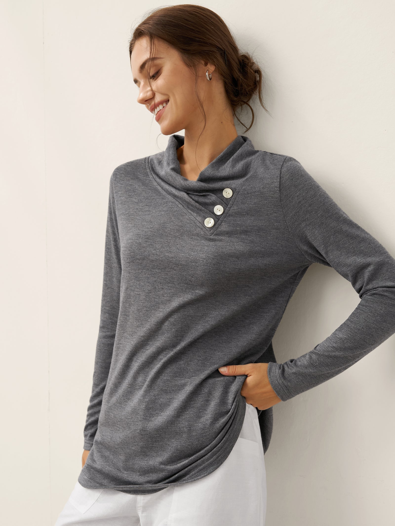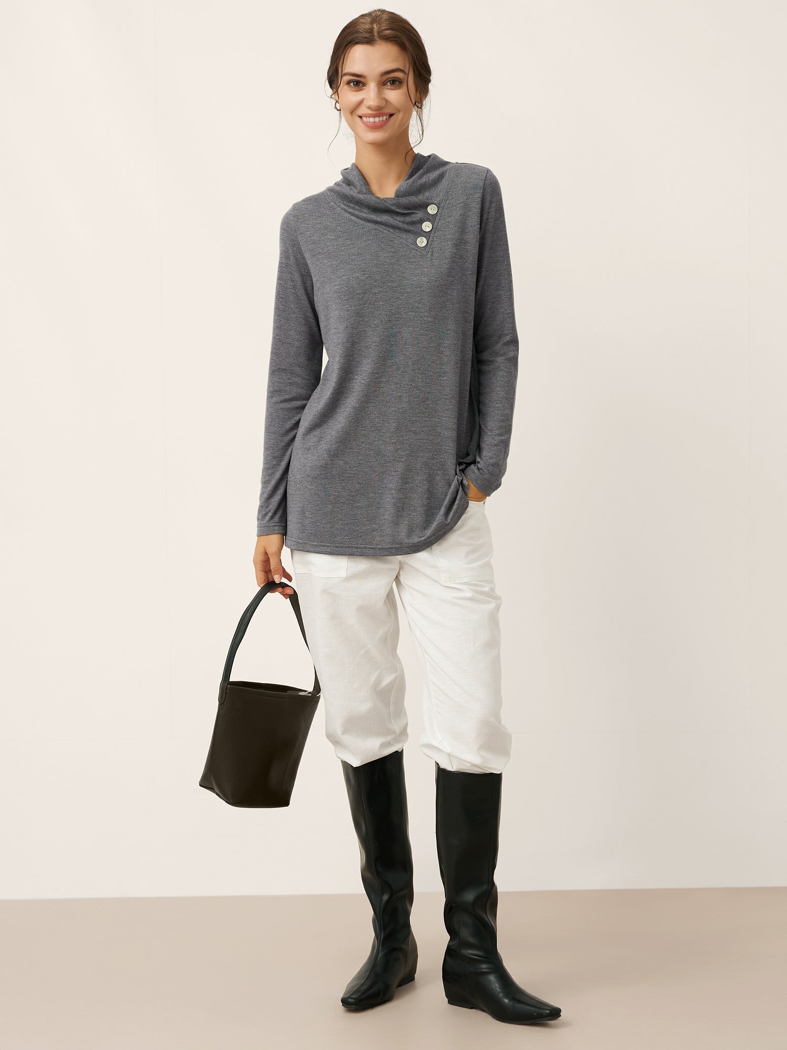 Asymmetric Cowl Neck Stretch Top TATIANA