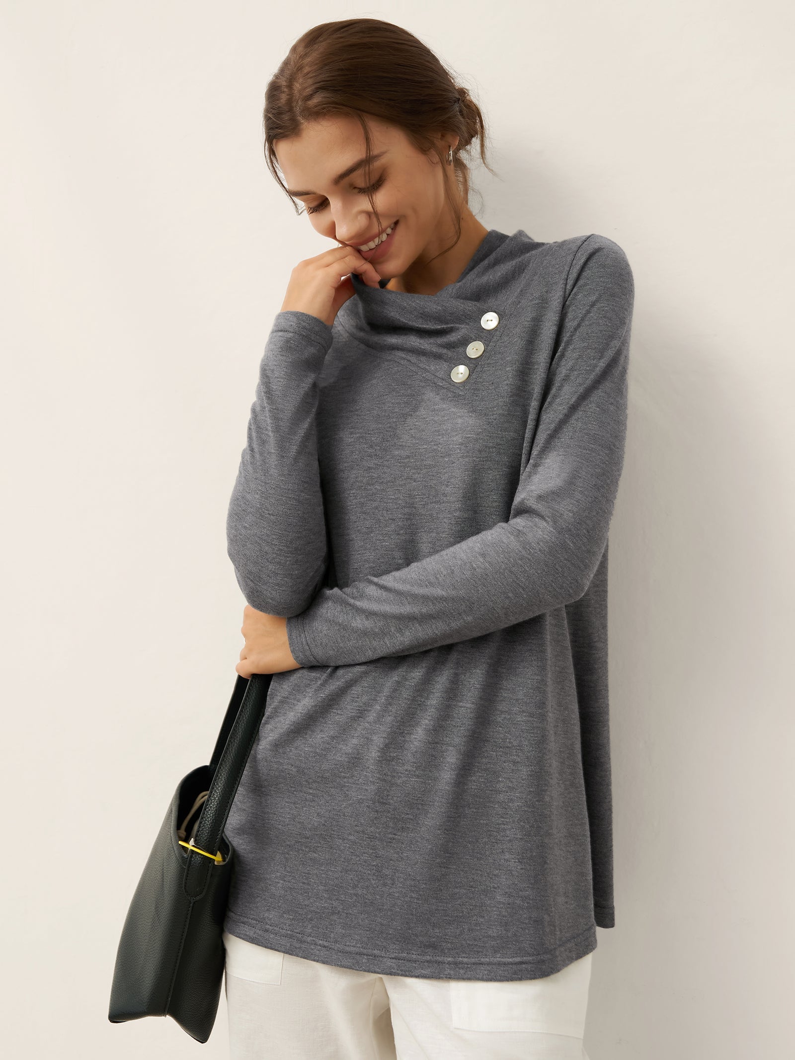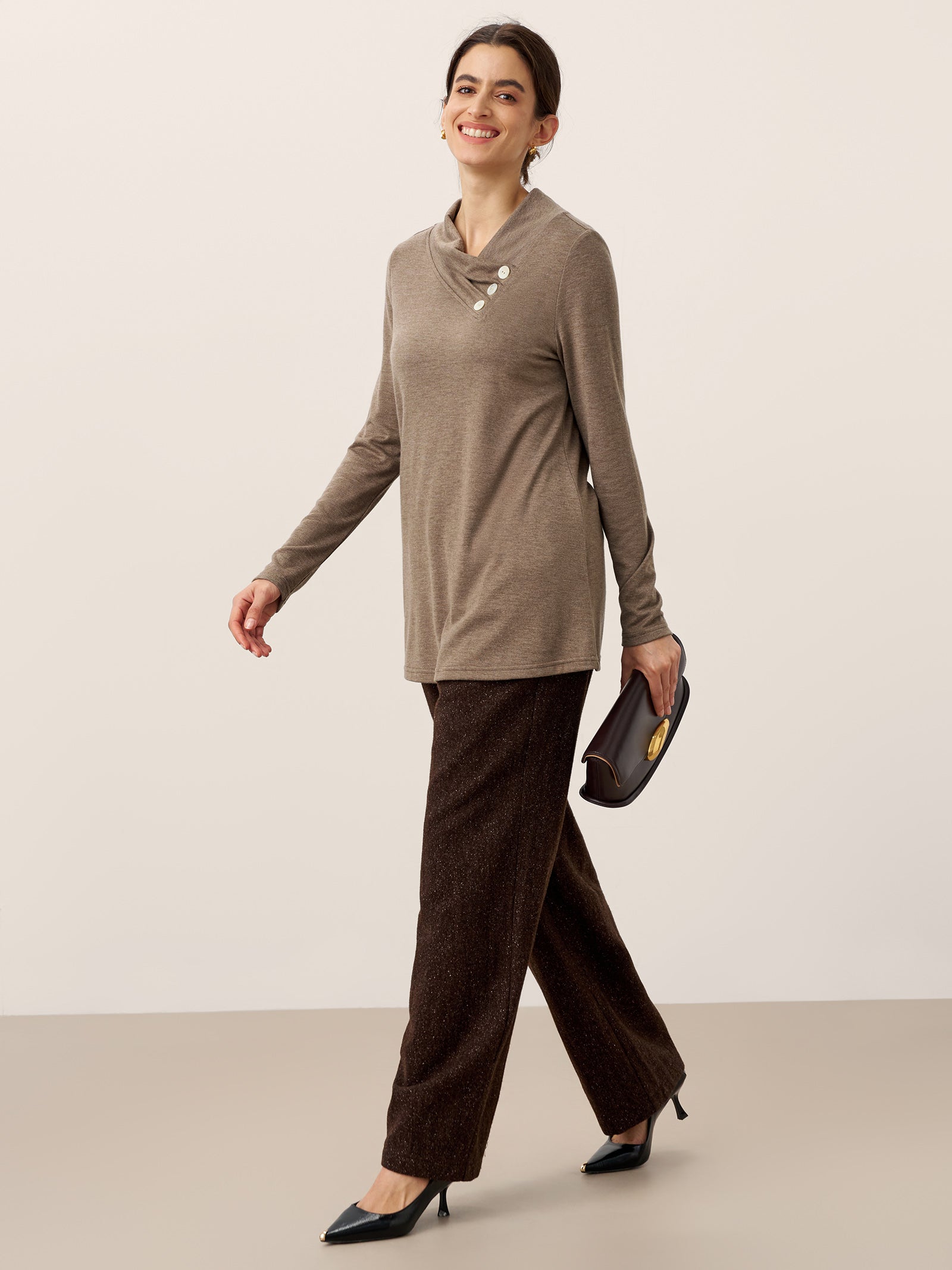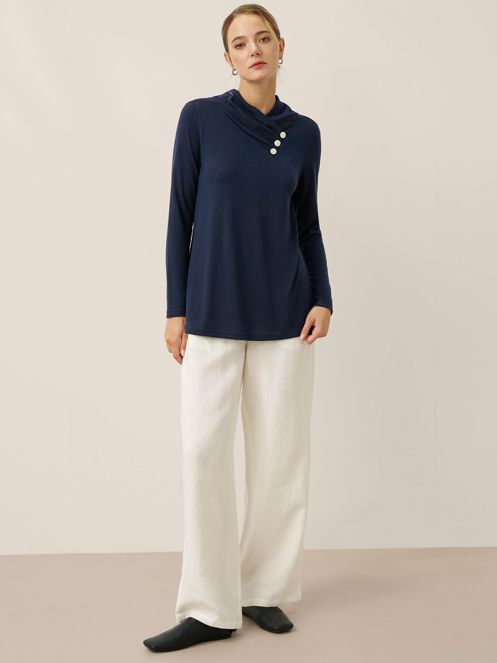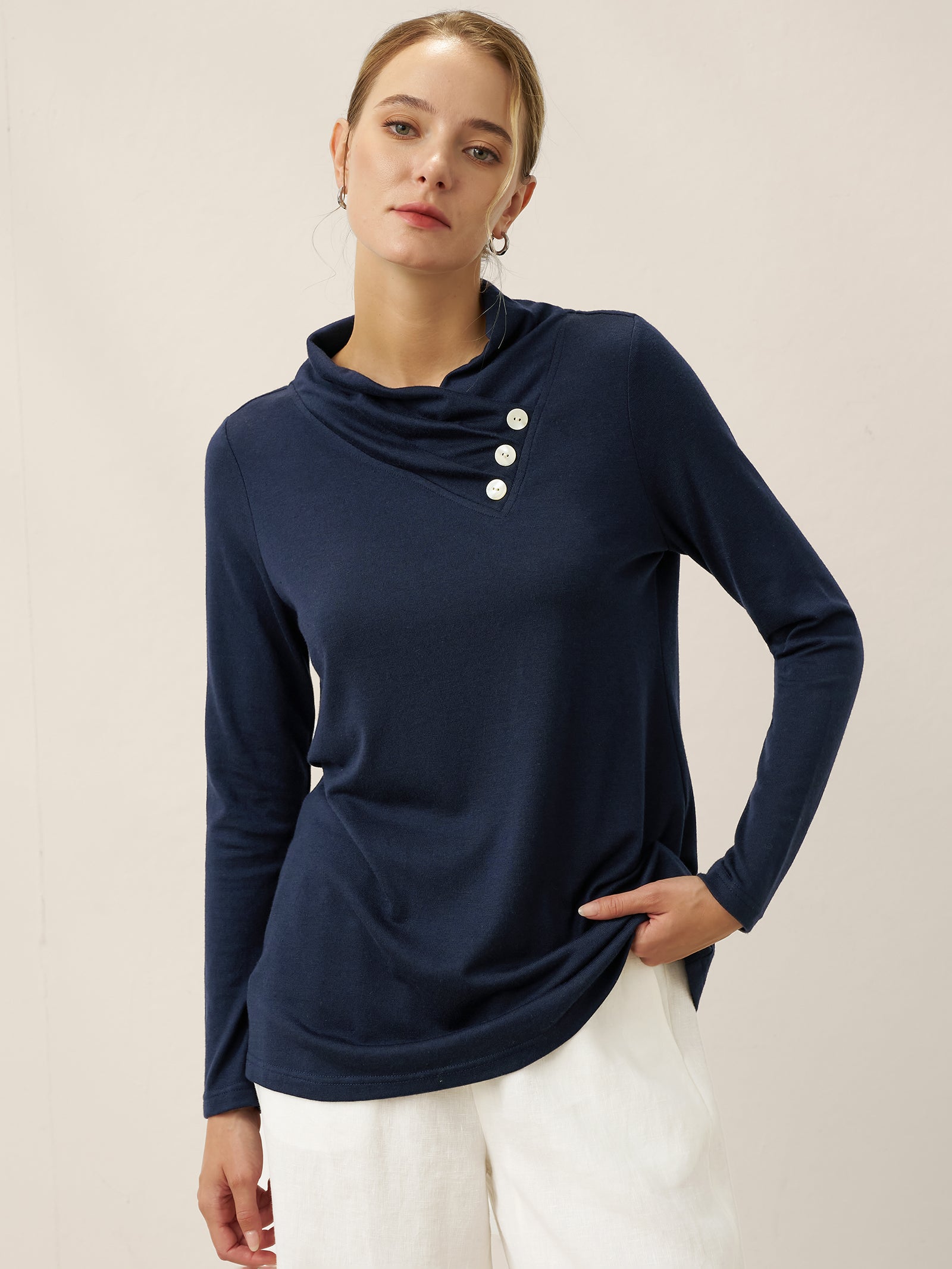 Asymmetric Cowl Neck Stretch Top TATIANA