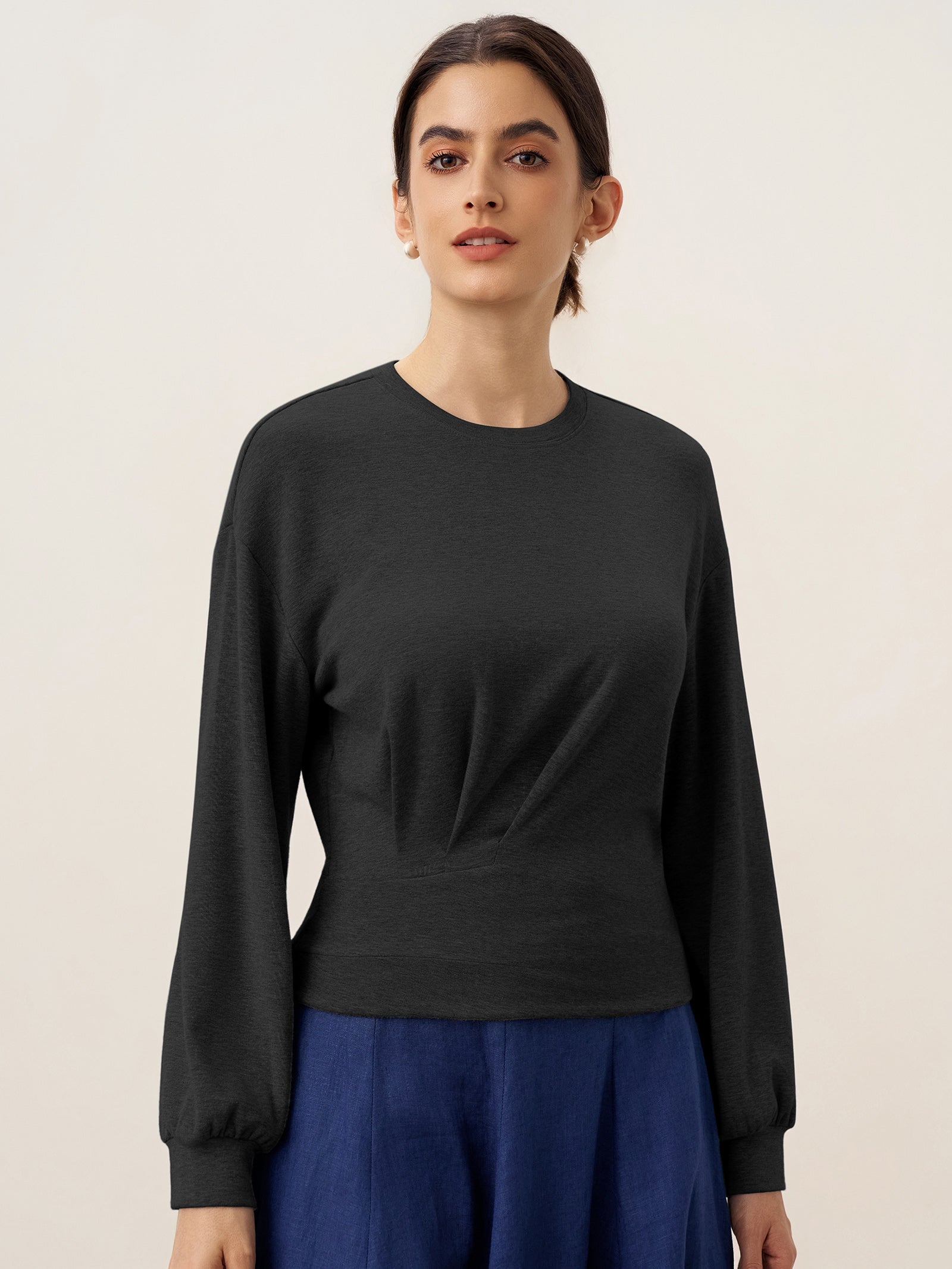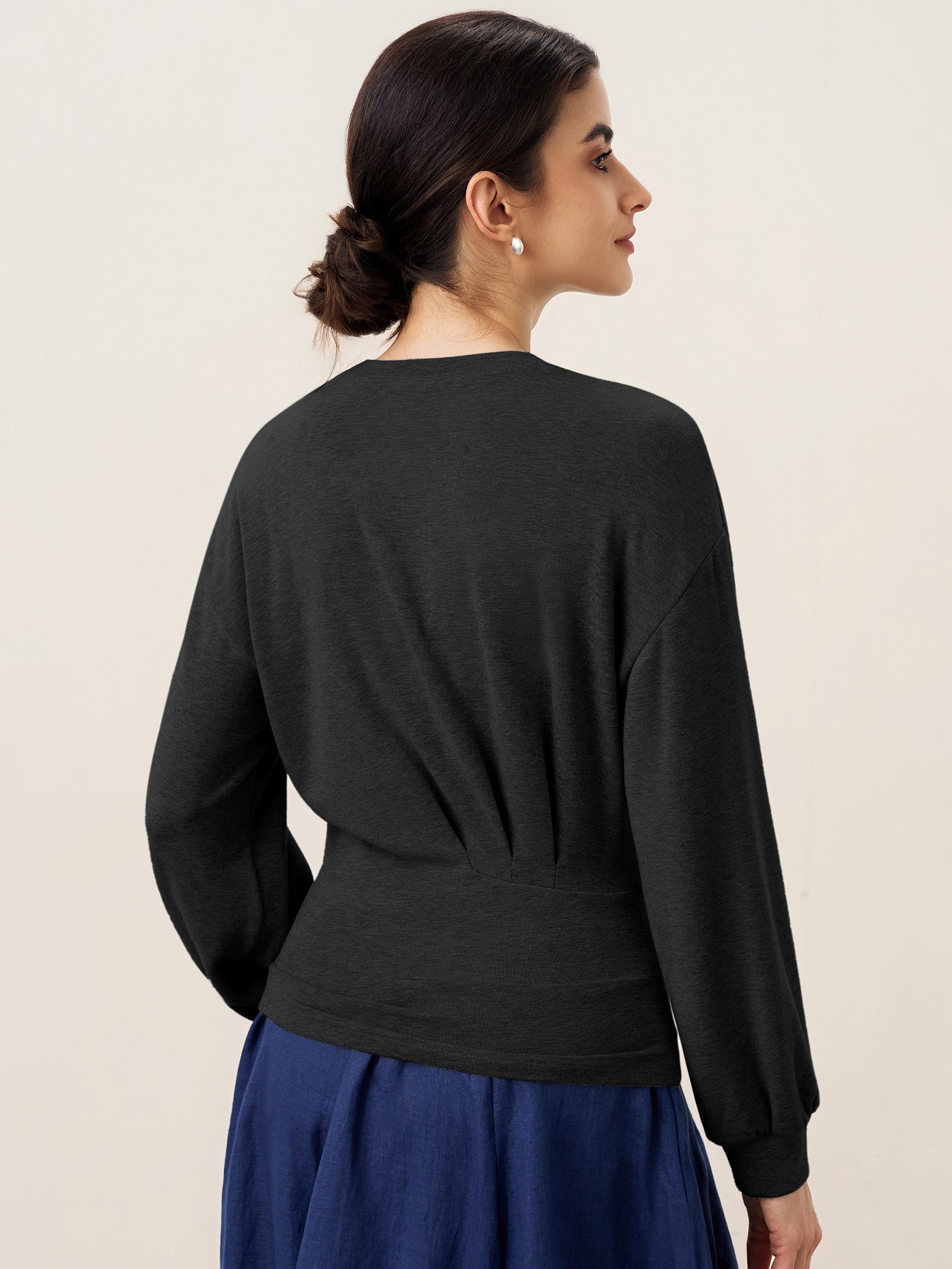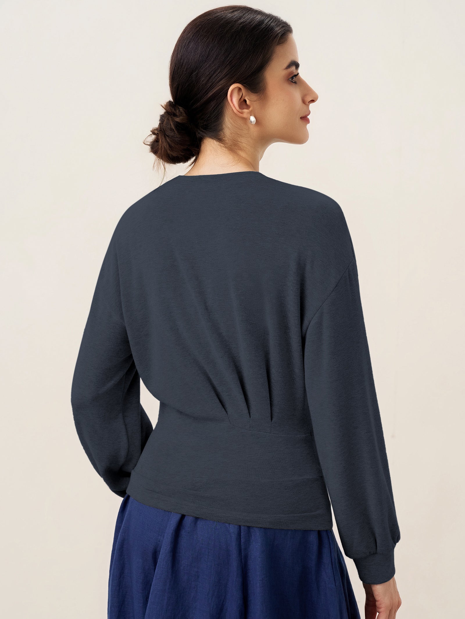 Asymmetric Ruched Stretch Knit Top CALLIOPE