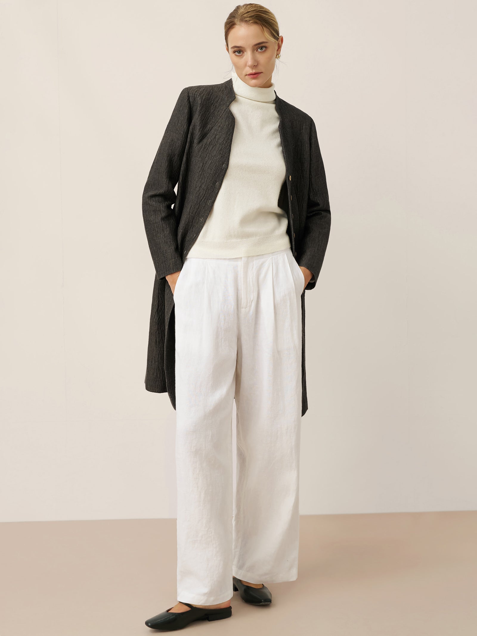 Linen Mandarin Collar Button-Up Long Shirt Jacket JORDAN