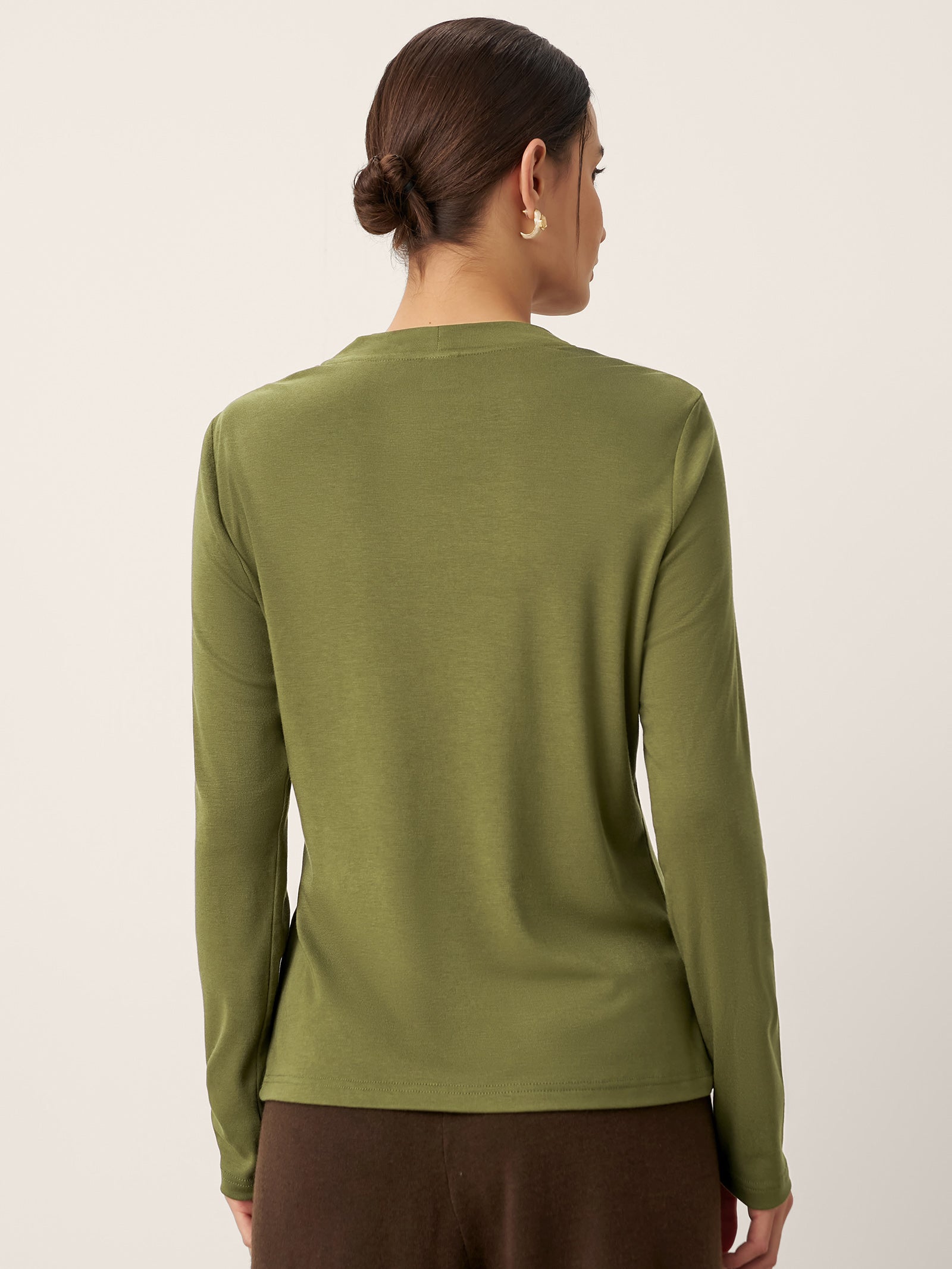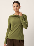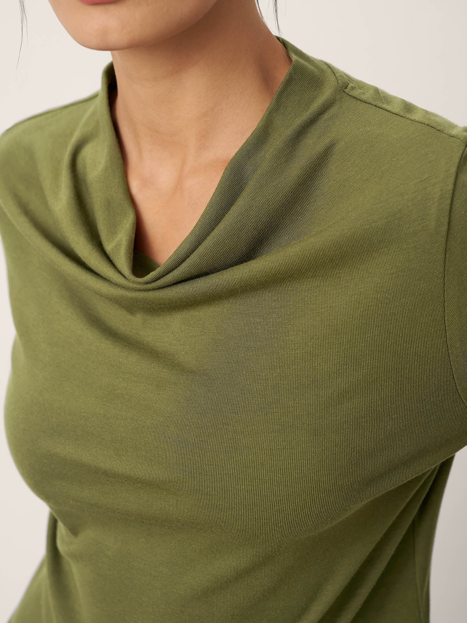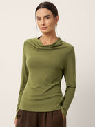 Wool Cowl Drape Stretch Long Sleeve Top INEKE