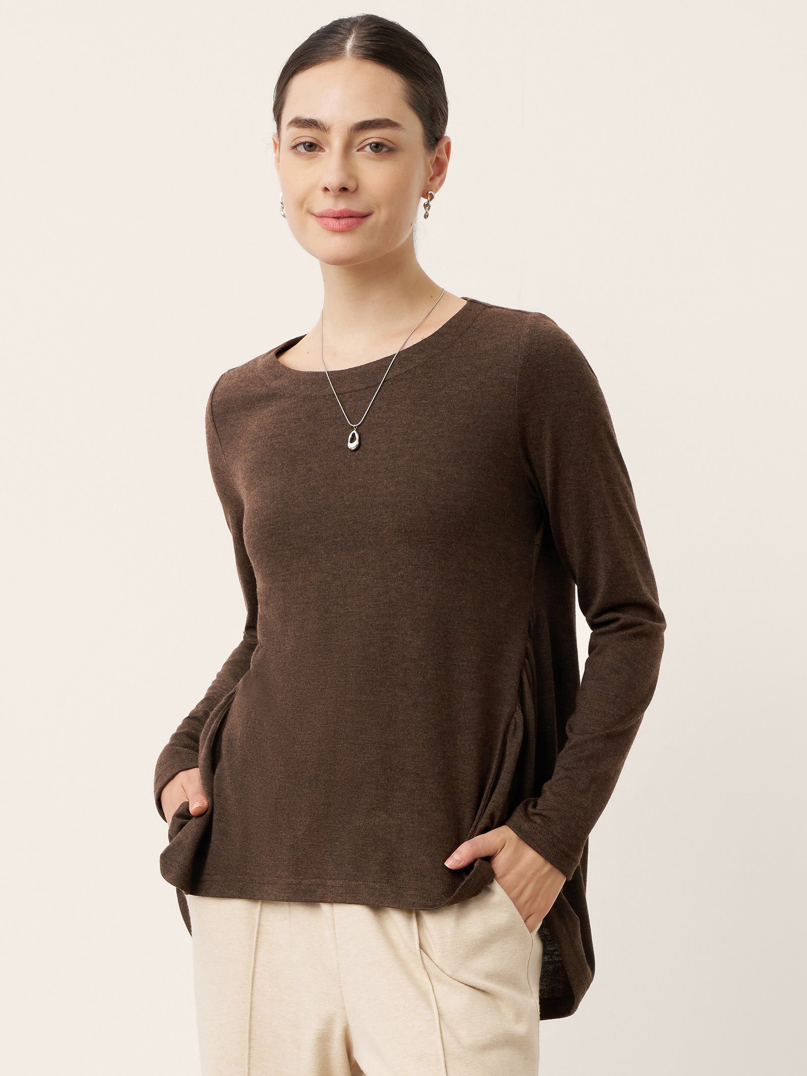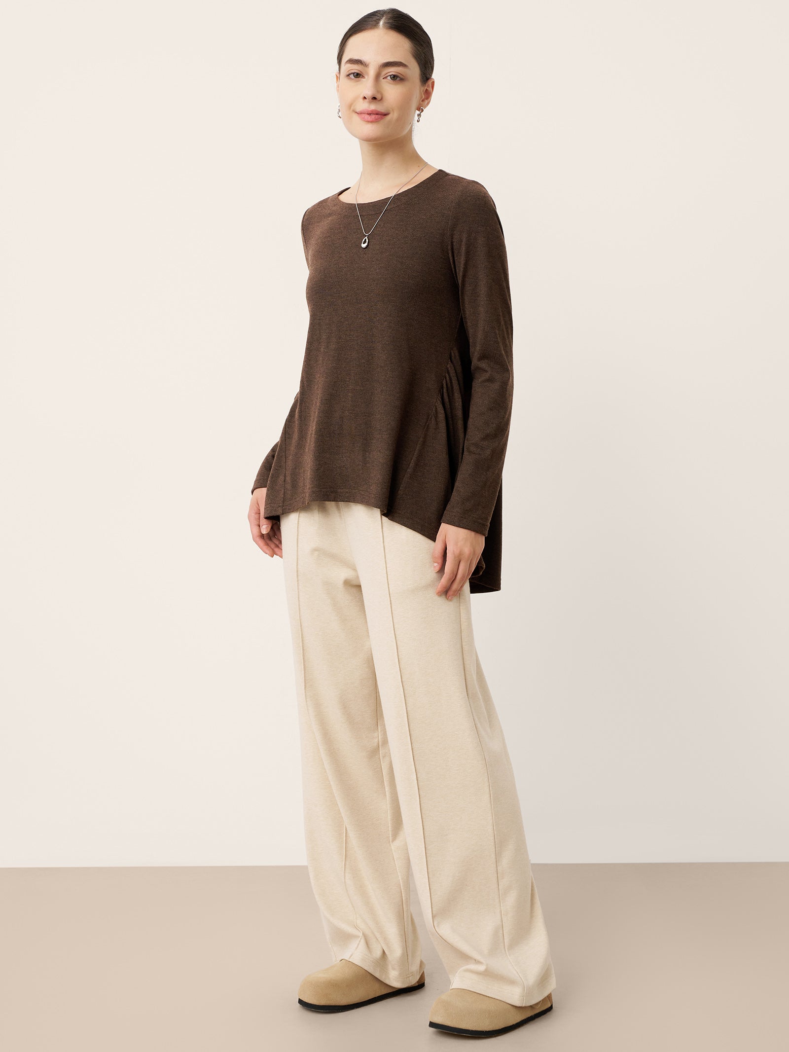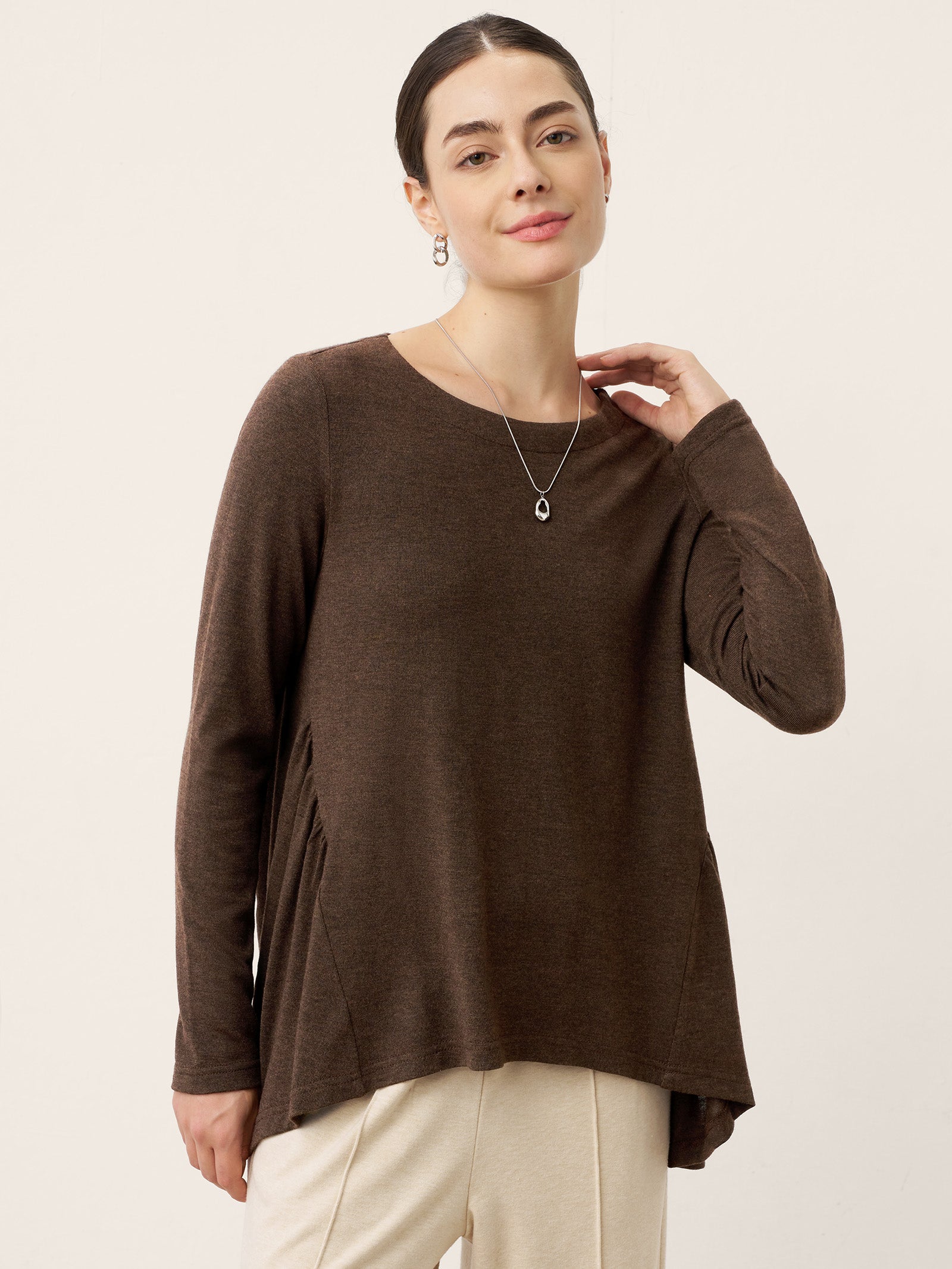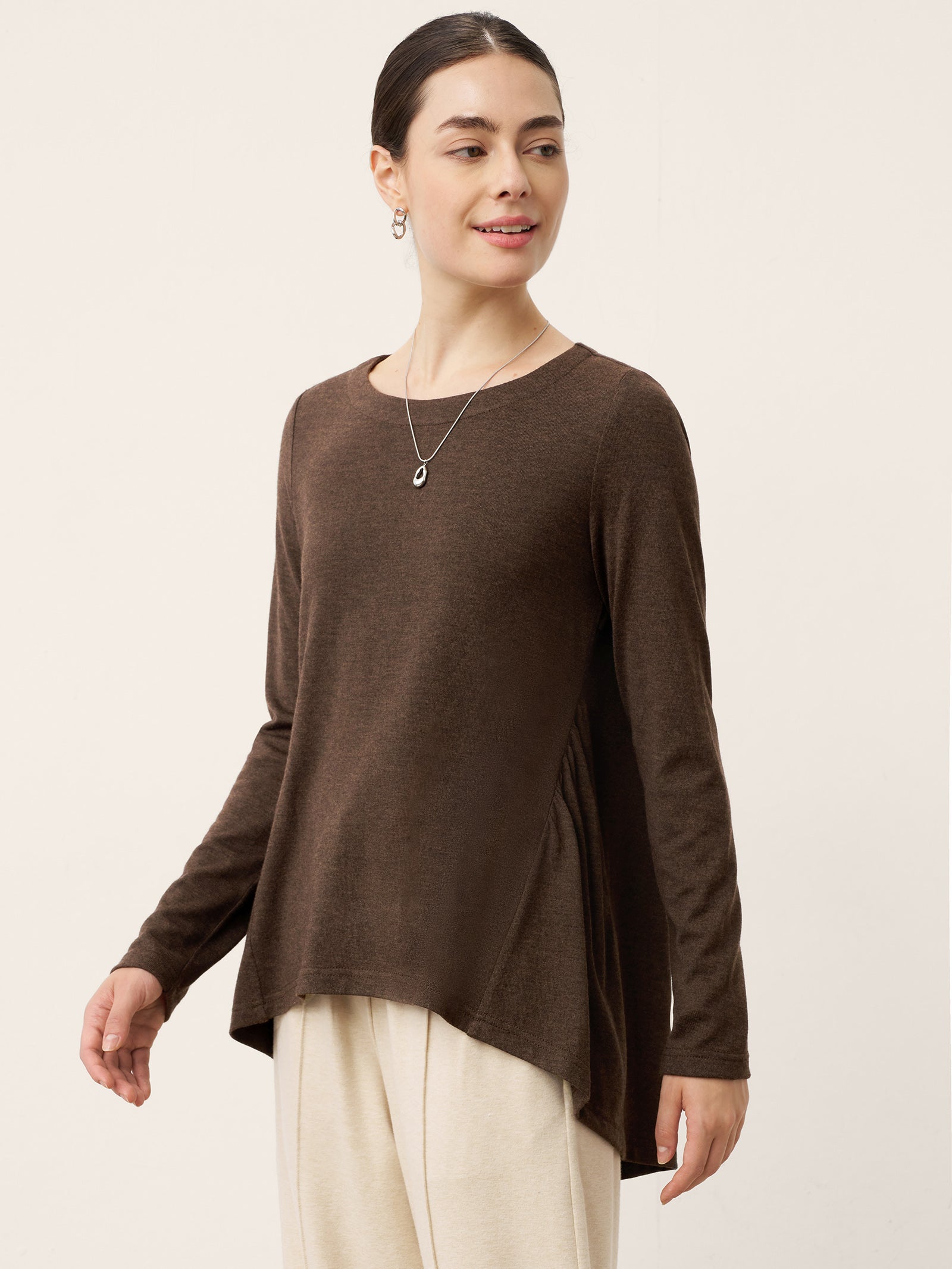 Wool Panelled Ruched Asymmetric Hem Top KALISTA