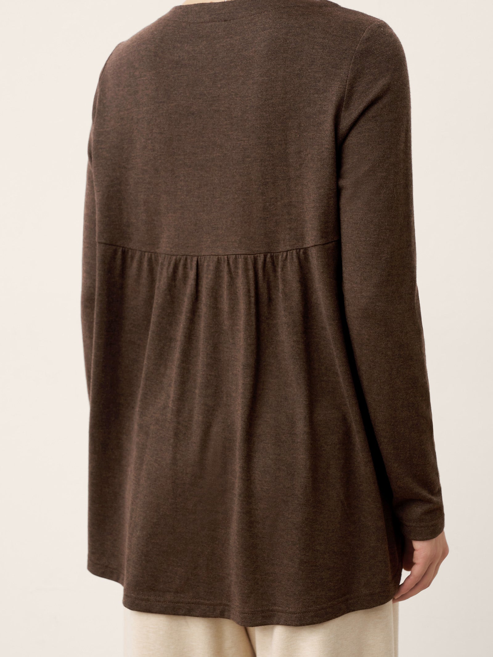 Relaxed A-line cut, boat neckline, straight long sleeves