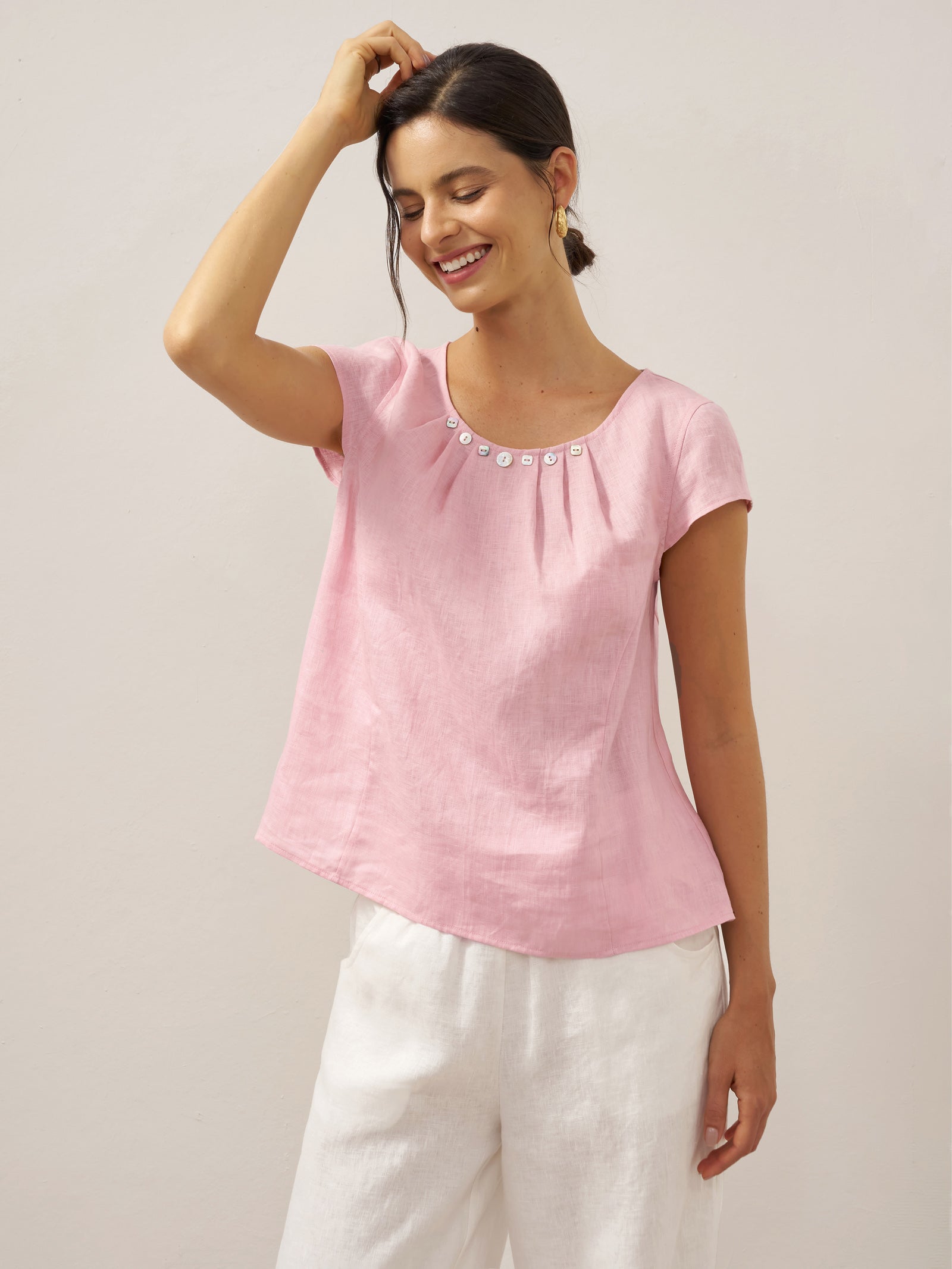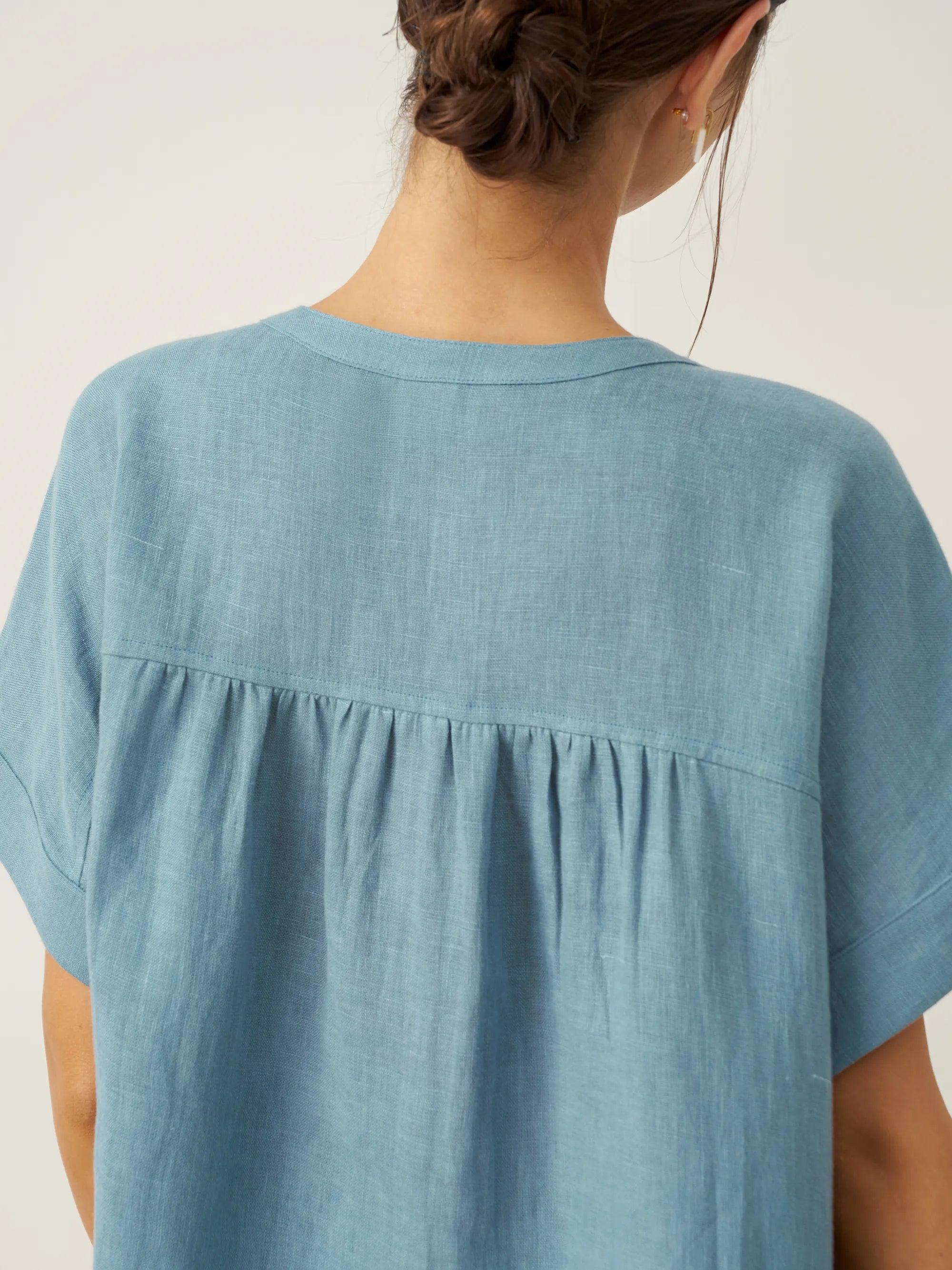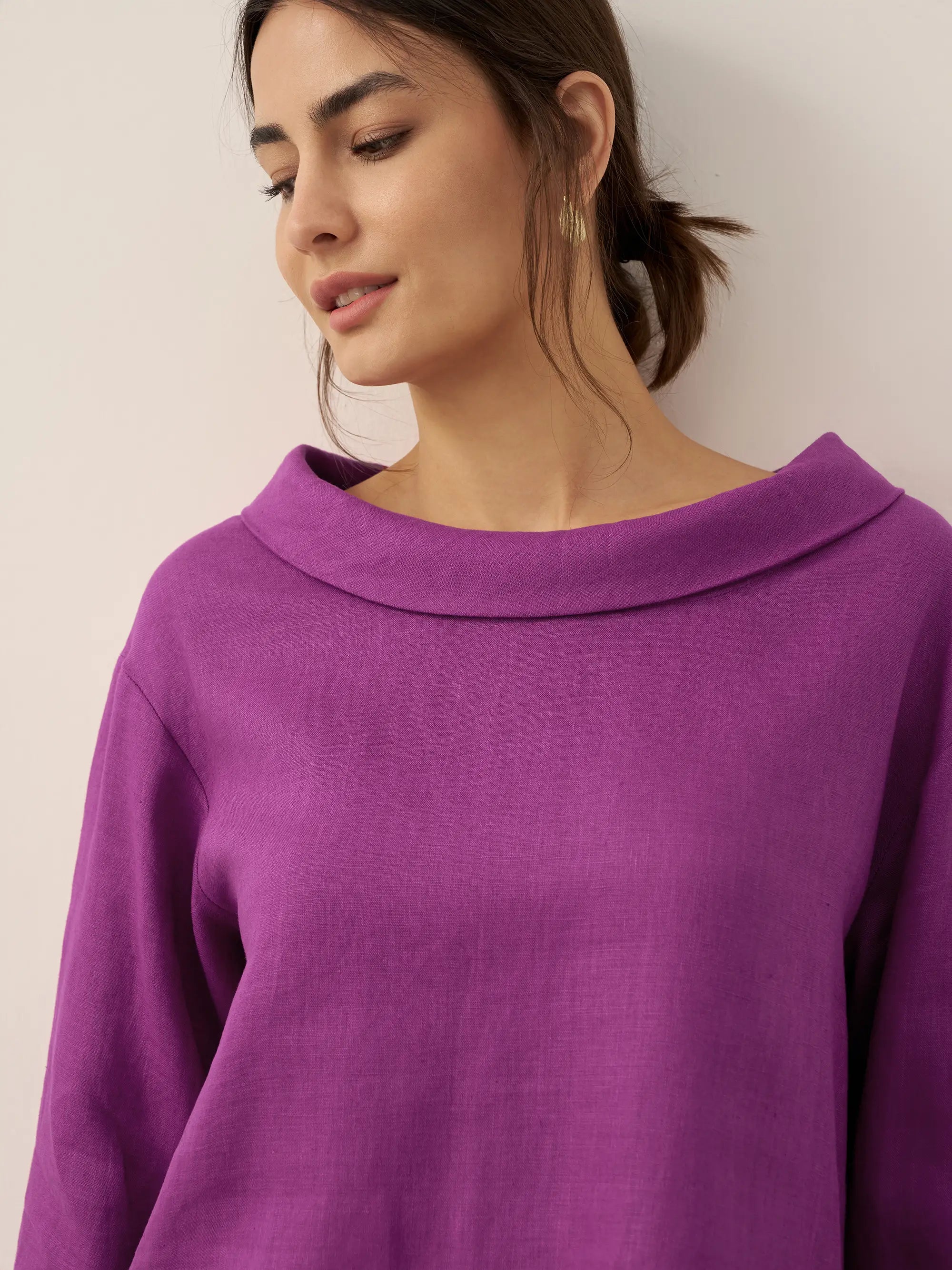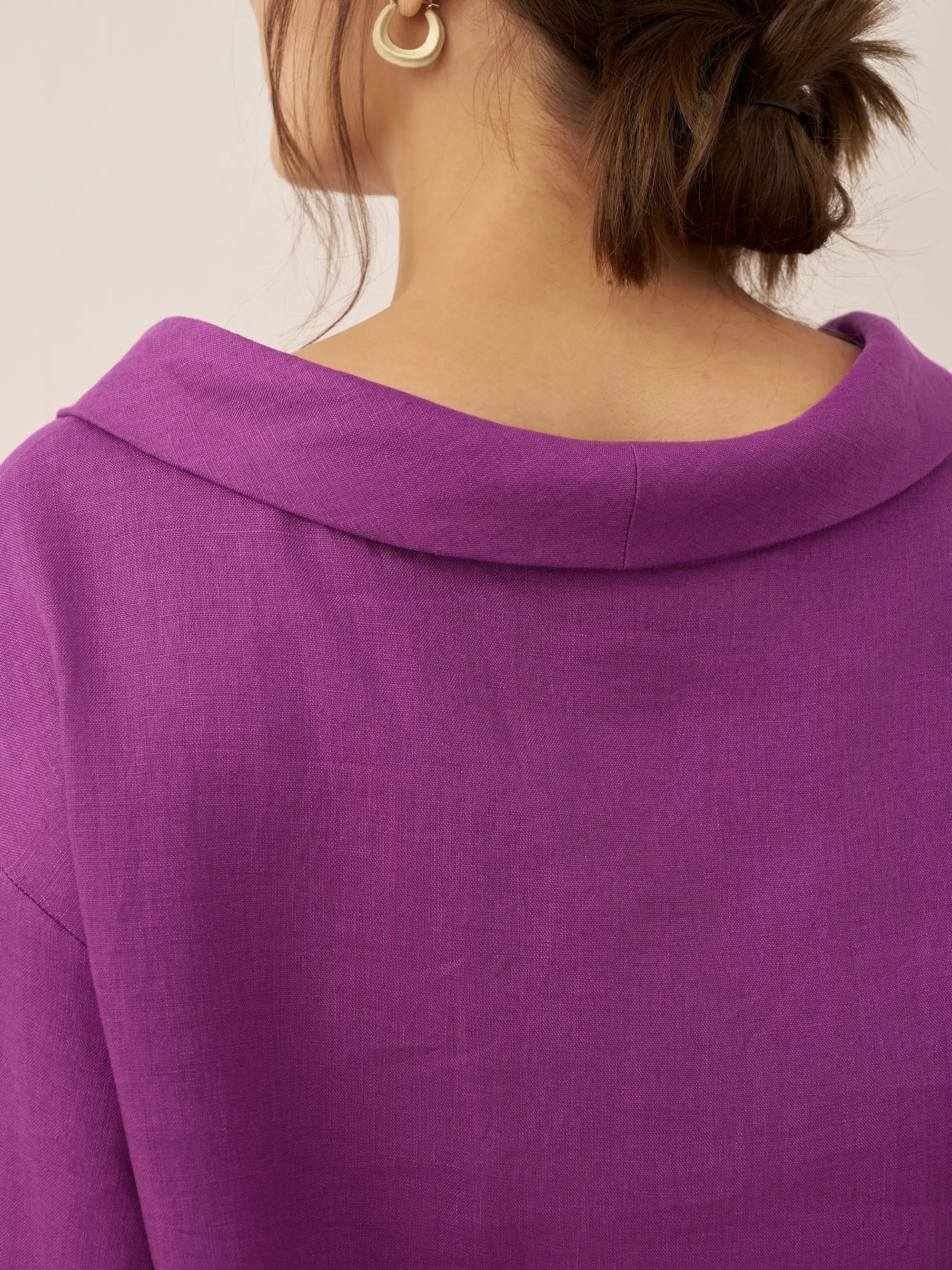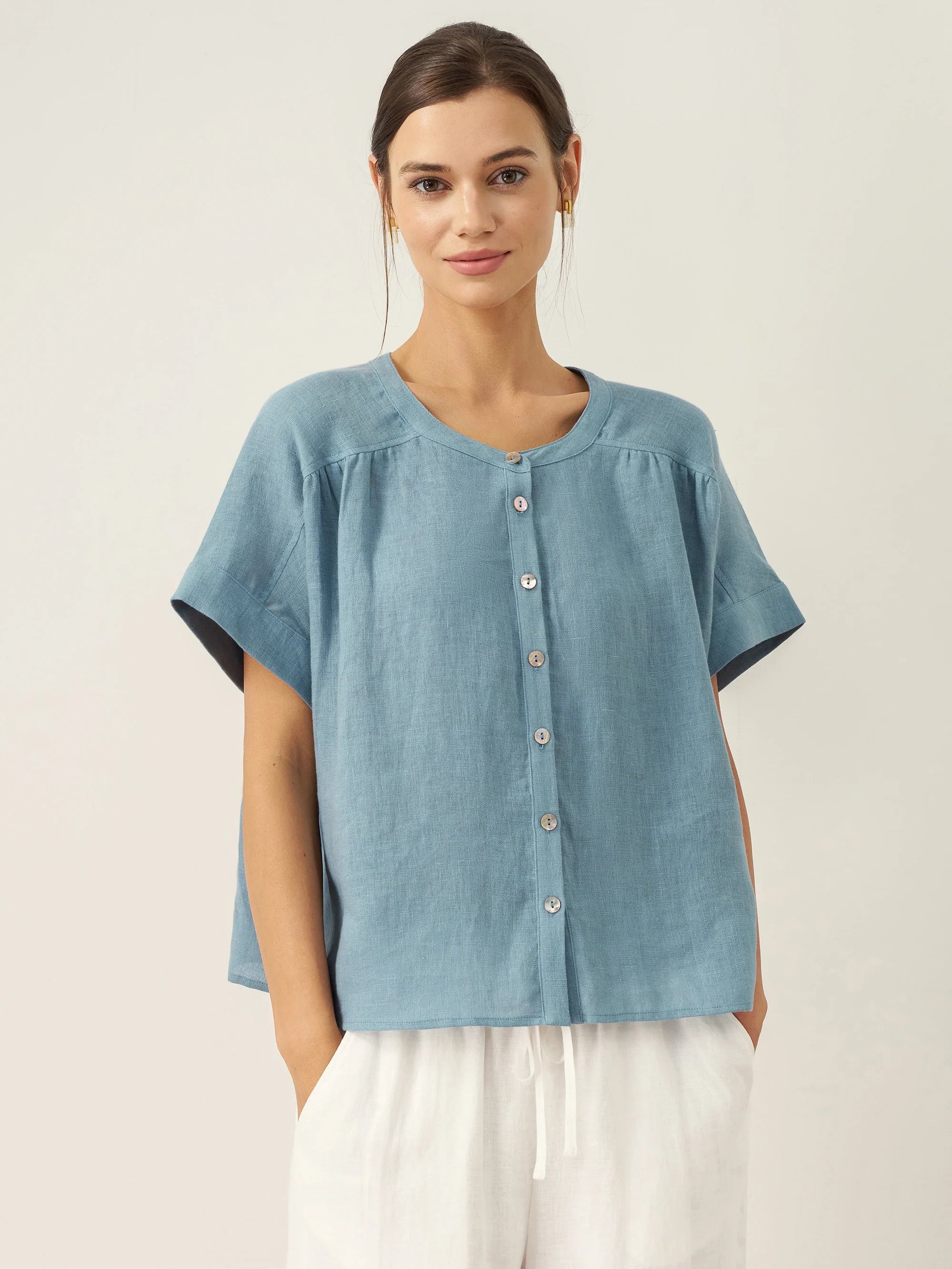 Linen Round Soft-Fold Collar Top ANAIS