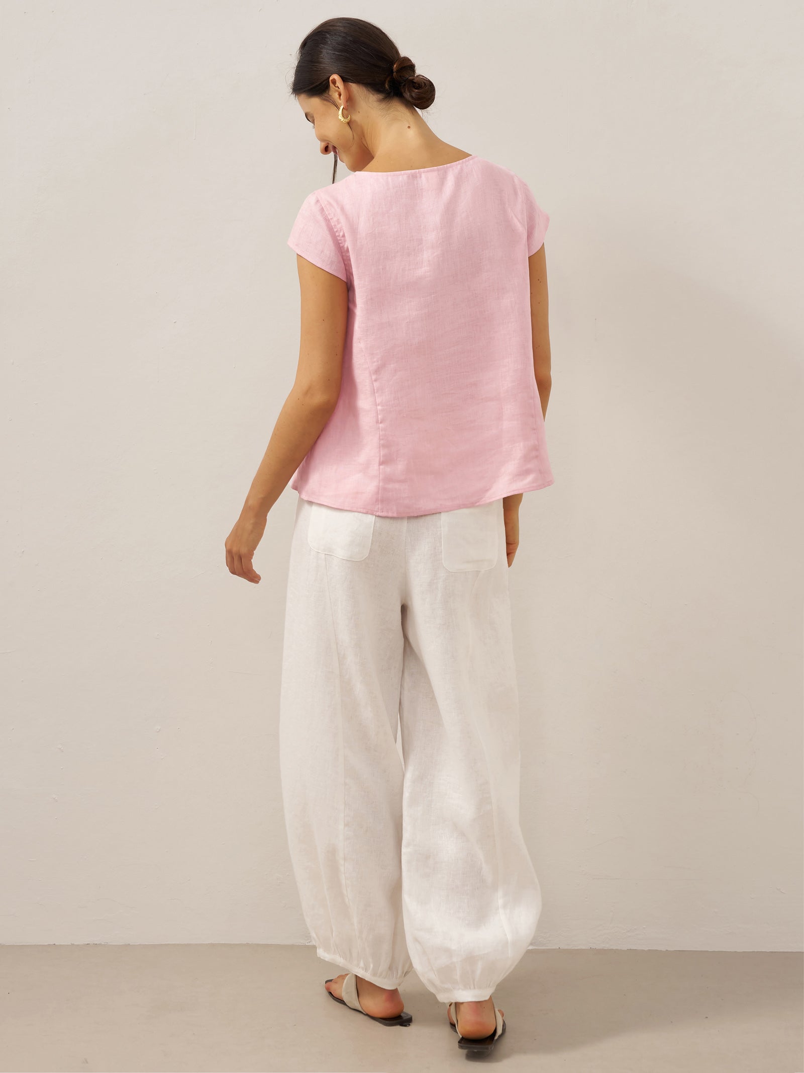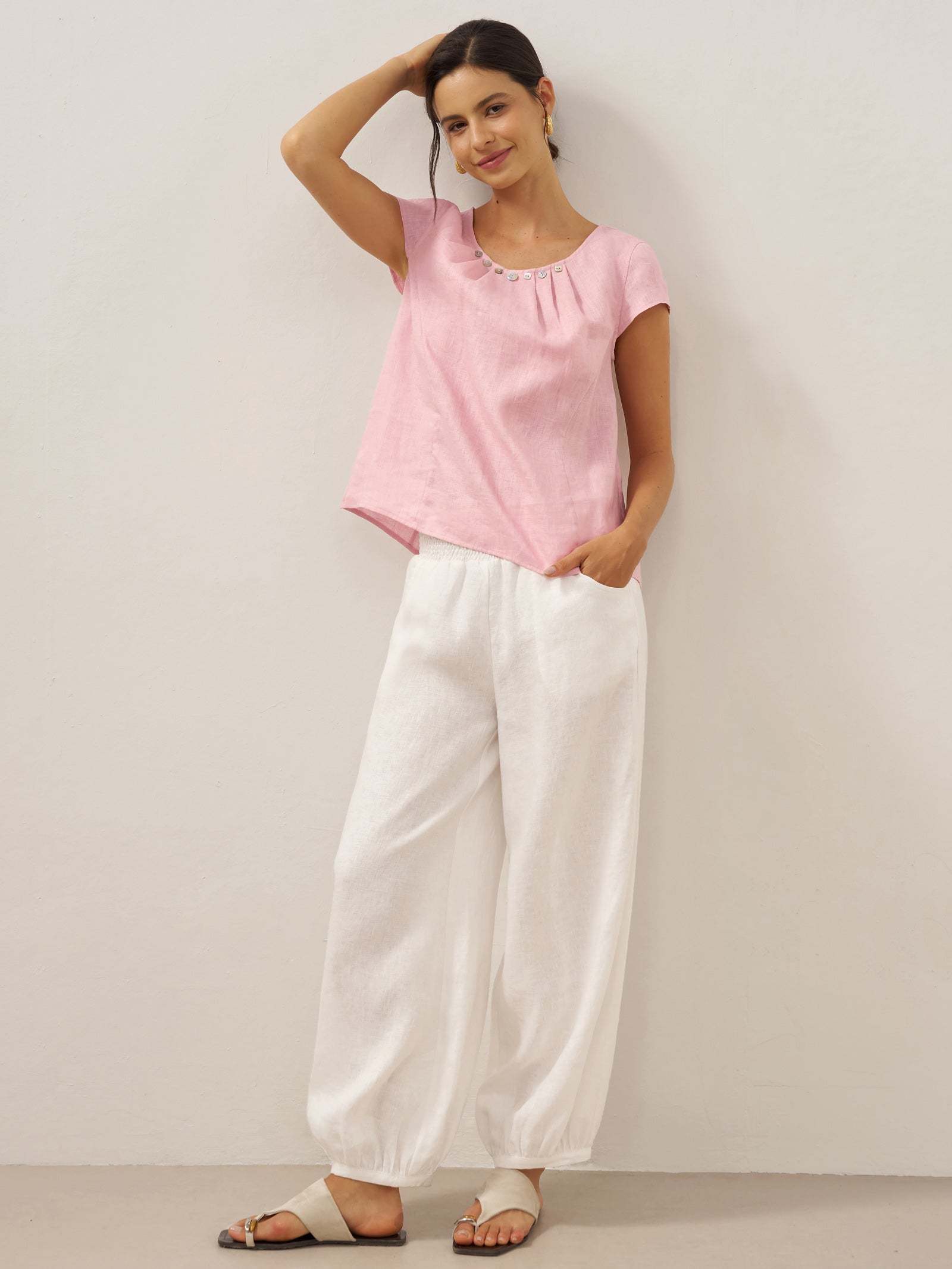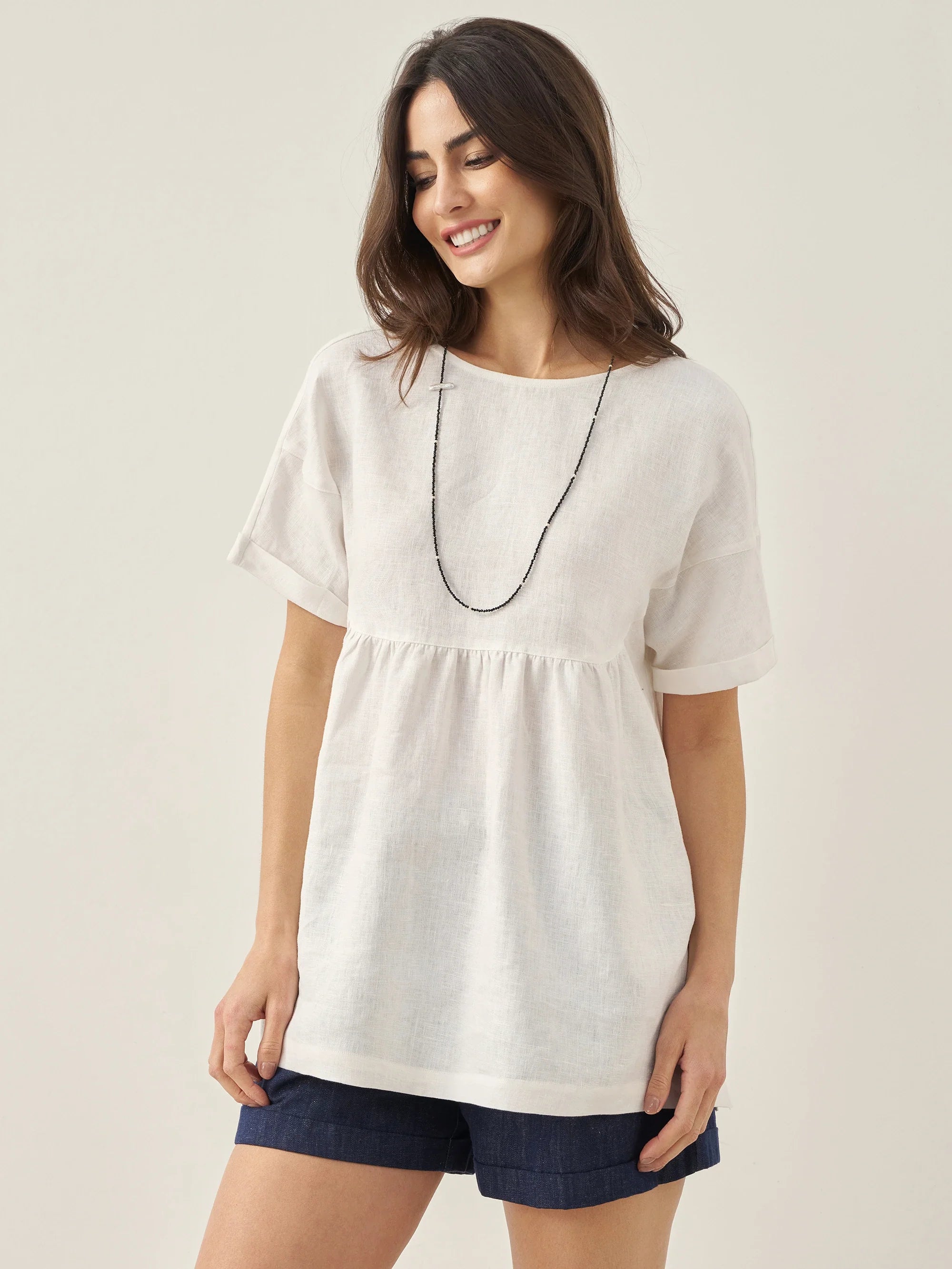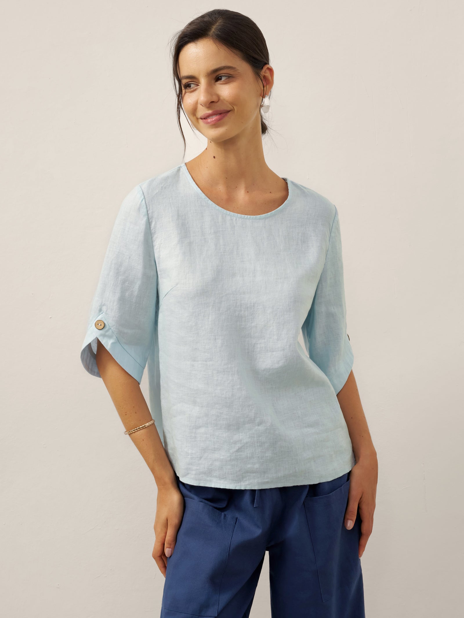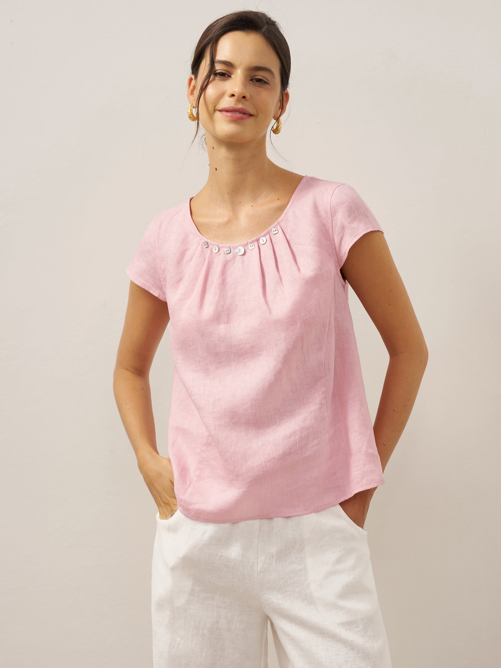 Linen Round Soft-Fold Collar Top ANAIS