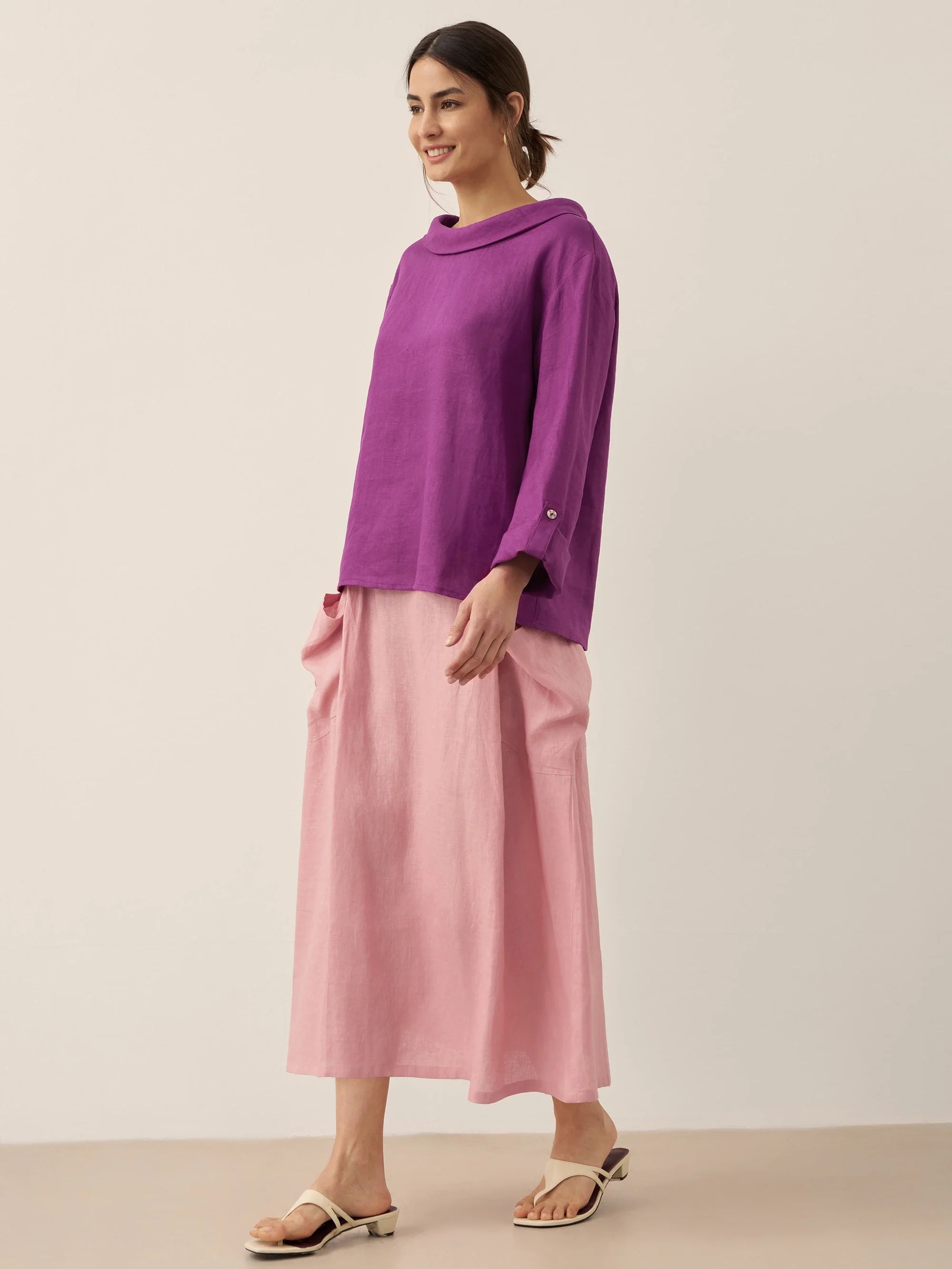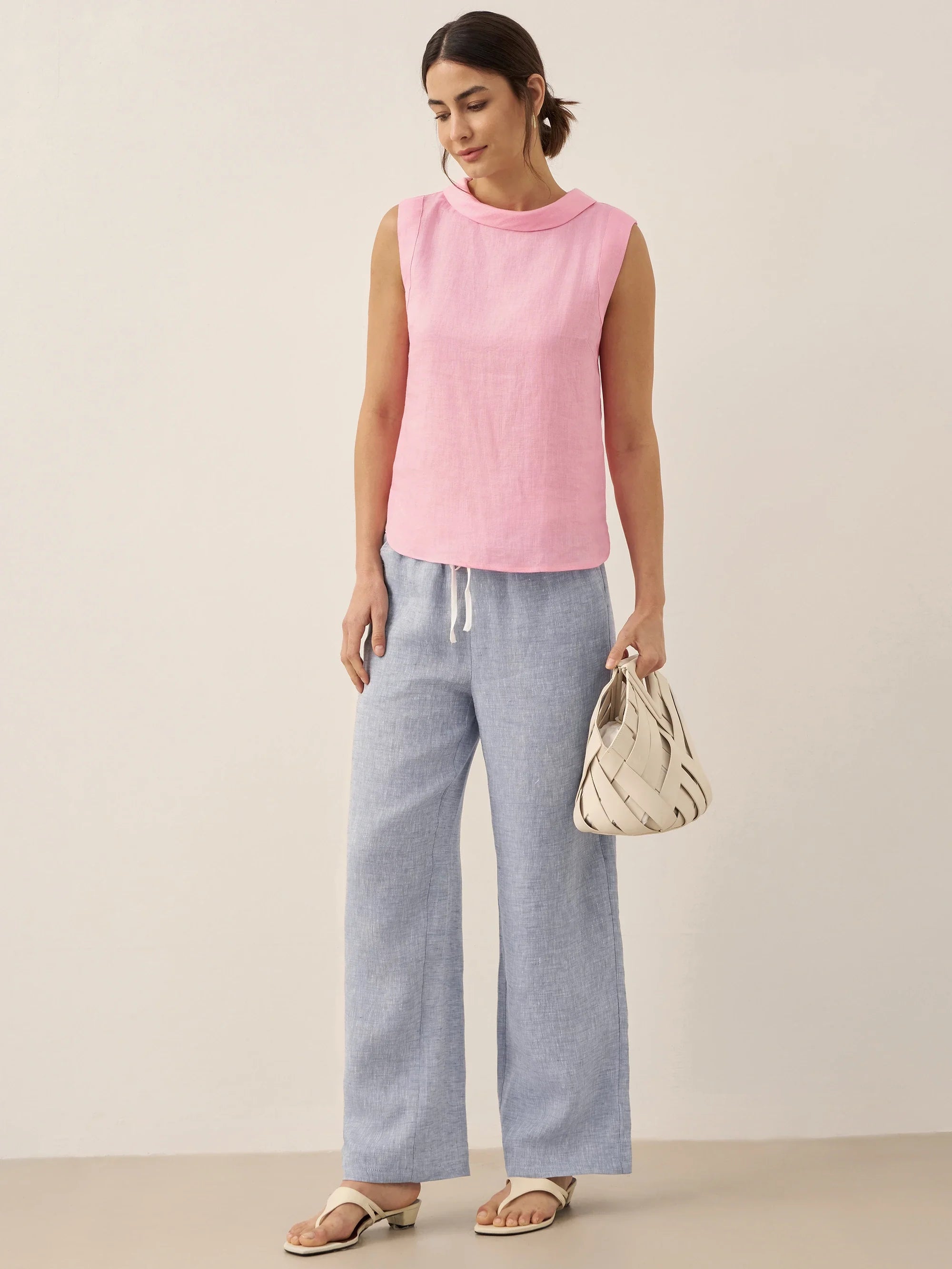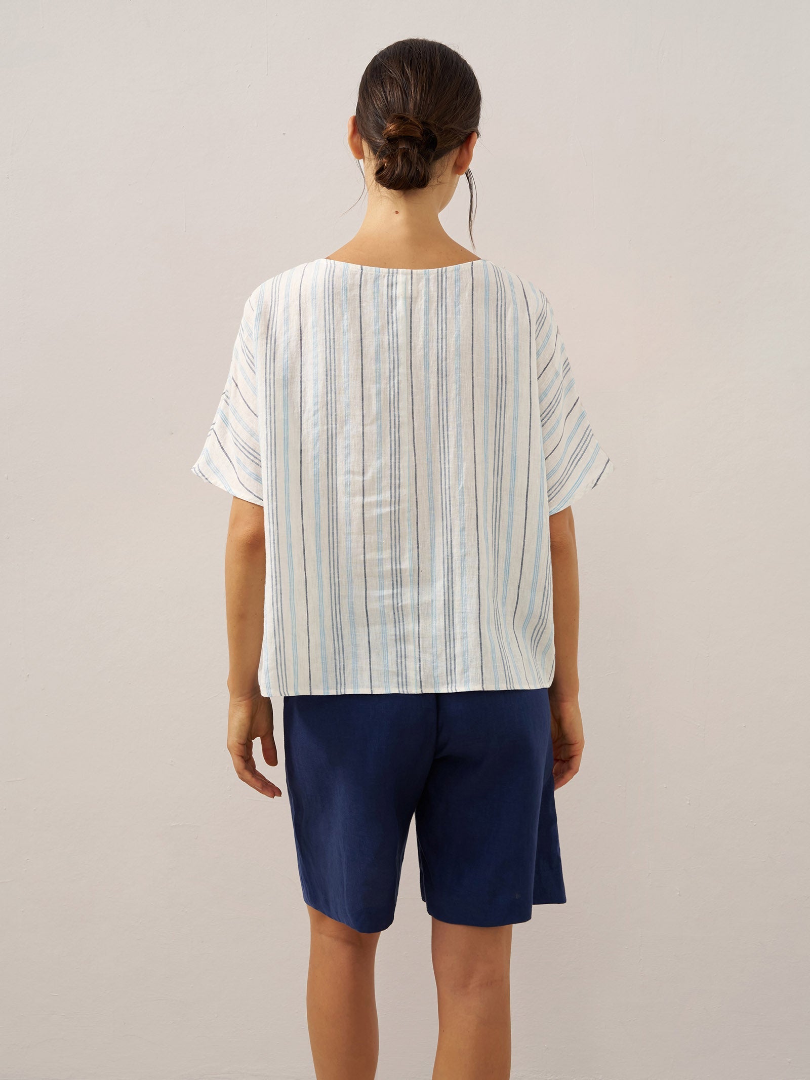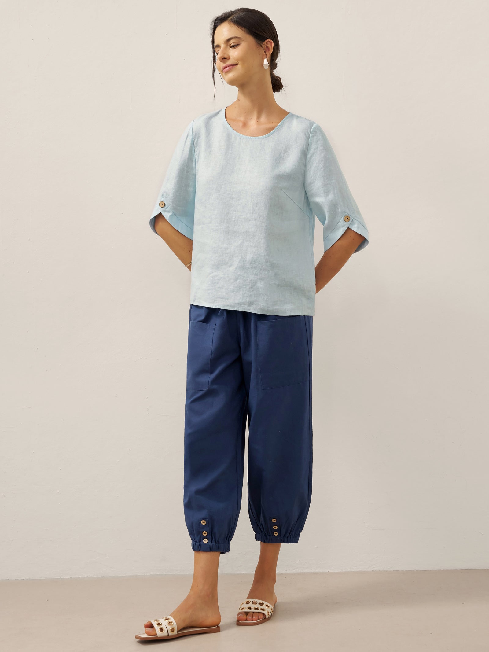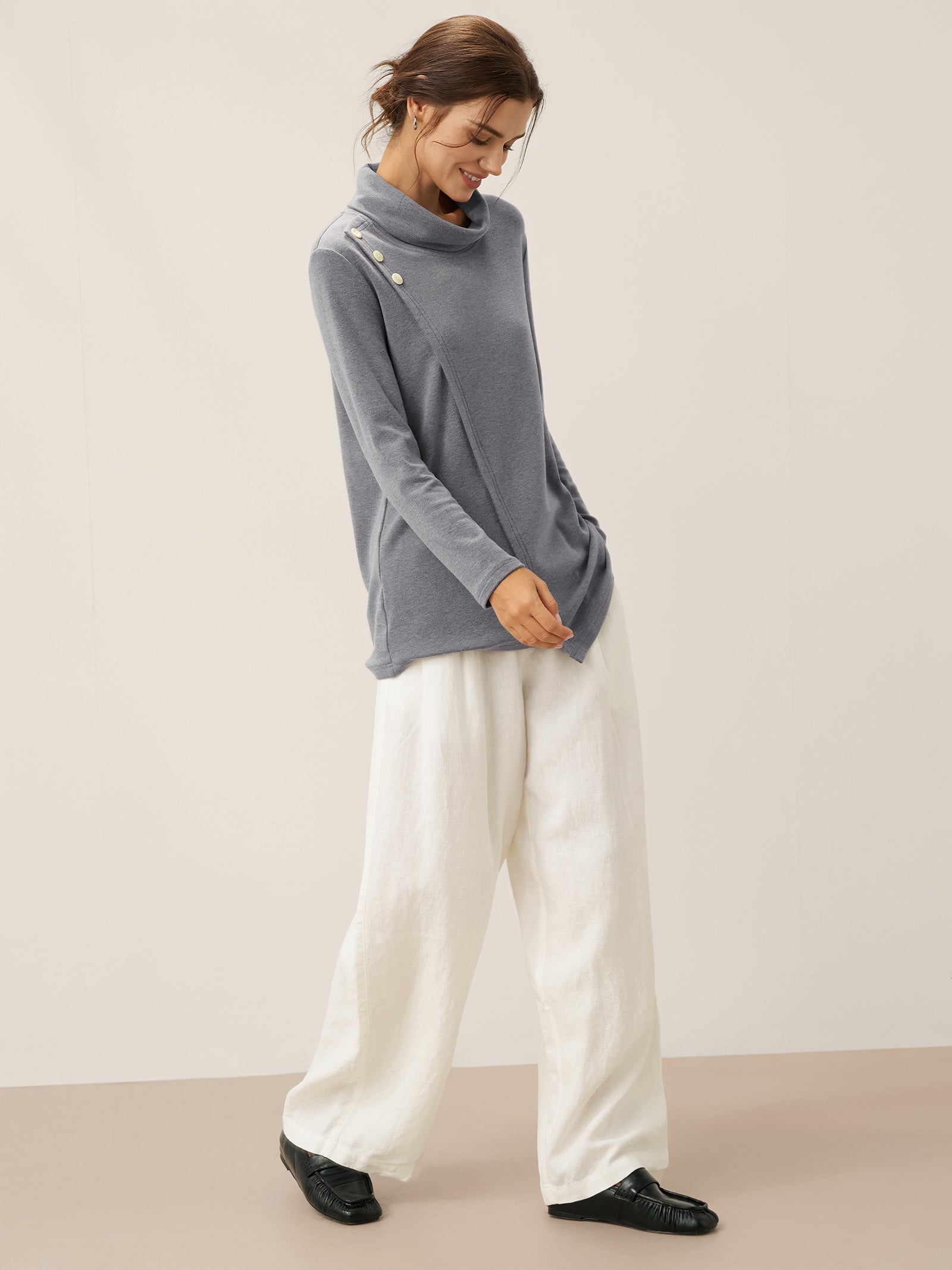 Linen Round Soft-Fold Collar Top ANAIS