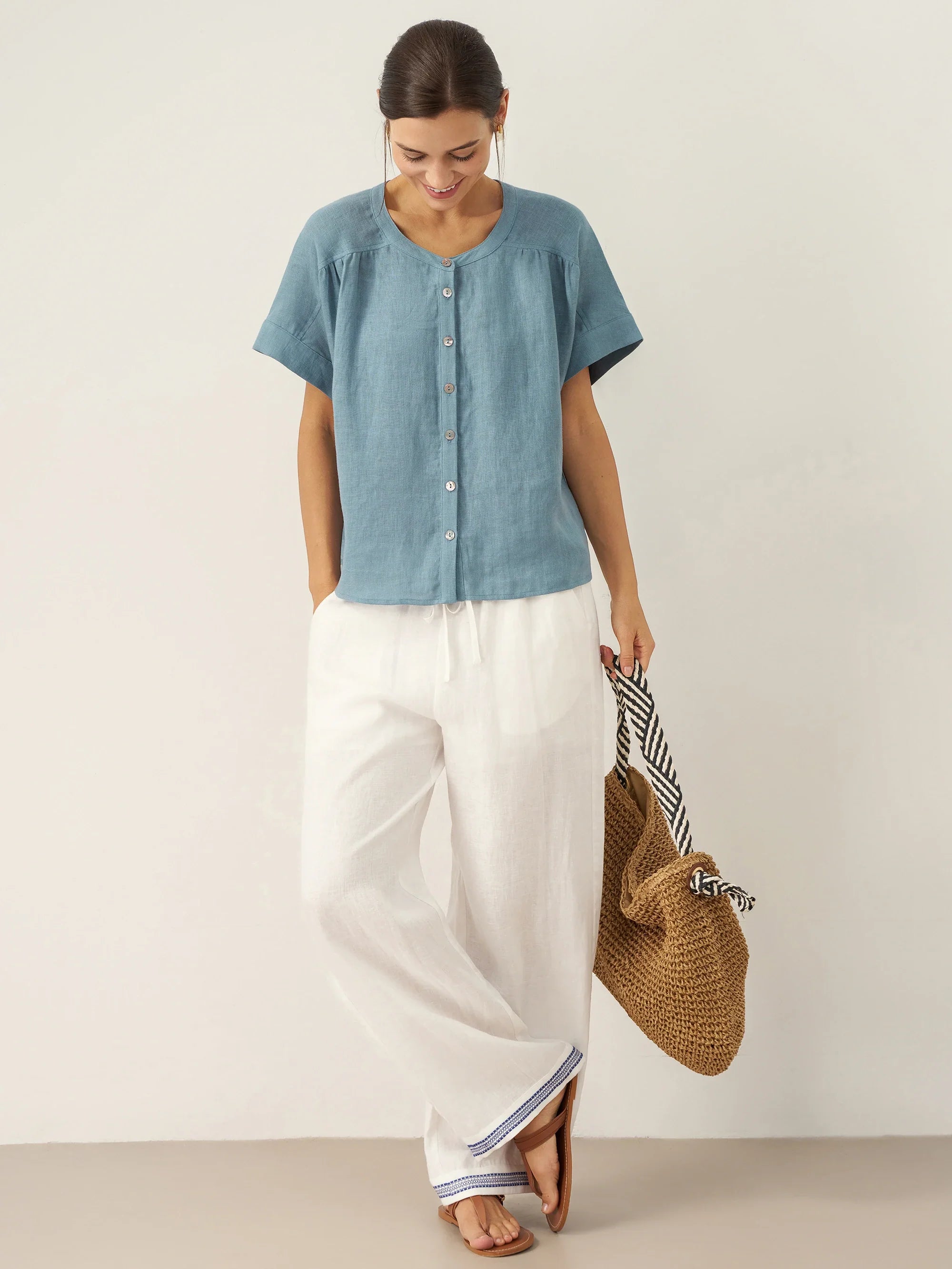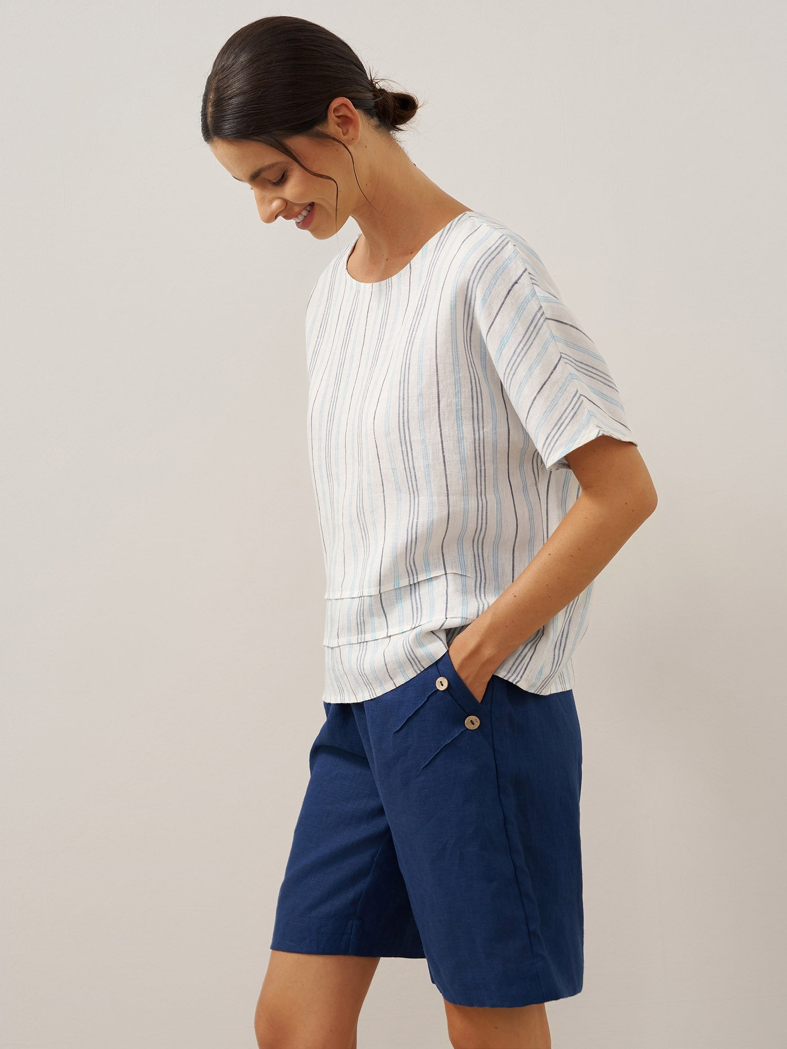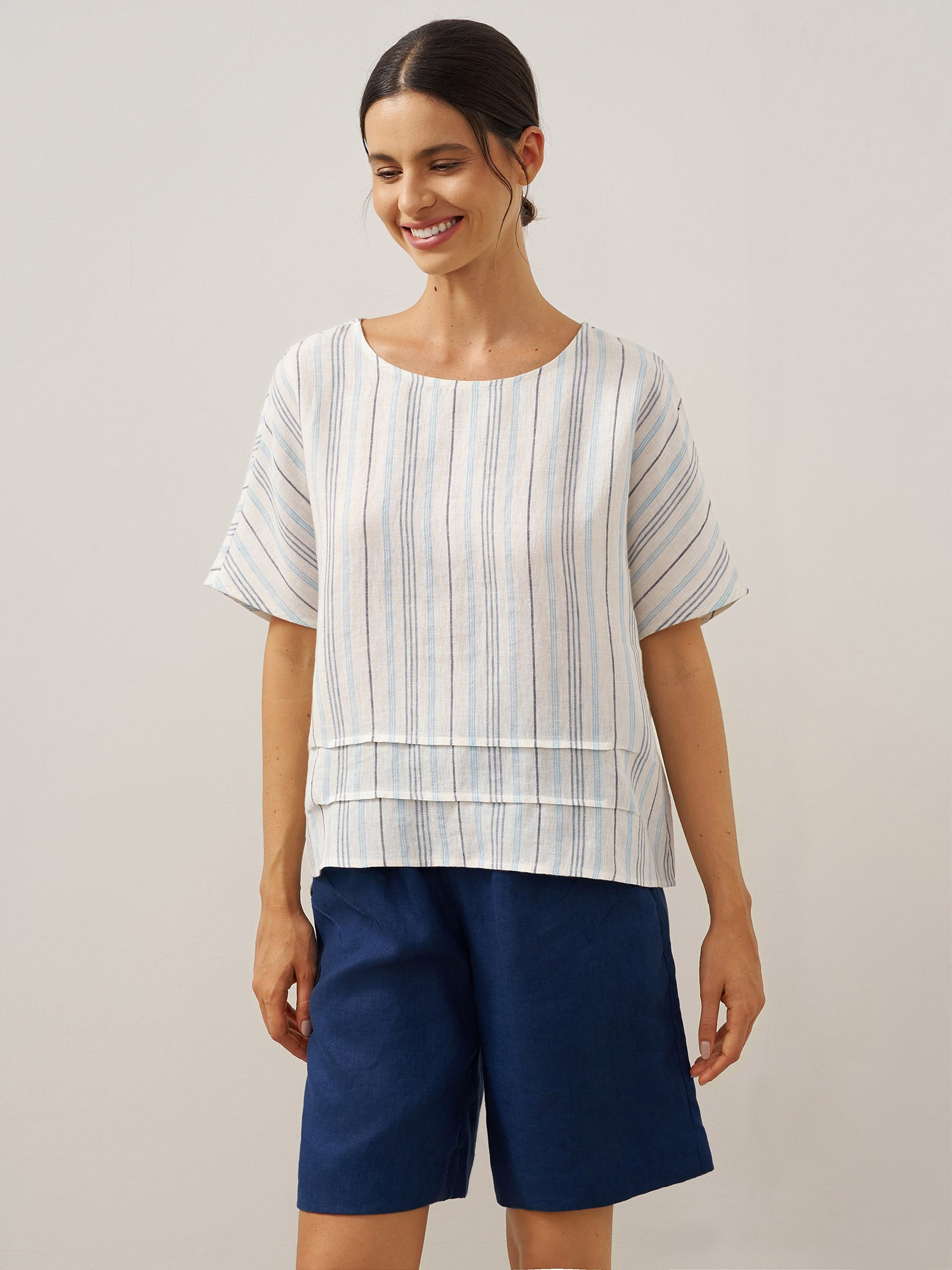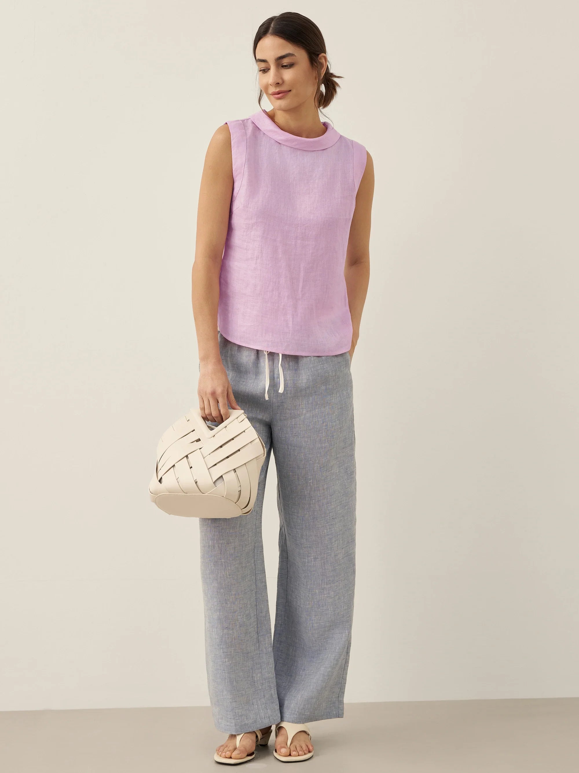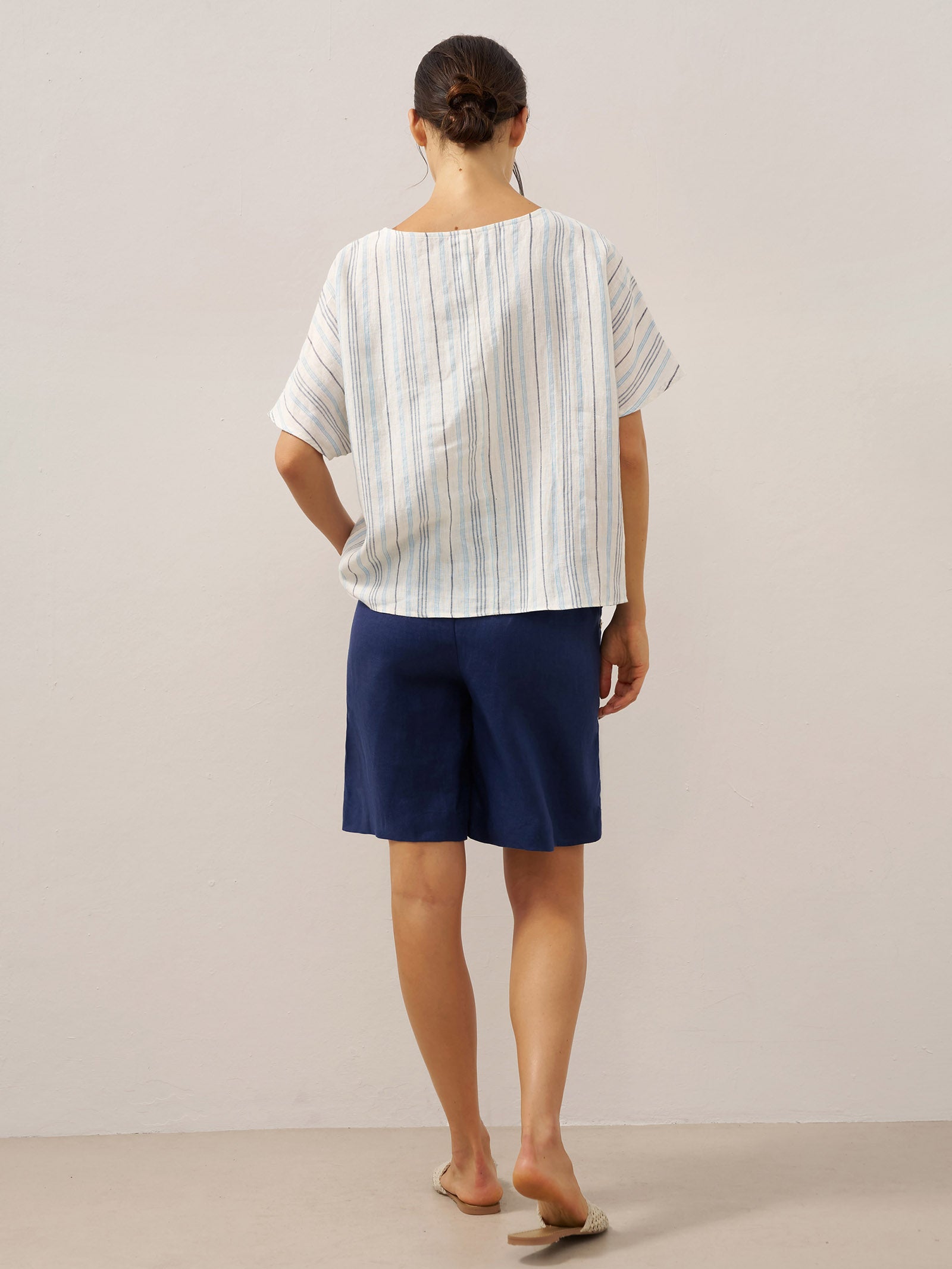 Linen Round Soft-Fold Collar Top ANAIS
