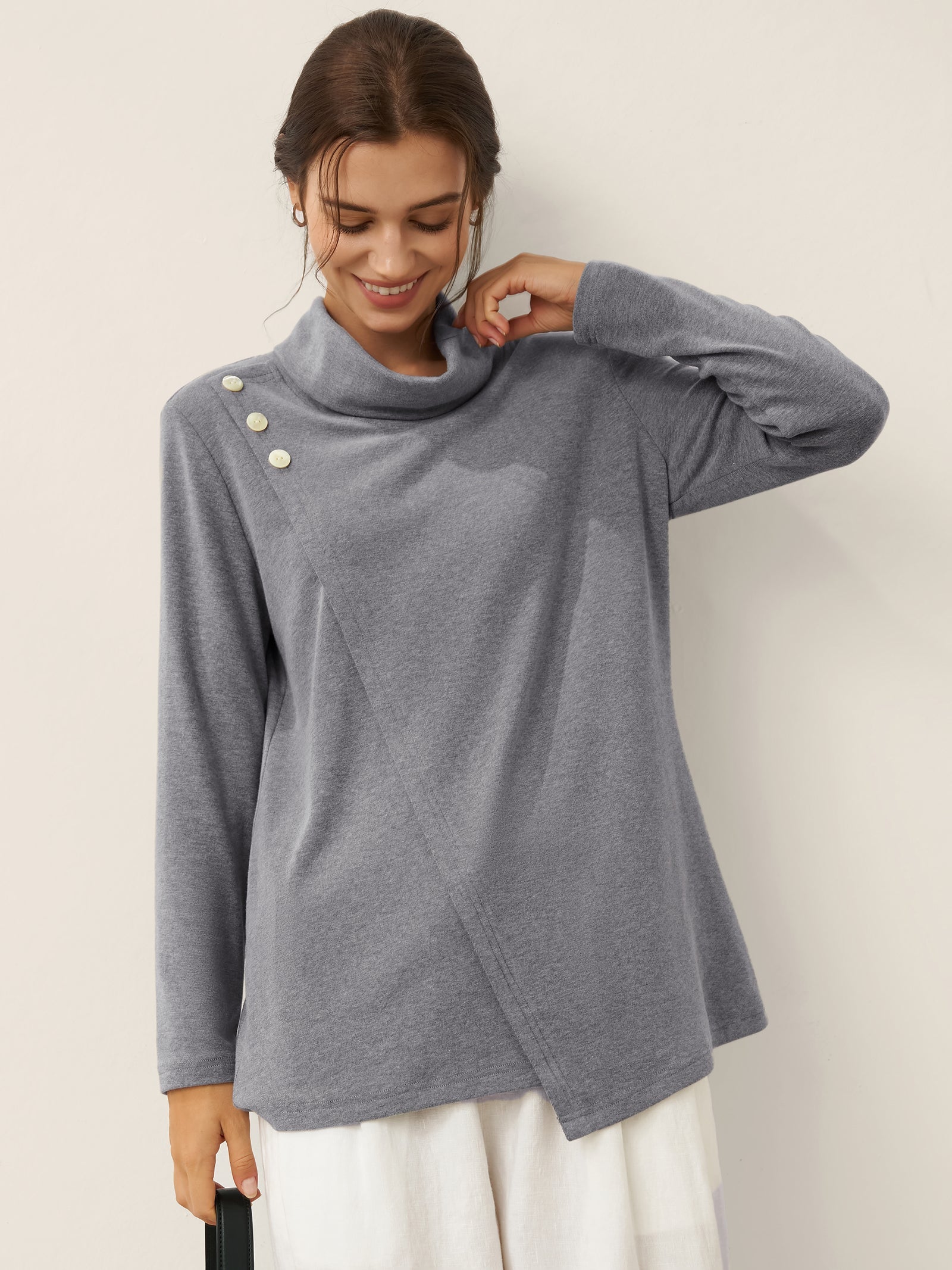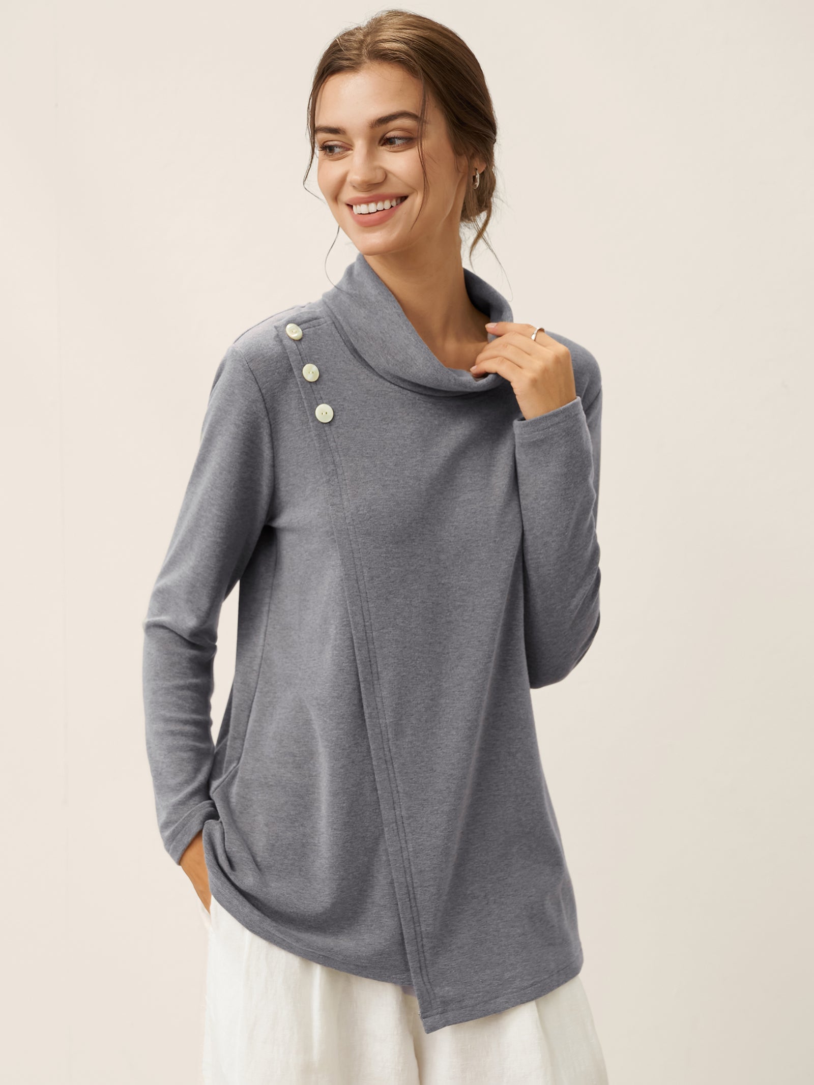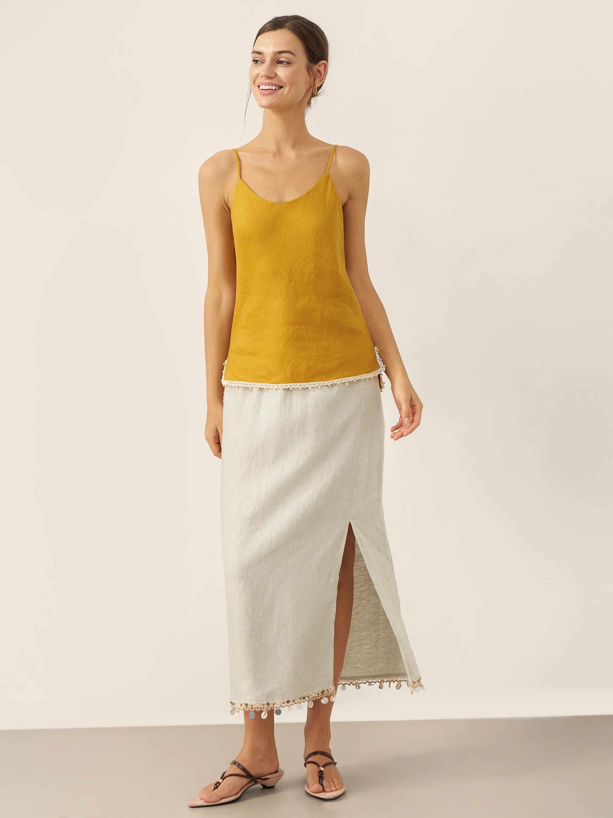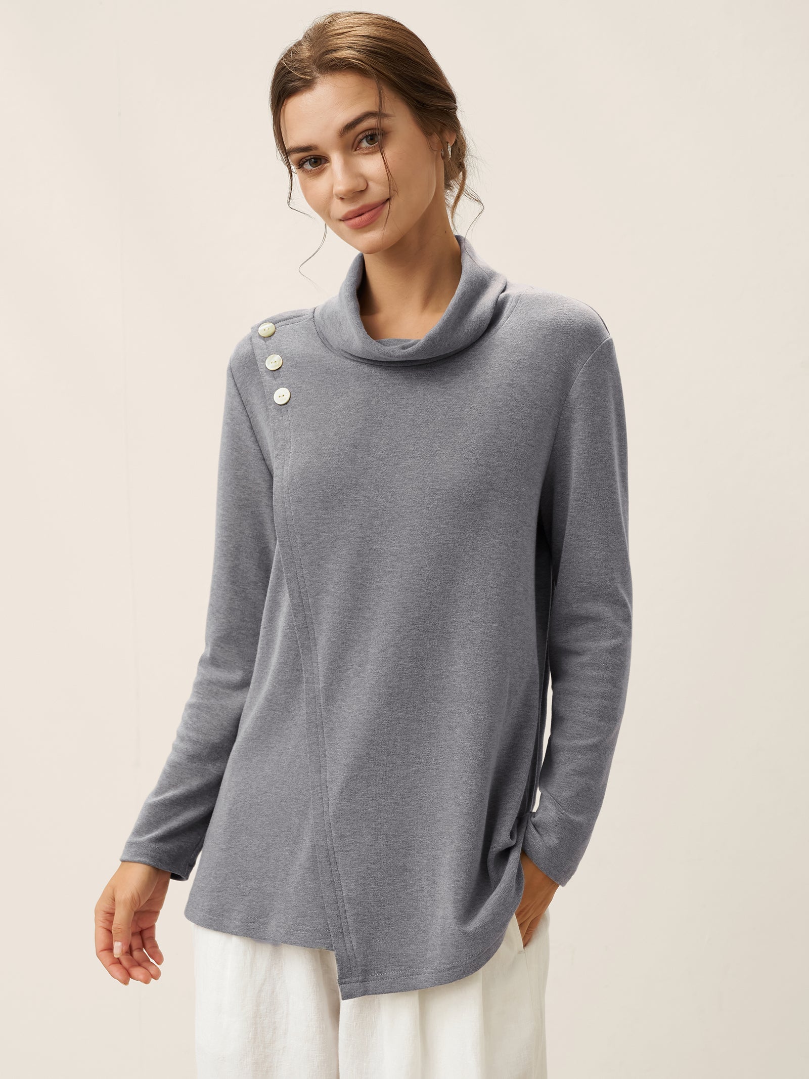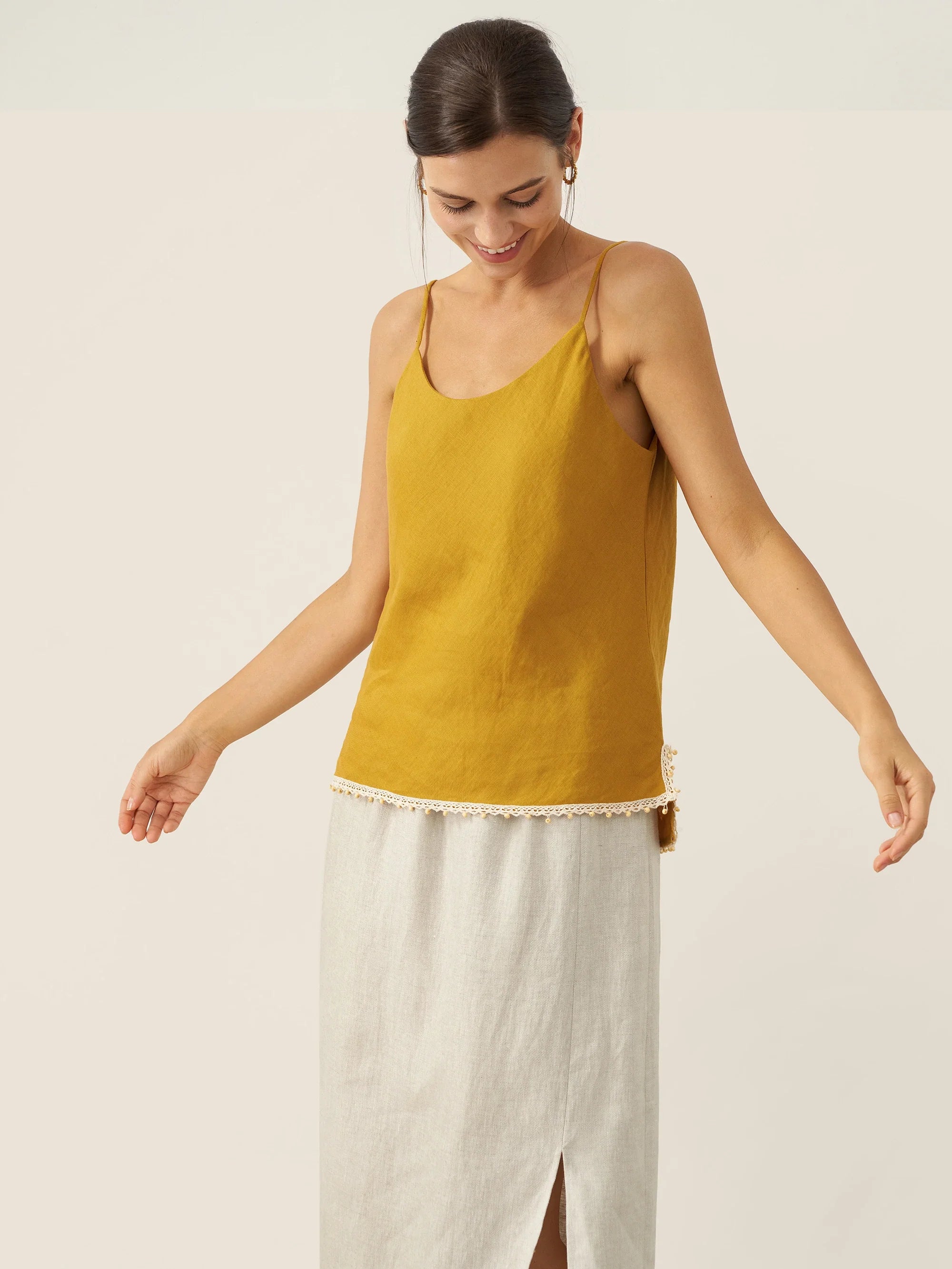 Linen Round Soft-Fold Collar Top ANAIS