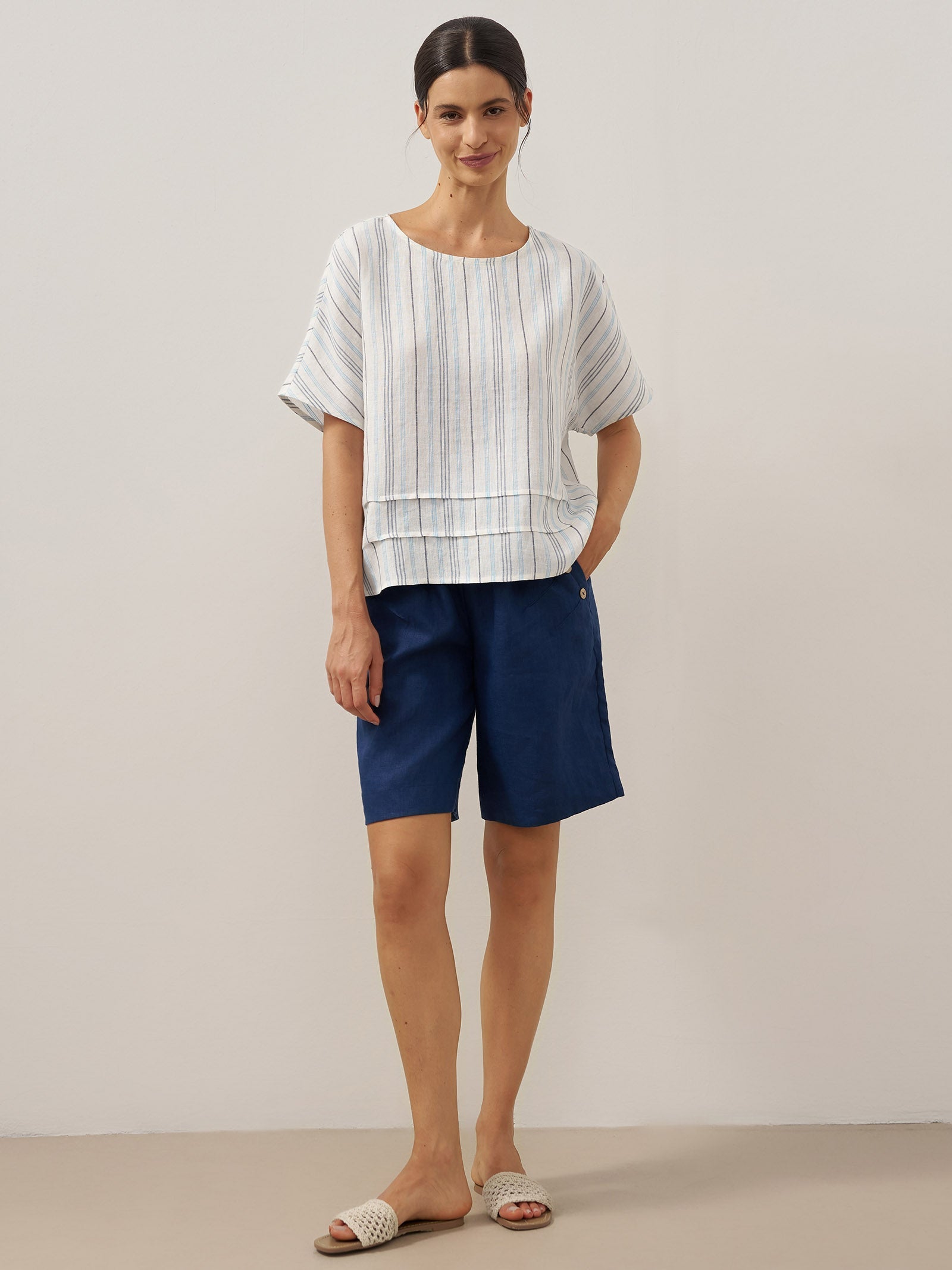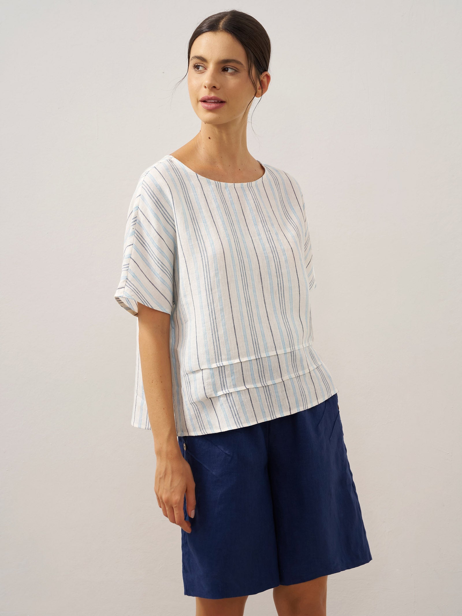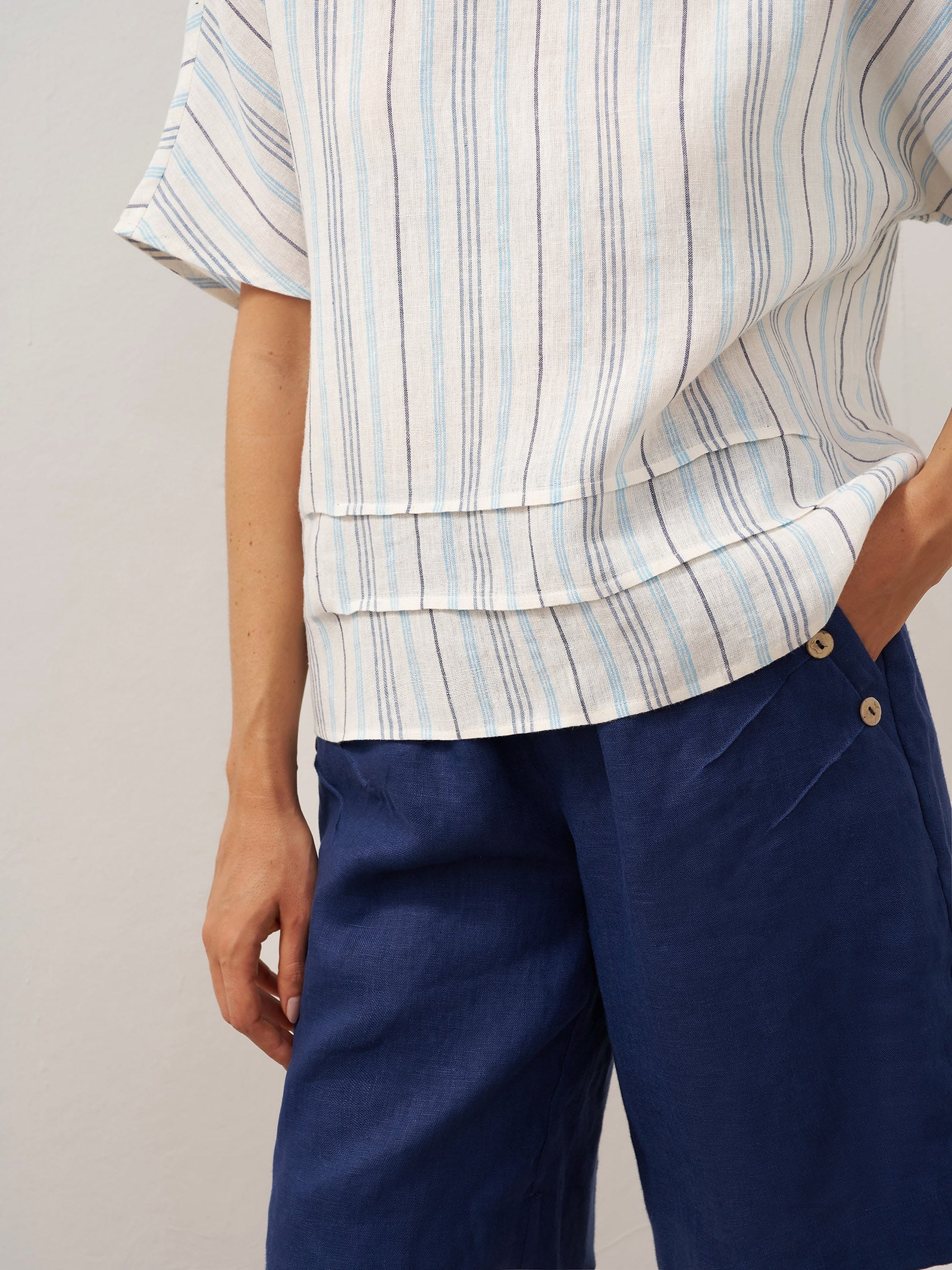 JADE 100% Linen Shawl V-Neck Half Sleeve Top