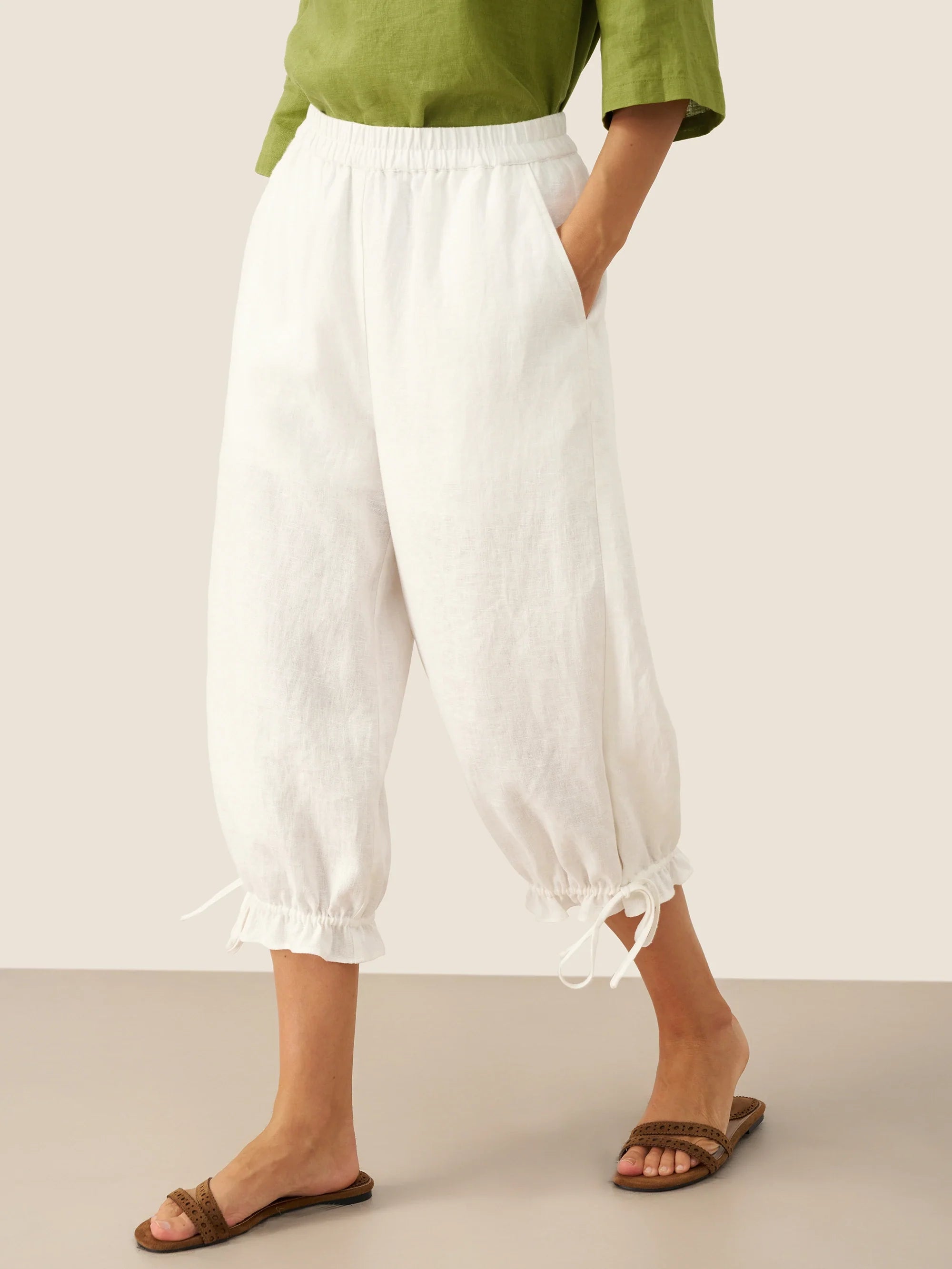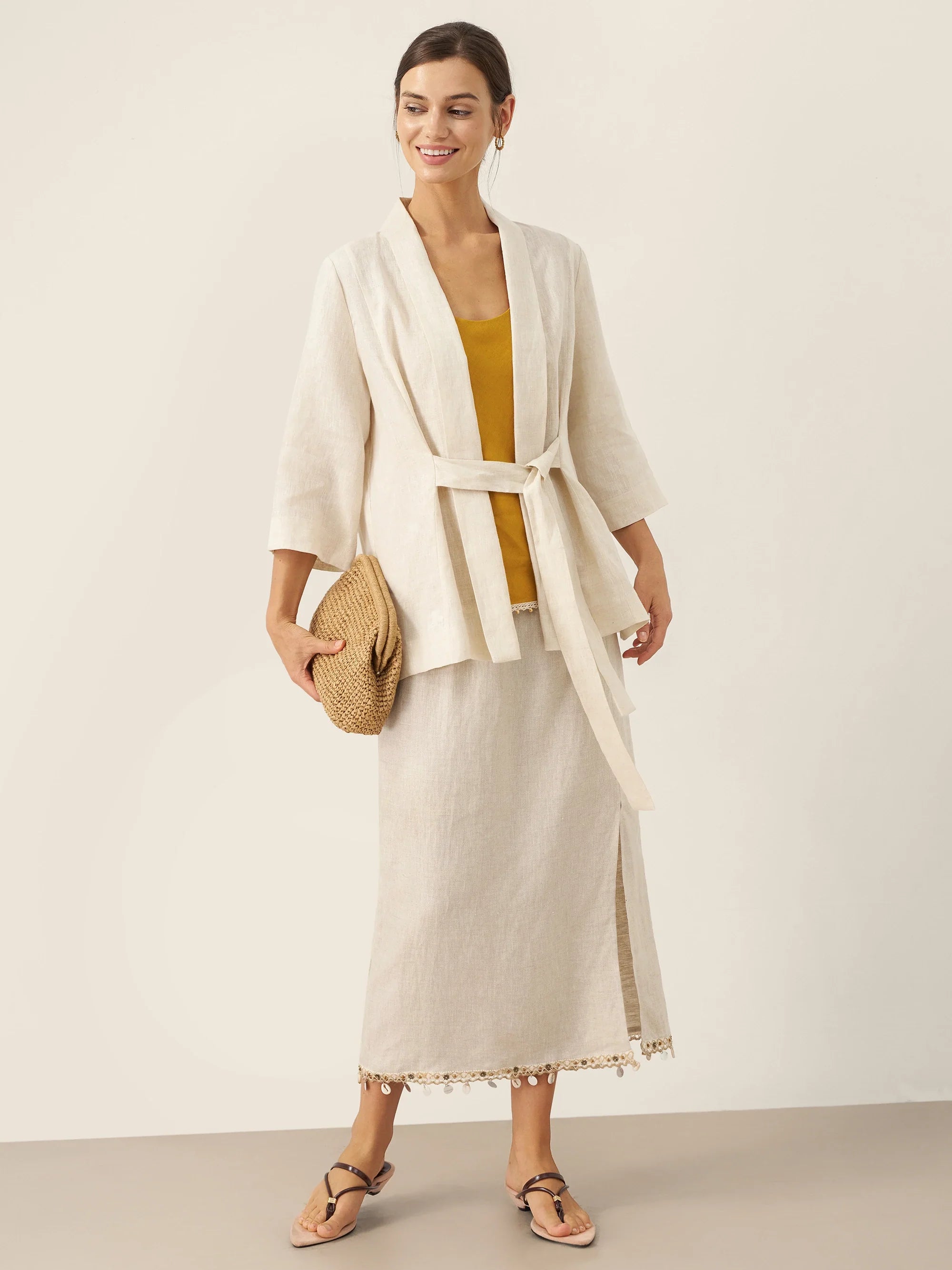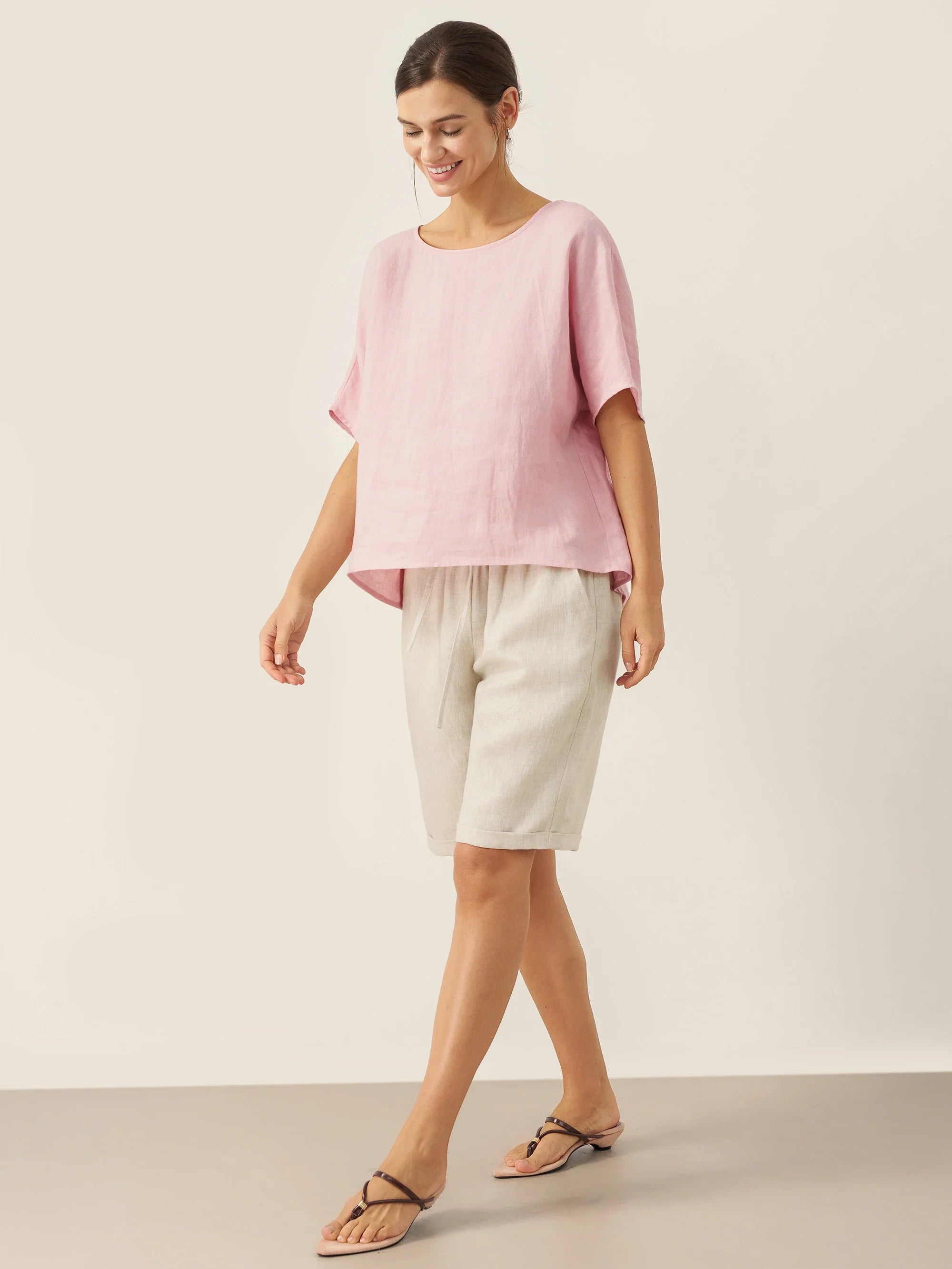 JADE 100% Linen Shawl V-Neck Half Sleeve Top
