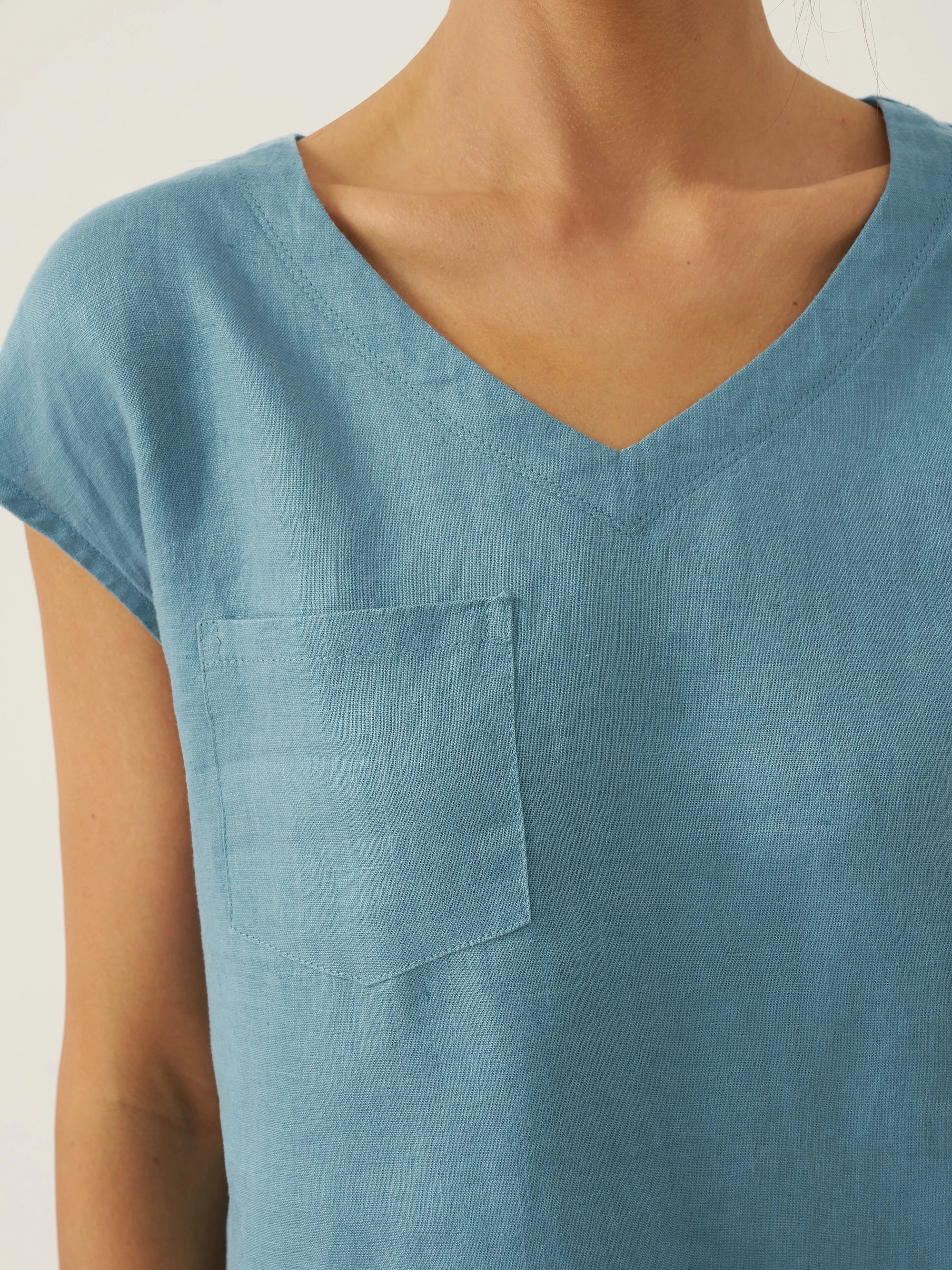 100% Linen Shawl V-Neck Half Sleeve Top JADE