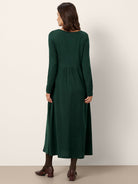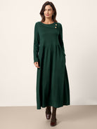 Wool Layered Neck Pleated Maxi Dress BILLIE