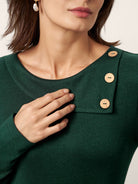 - Artisanal Button Accent: Three asymmetrical coconut buttons add organic texture and dimensional interest to solid-colored simplicity