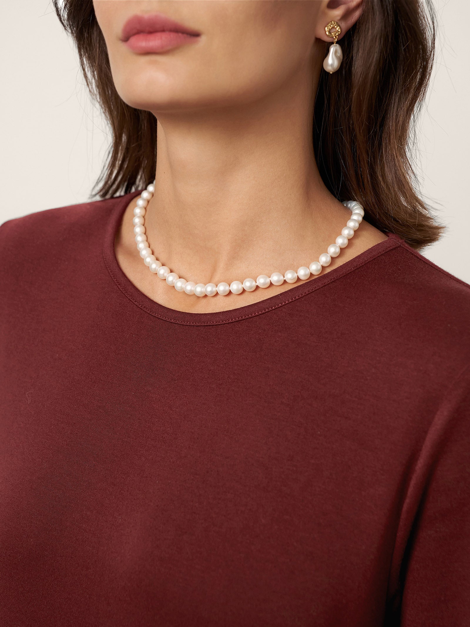 - Soft Round Neckline: Gently frames the collarbones to accentuate facial features
