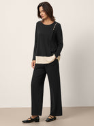 - False Layering: Black-and-cream split hem creates dimensional "two-piece" styling without added bulk