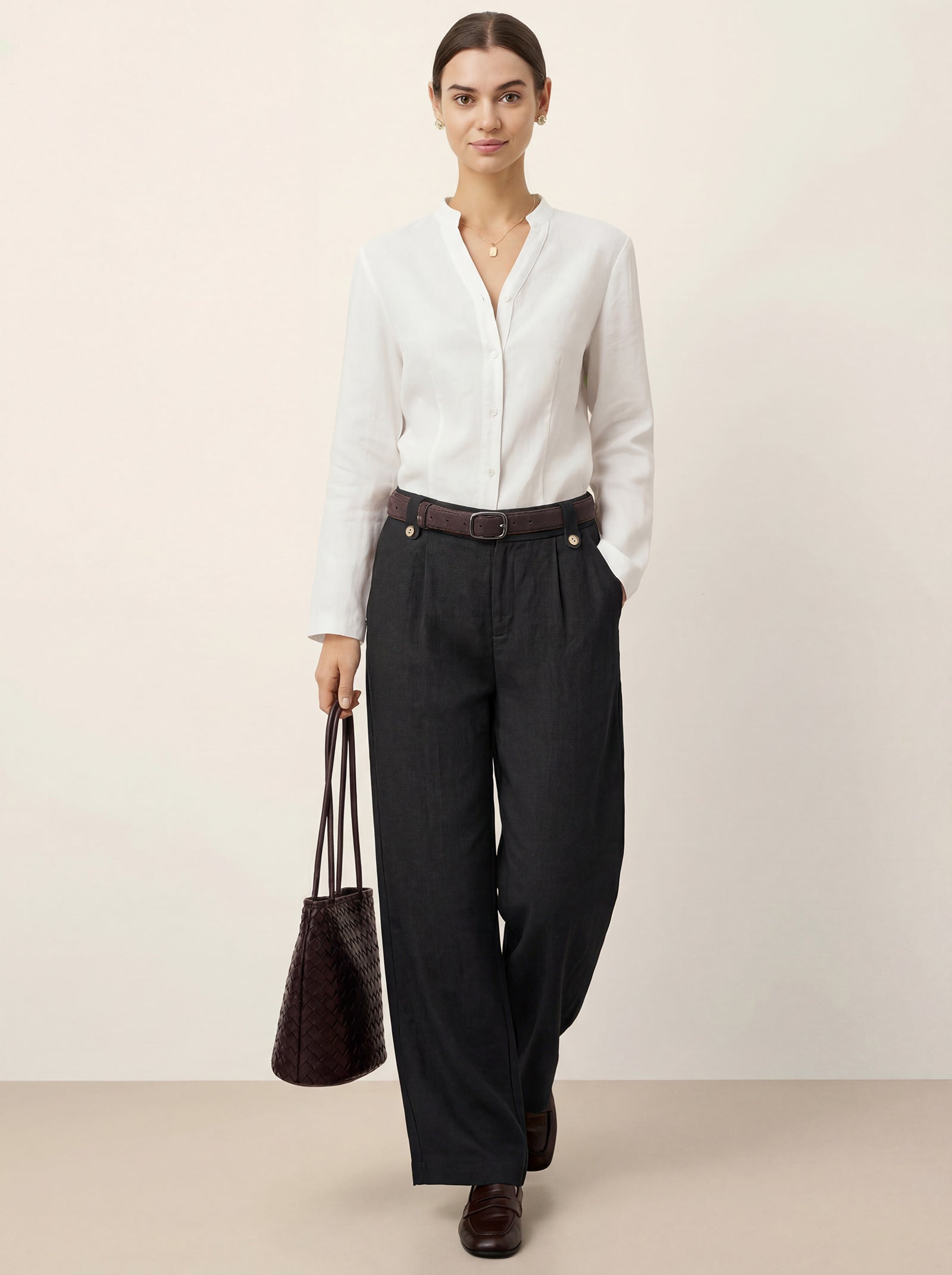 • Polished Office: Blazer + silk camisole + pointed flats