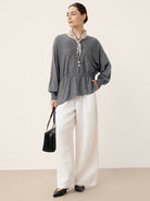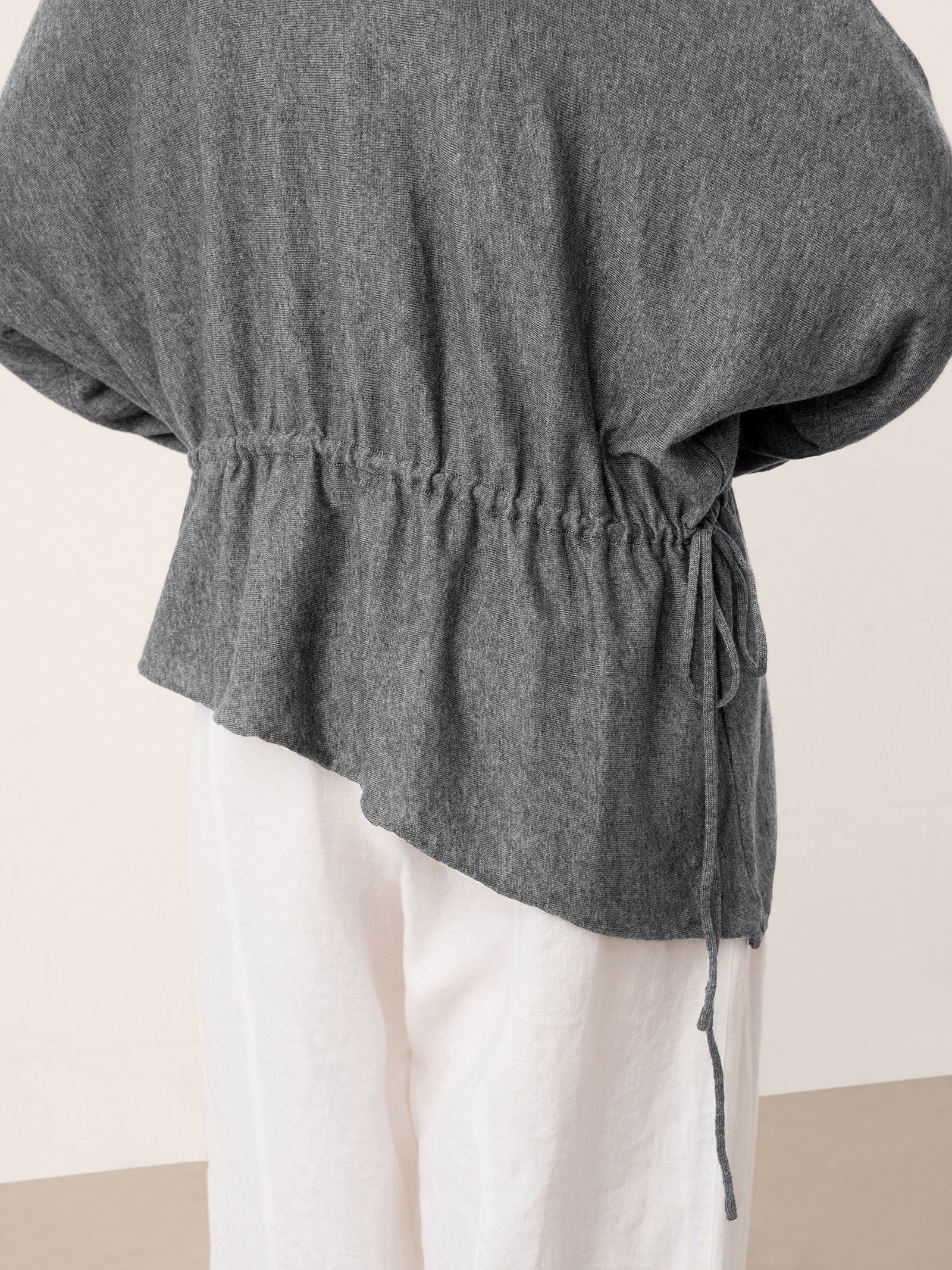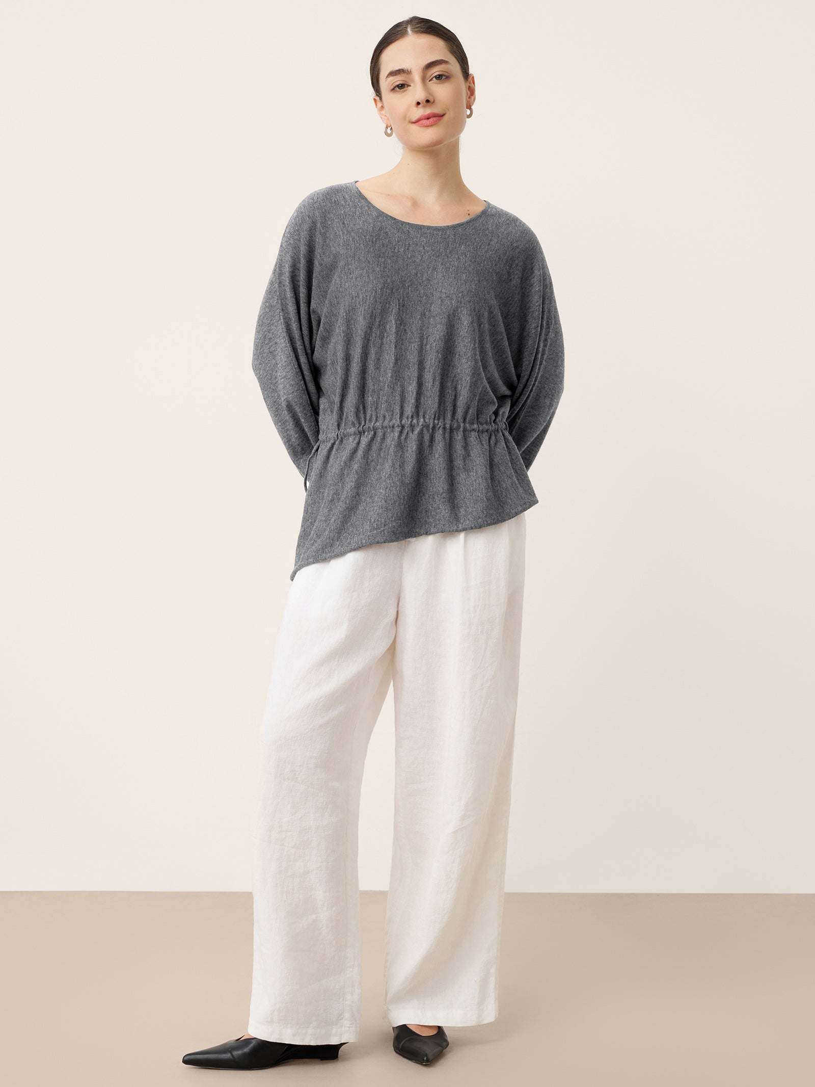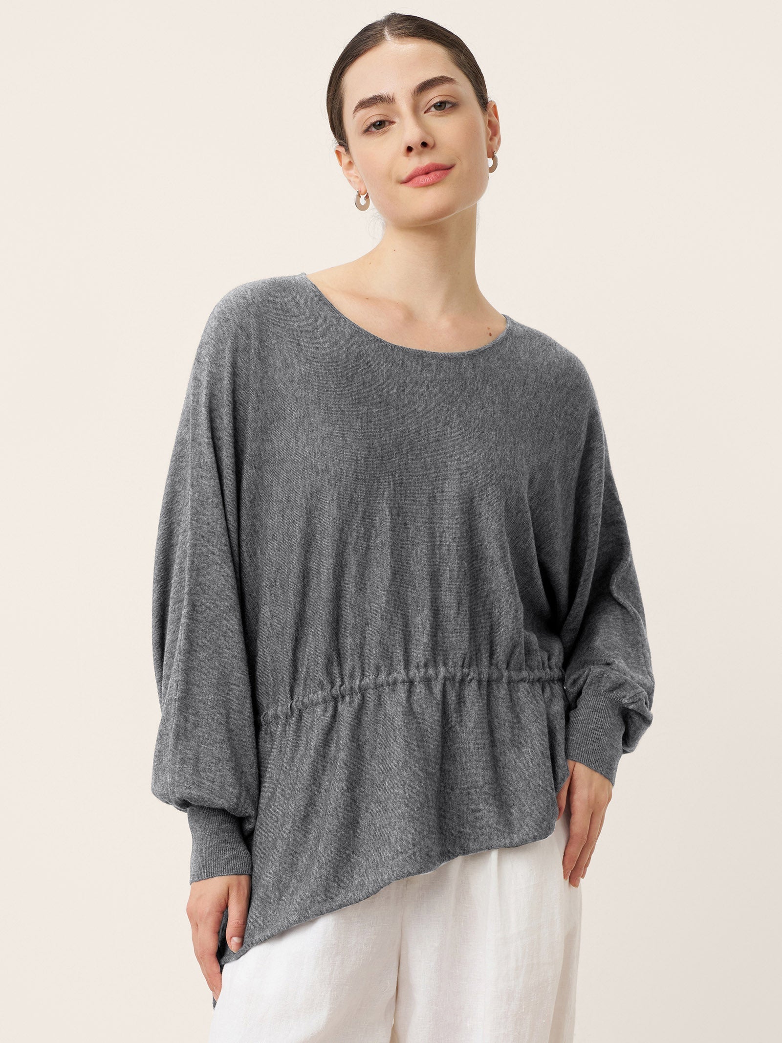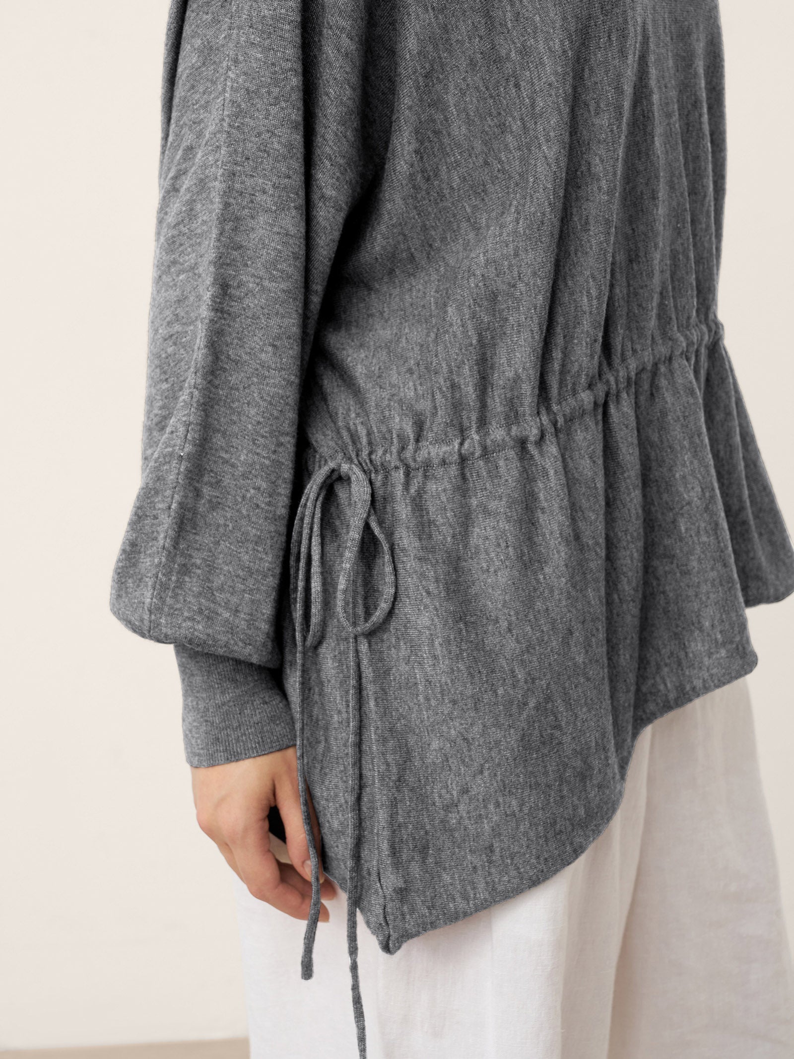 Merino Wool Asymmetric Drawstring Hem Loose Top WREN