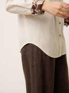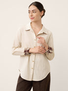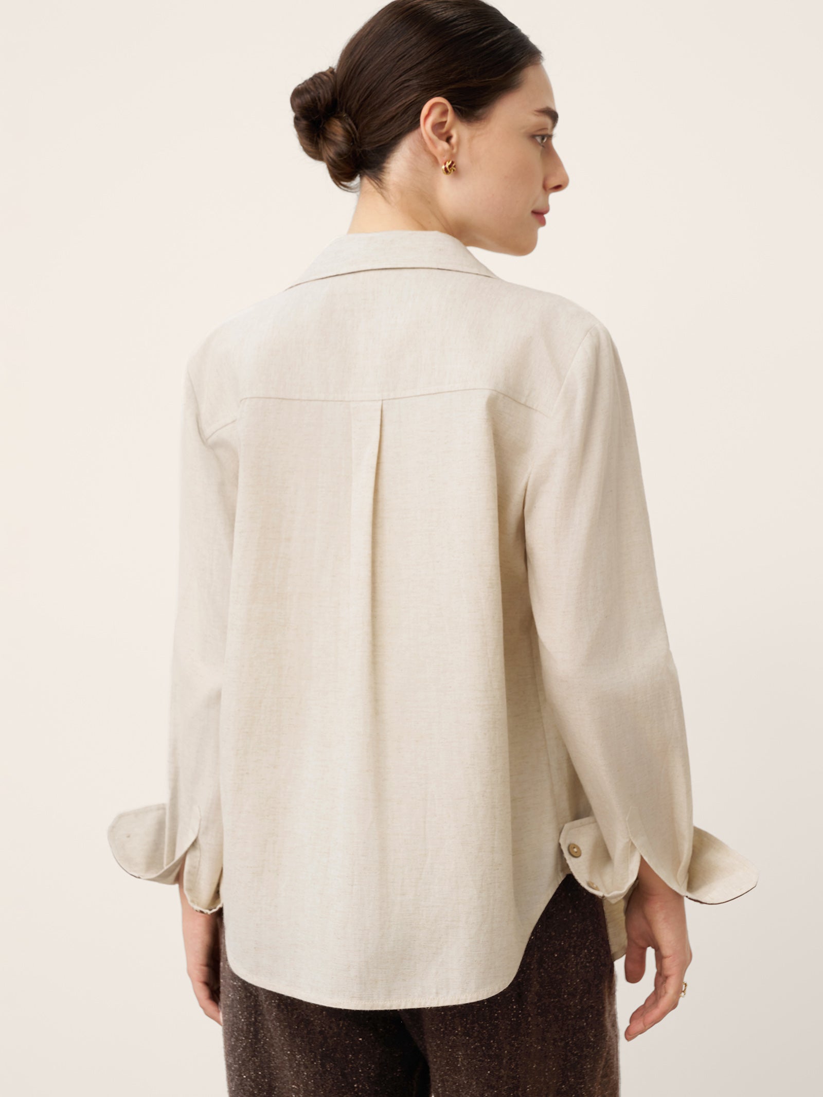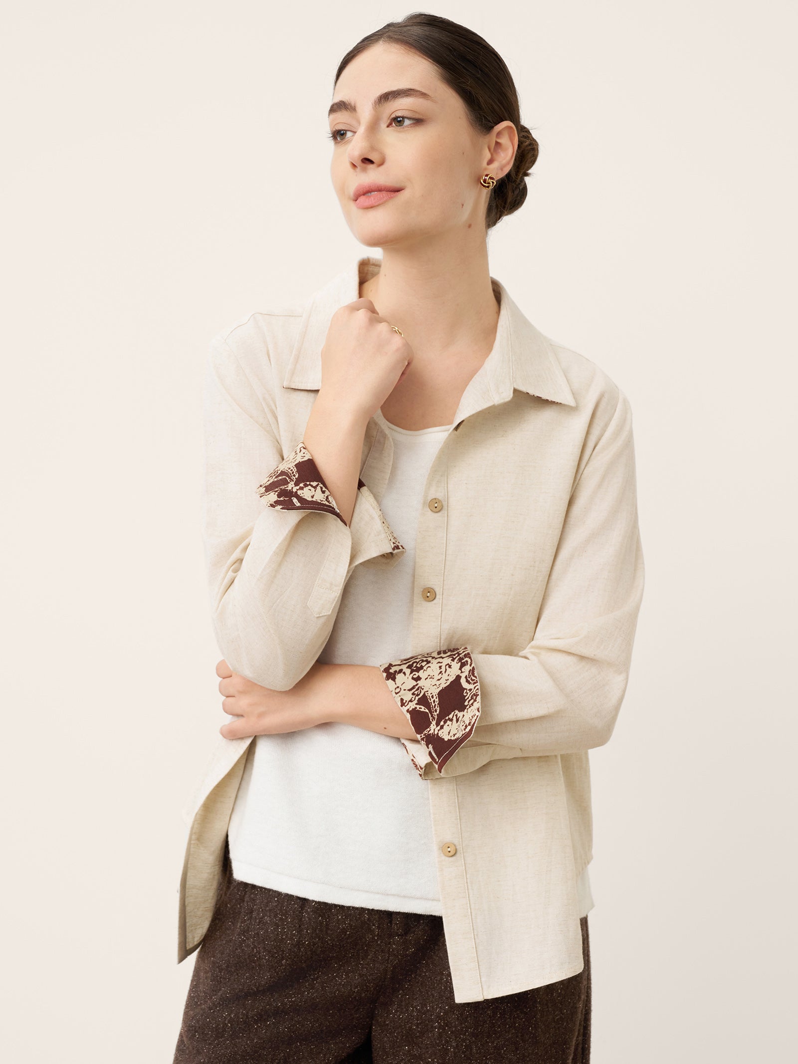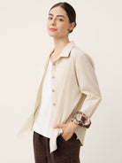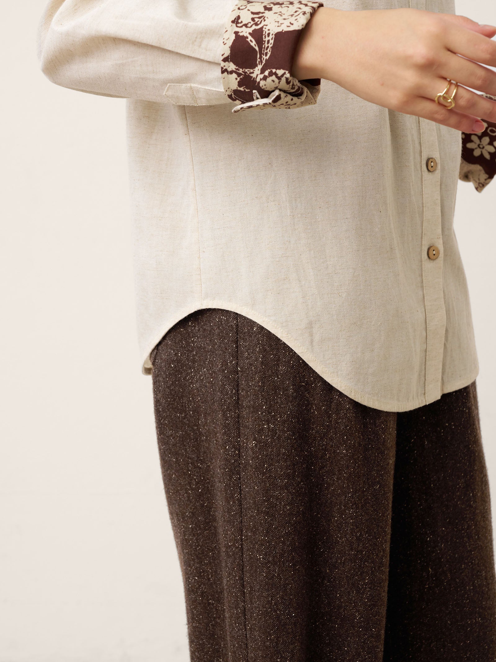 - Organic Textural Harmony: Raw shell buttons + breathable linen-blend fabric amplify tactile luxury