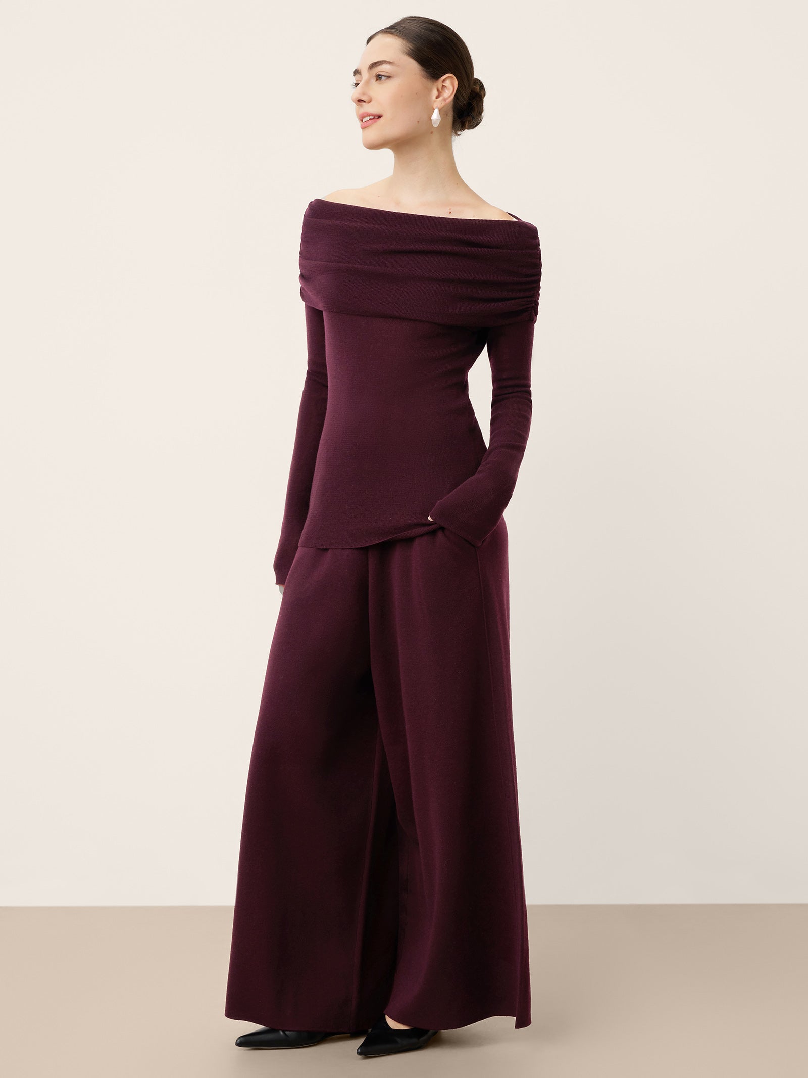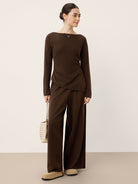 Merino Wool Elastic Waist Relaxed Straight-Leg Pants YVETTE