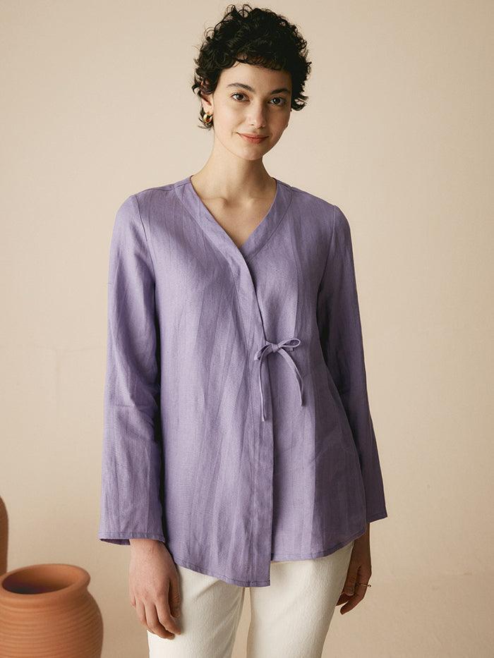 100% Linen Tie Cardigan Top DAKOTA
