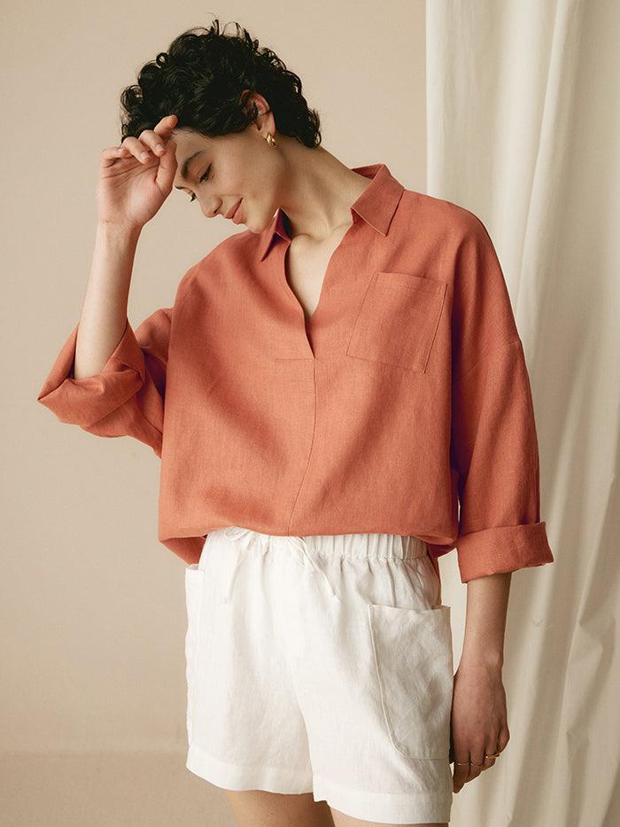 Made from pure flax, our linen lacks elasticity, resulting in natural wrinkles when worn or slept in. Embrace the 'lived-in luxe' aesthetic — a deliberate, carefree rumpled look that exudes quality. Our linen is garment-washed before it gets to you though, so you should experience minimal shrinkage.