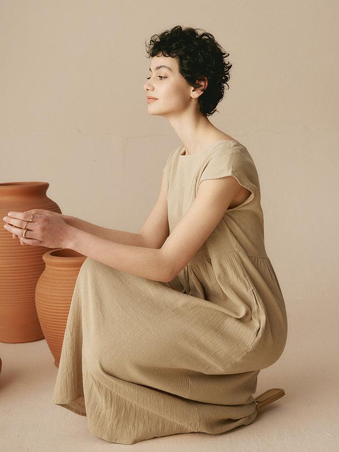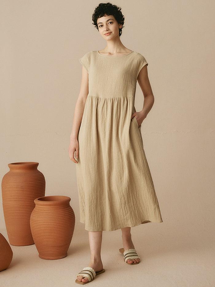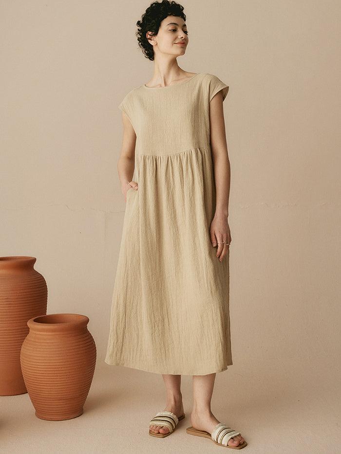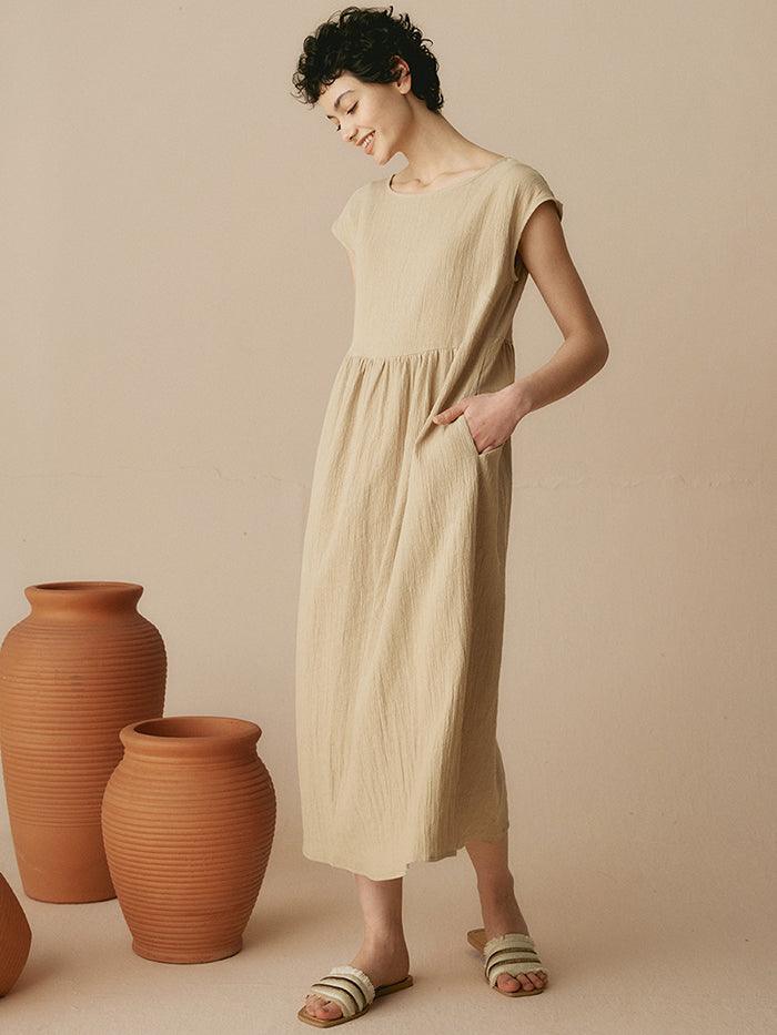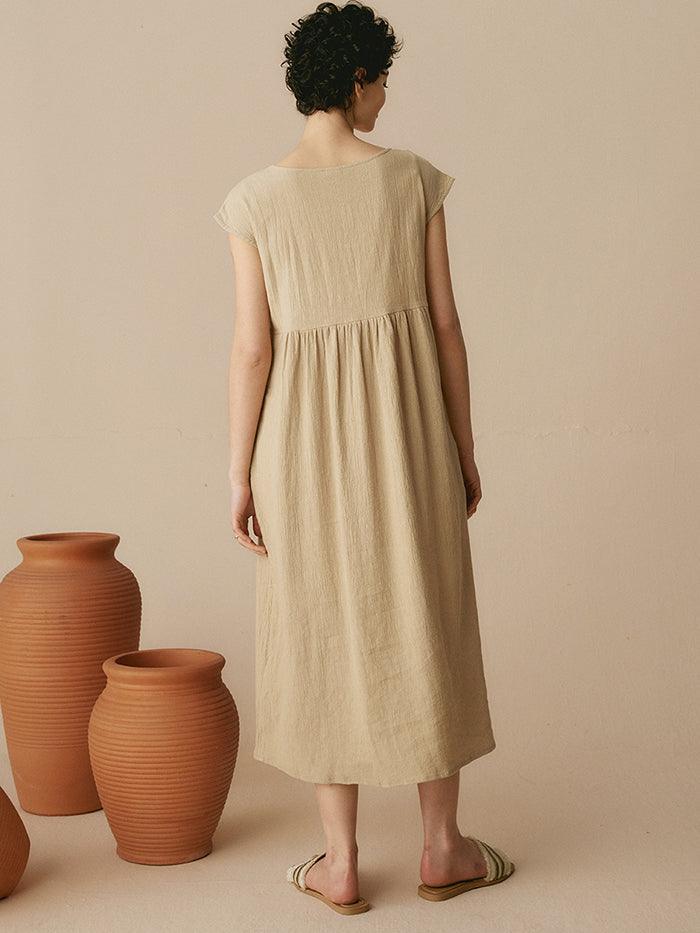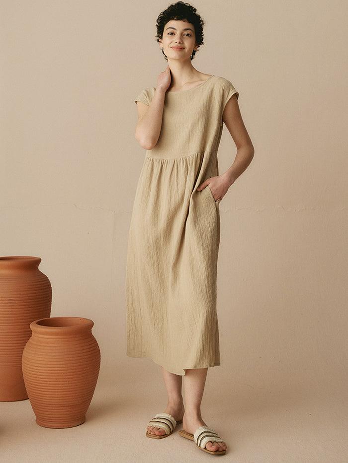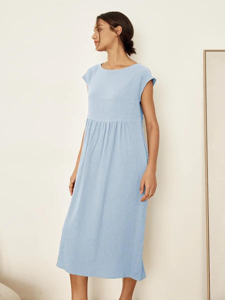 JOAN 100% Linen Cap Sleeve Washed Maxi Dress