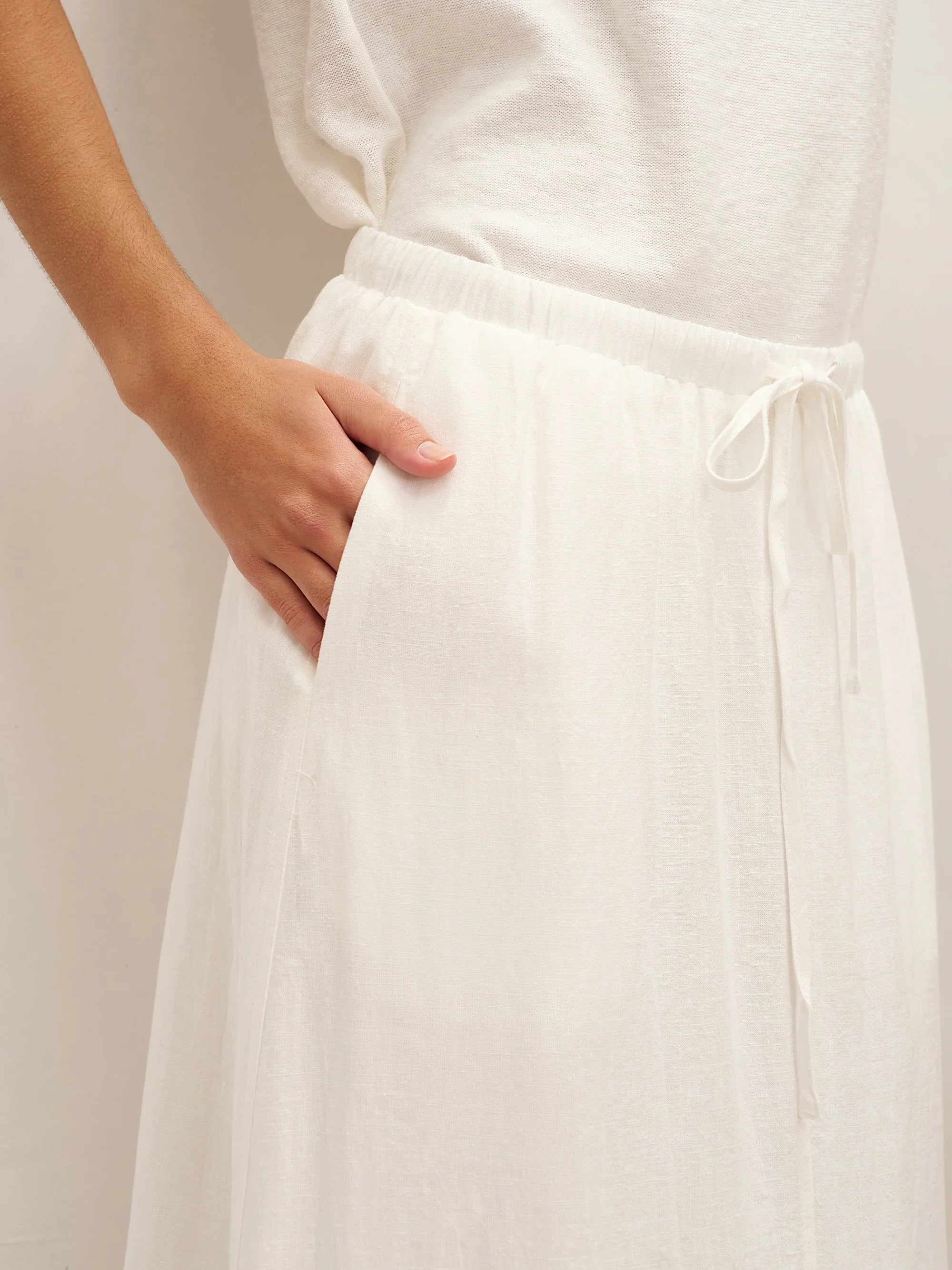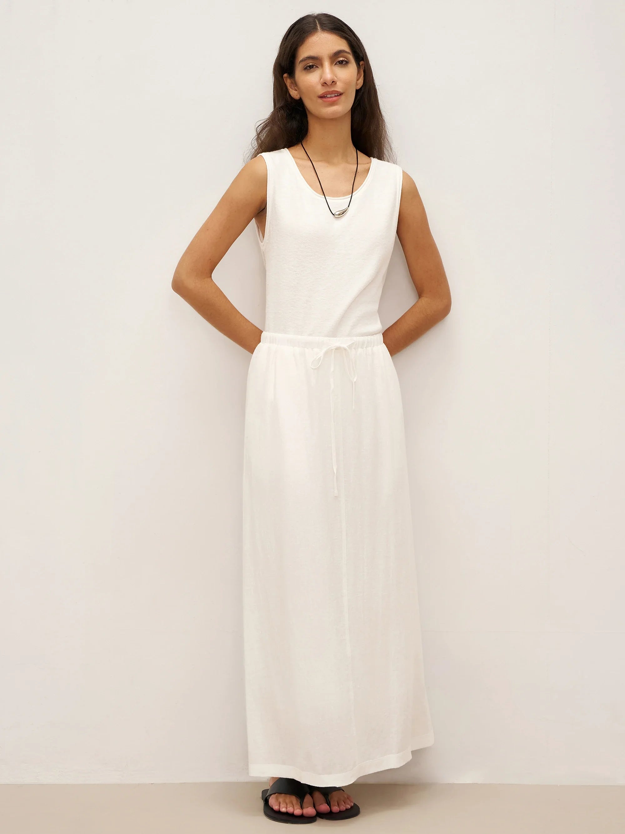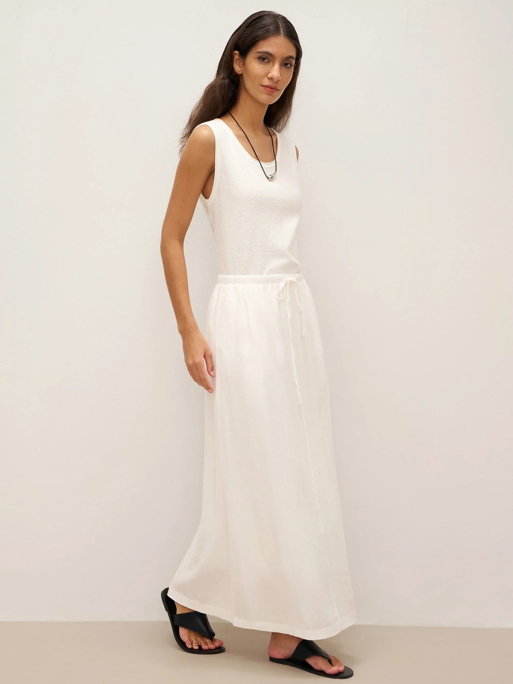 Linen Elastic Waist Drawstring Maxi Skirt Nina