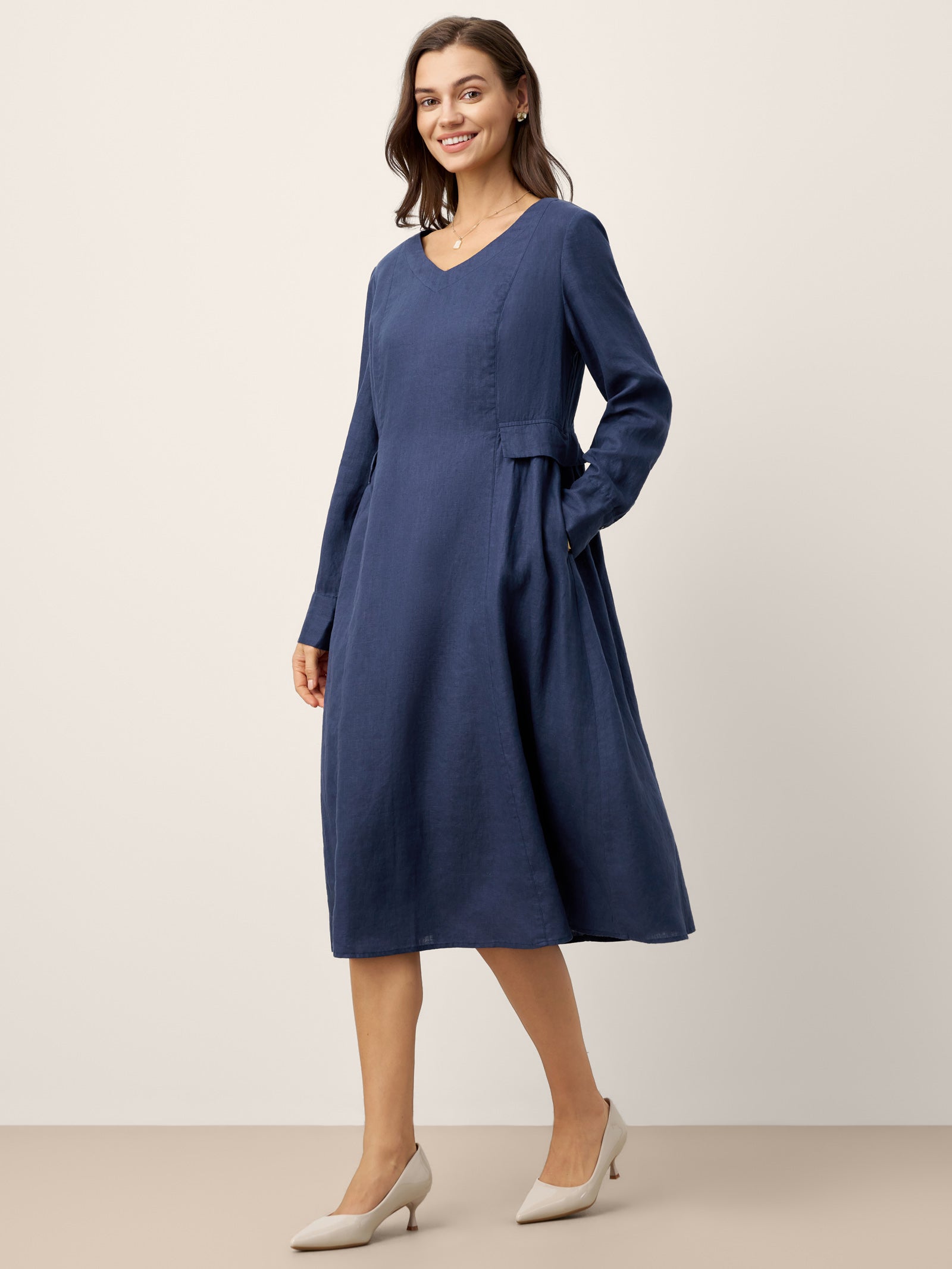 - Side-Seam Waist Flap Detail: Decorative flap accents at the waist add architectural dimension and layered interest, elevating the dress with understated design character.