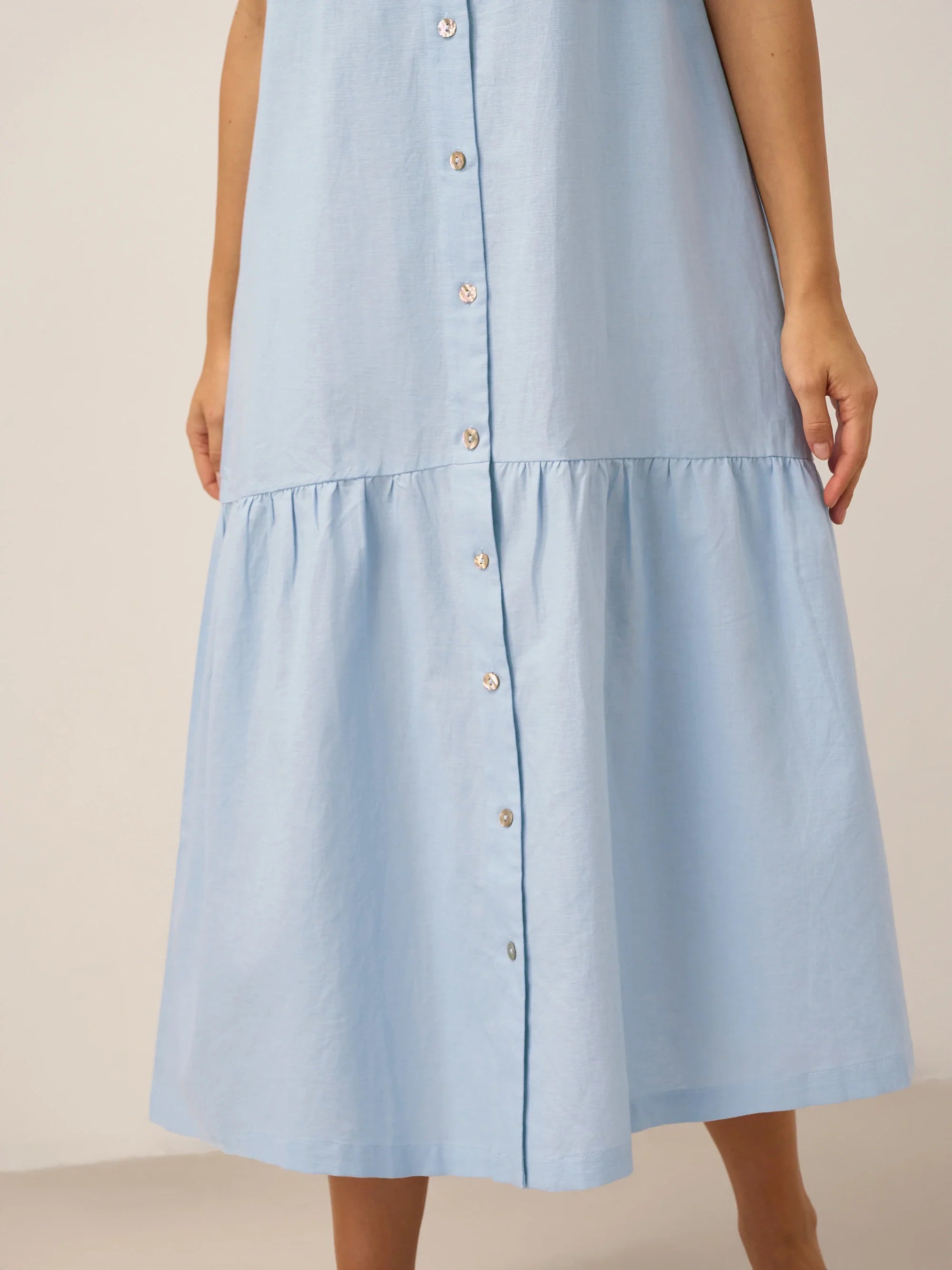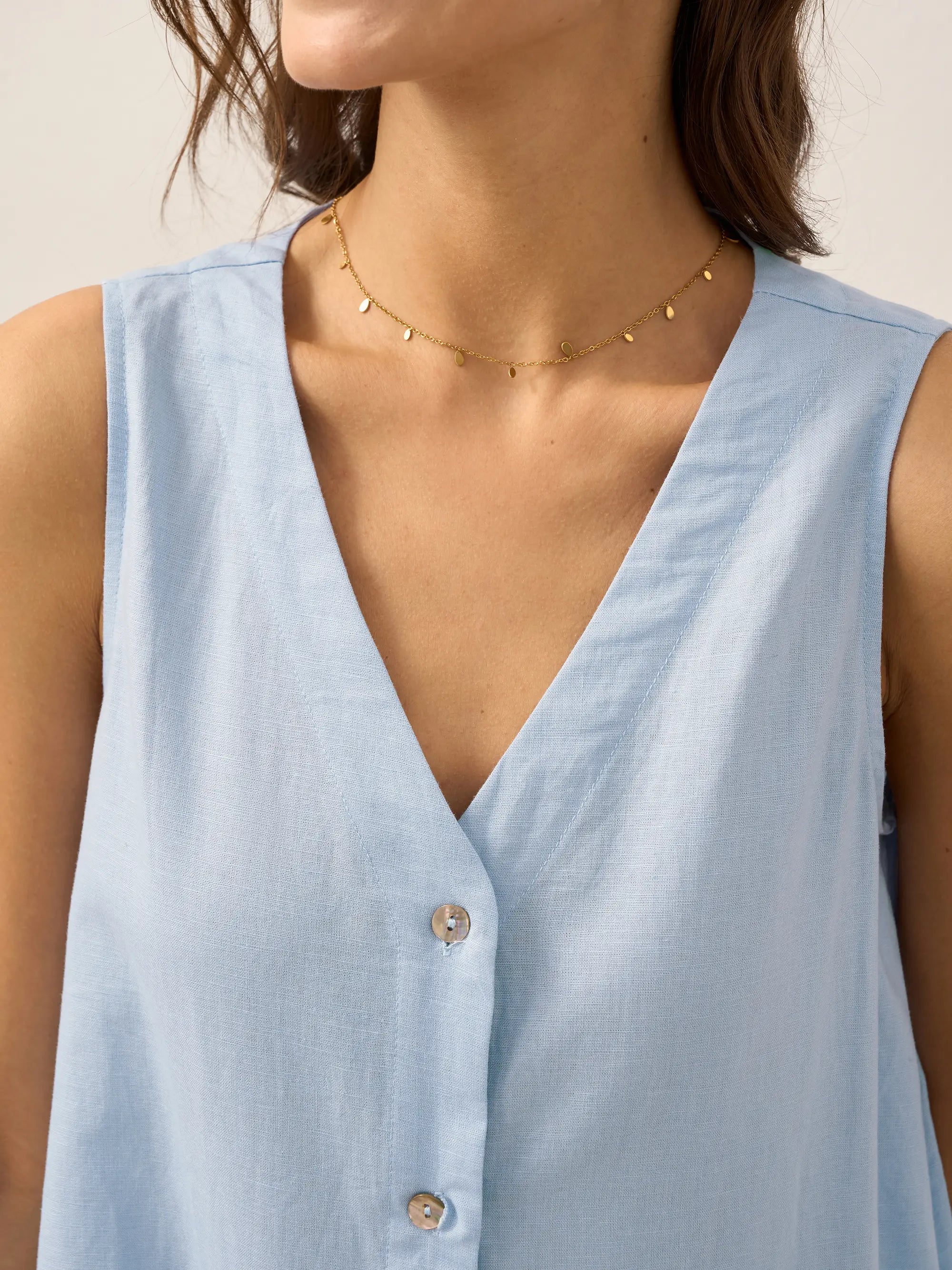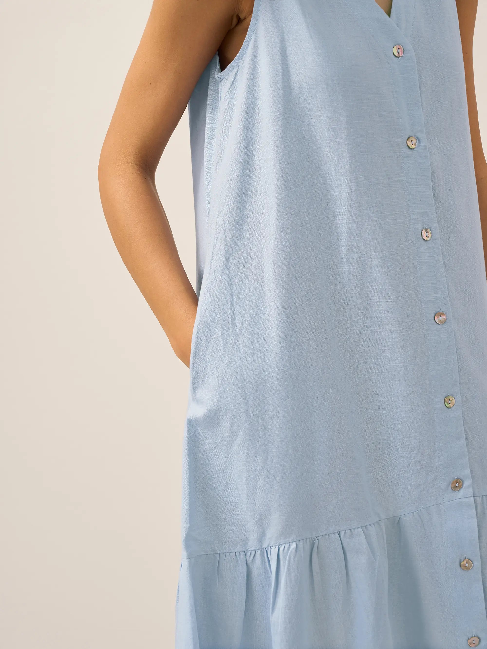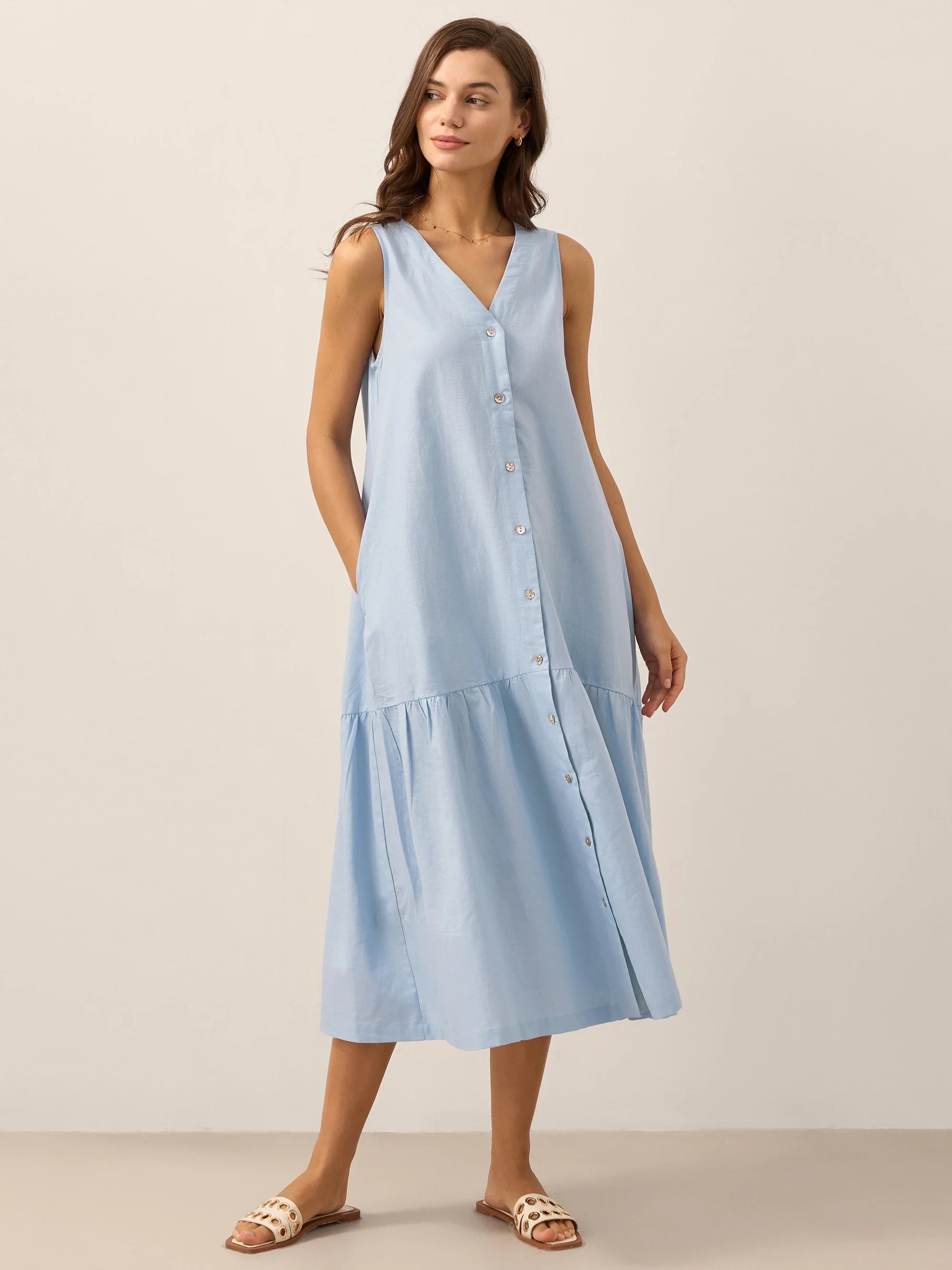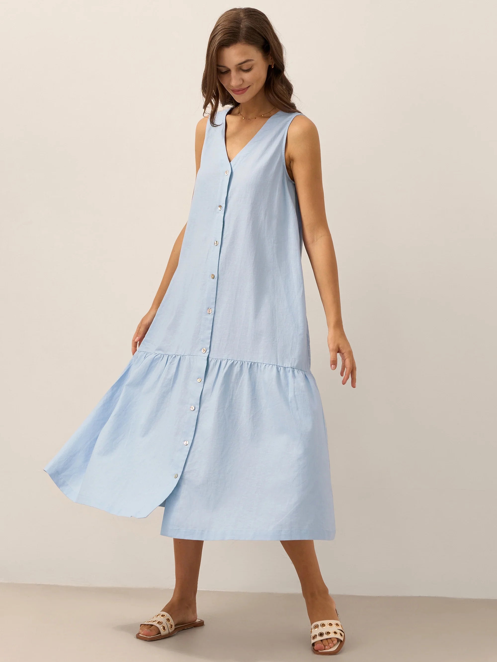Linen Vacation Sleeveless V-Neck Mid-Length Dress CELINE