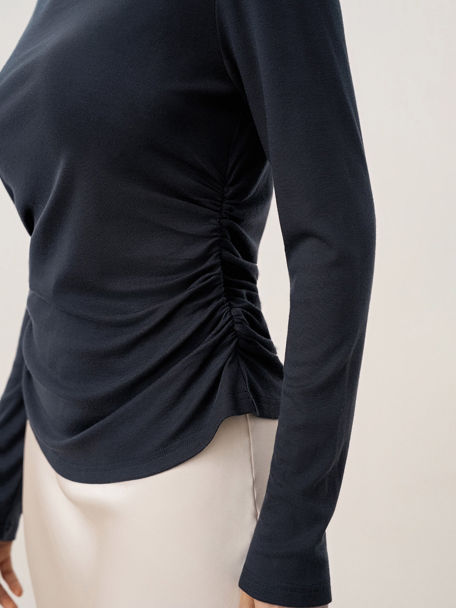 Wool Mock Neck Waist Pleat Top ISOLDE