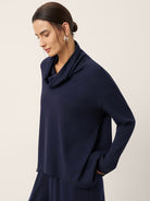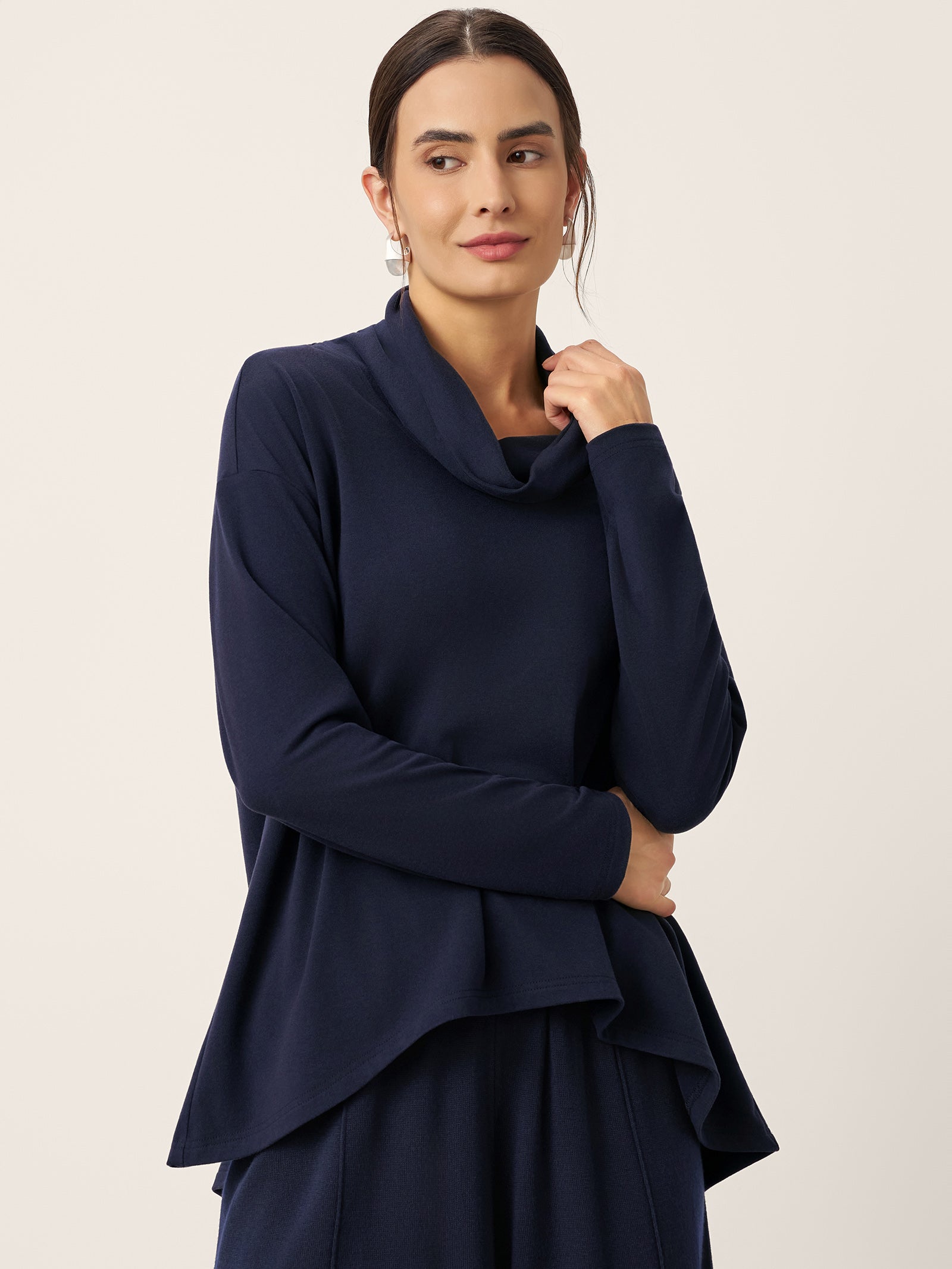 • Graceful Draped Cowl Neck: Softly frames the face and décolletage for a naturally flattering, feminine look