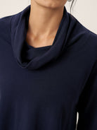 Unfurl effortless elegance in our Navy Cotton Draped Neck Top, where soft folds frame the décolletage and a flowing A-line silhouette moves with serene grace.
