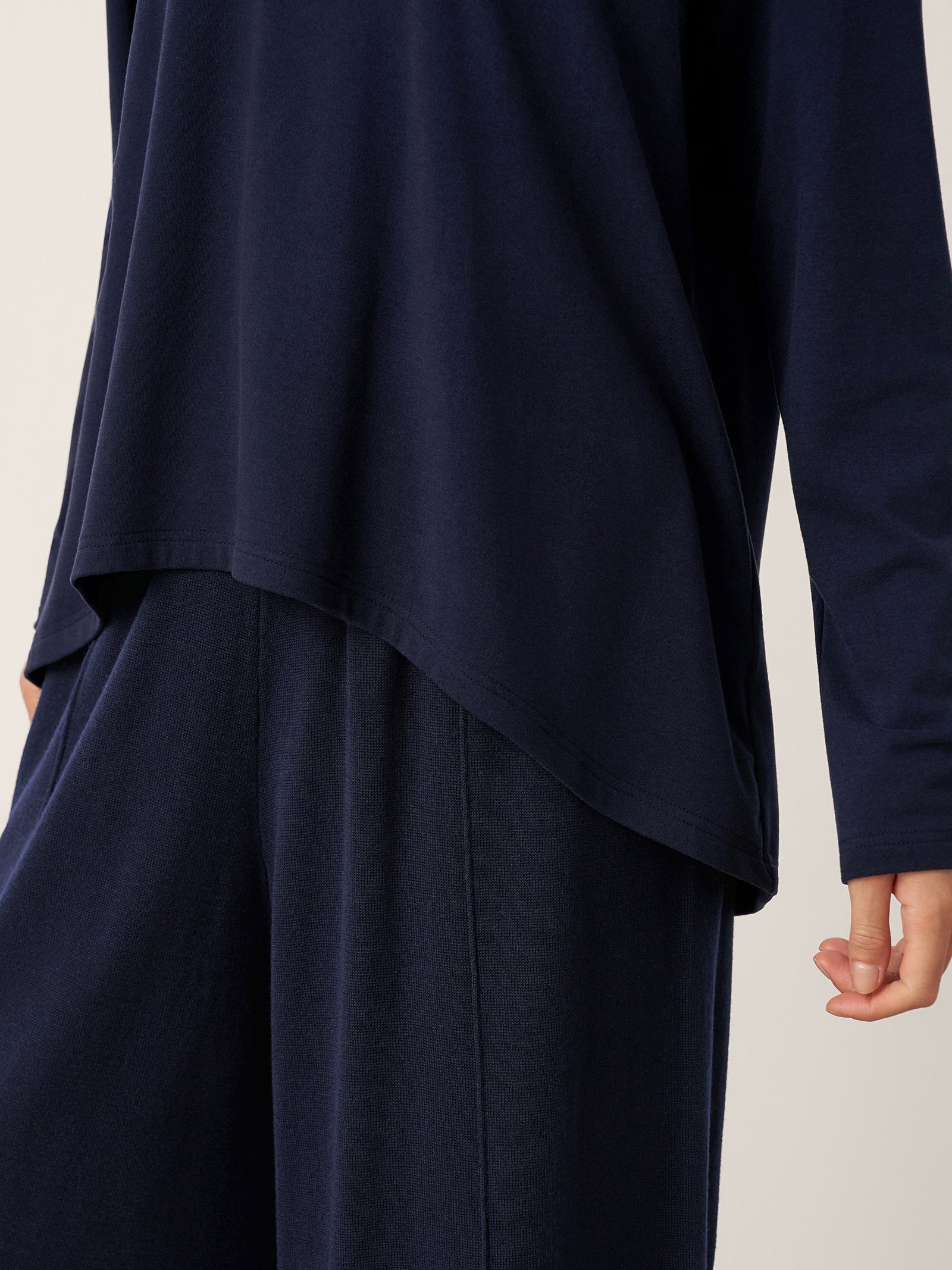 Cotton Draped Neck A-Line Long Sleeve Top KAY