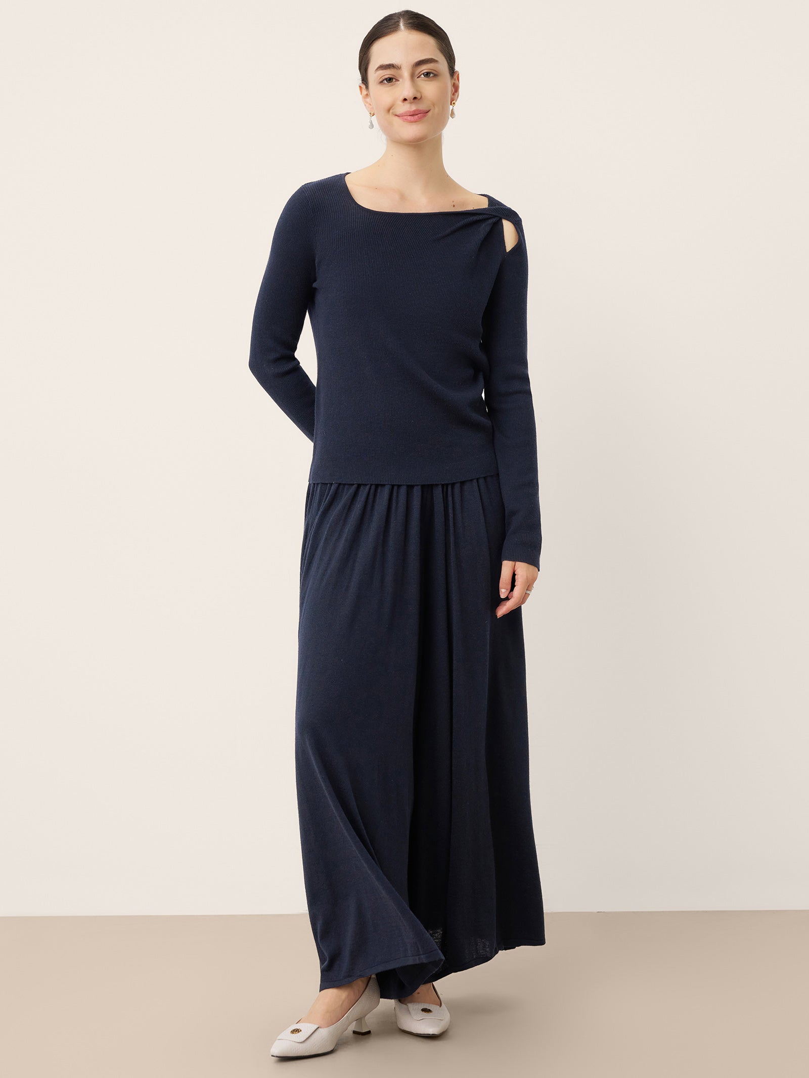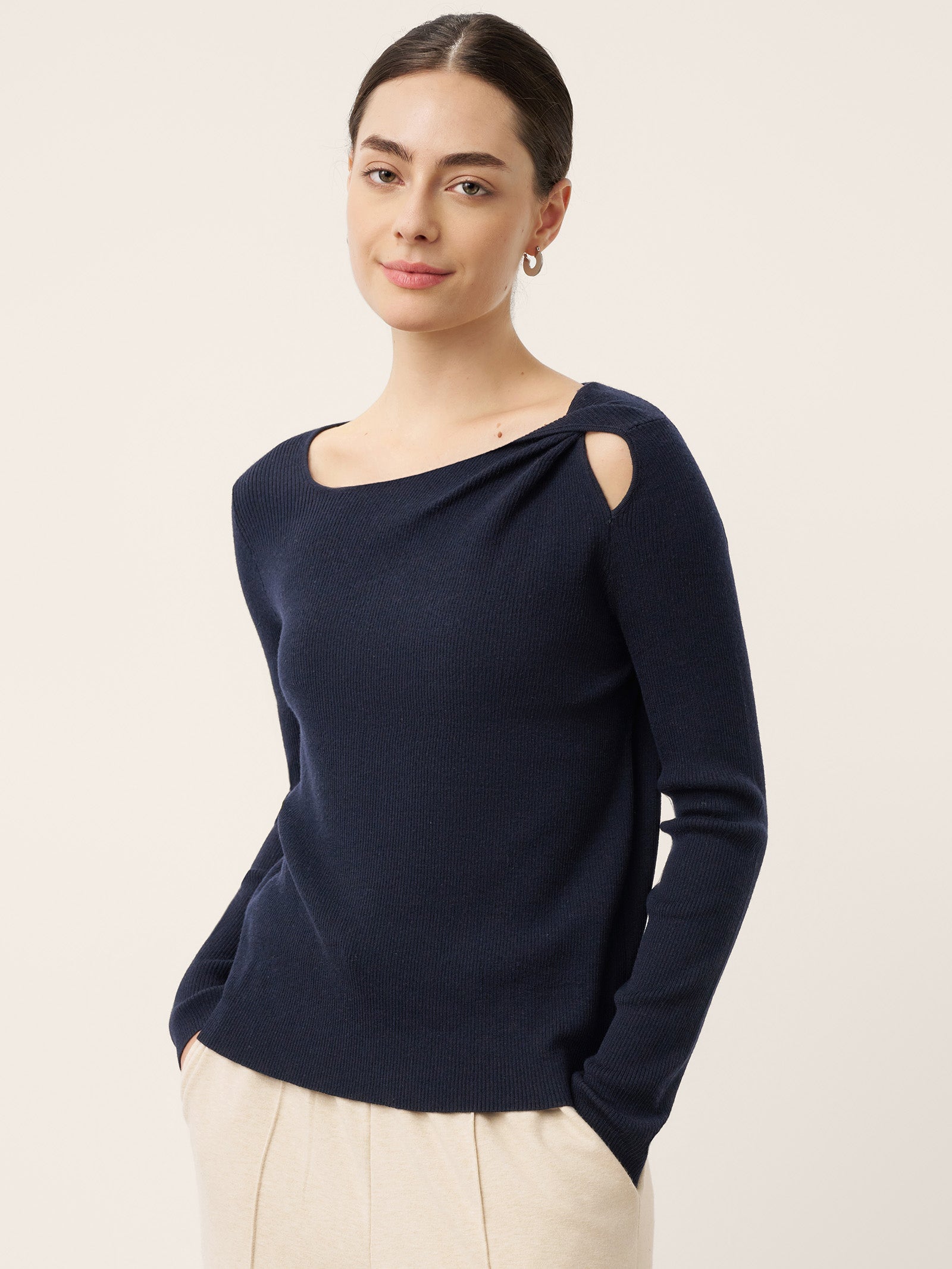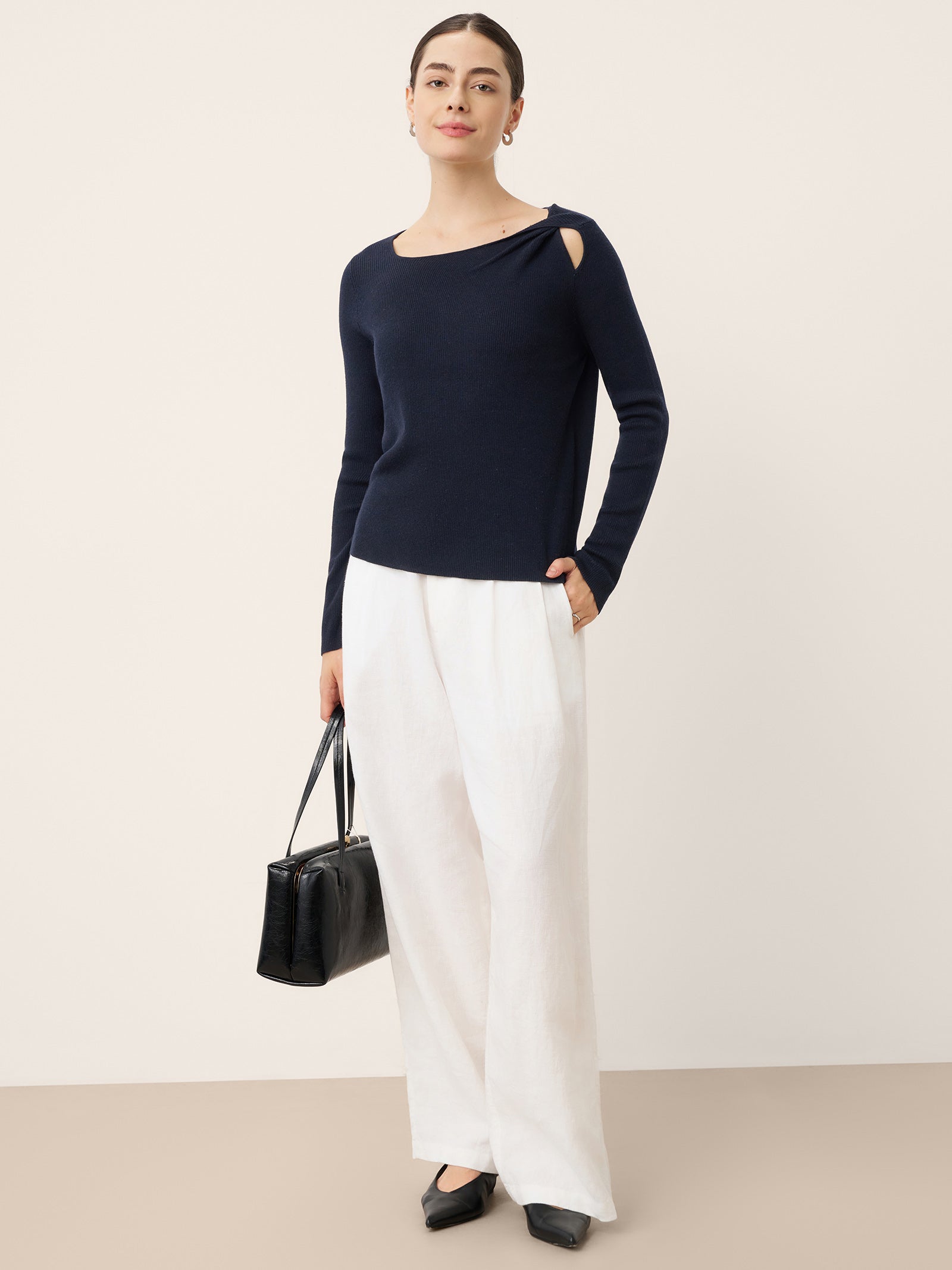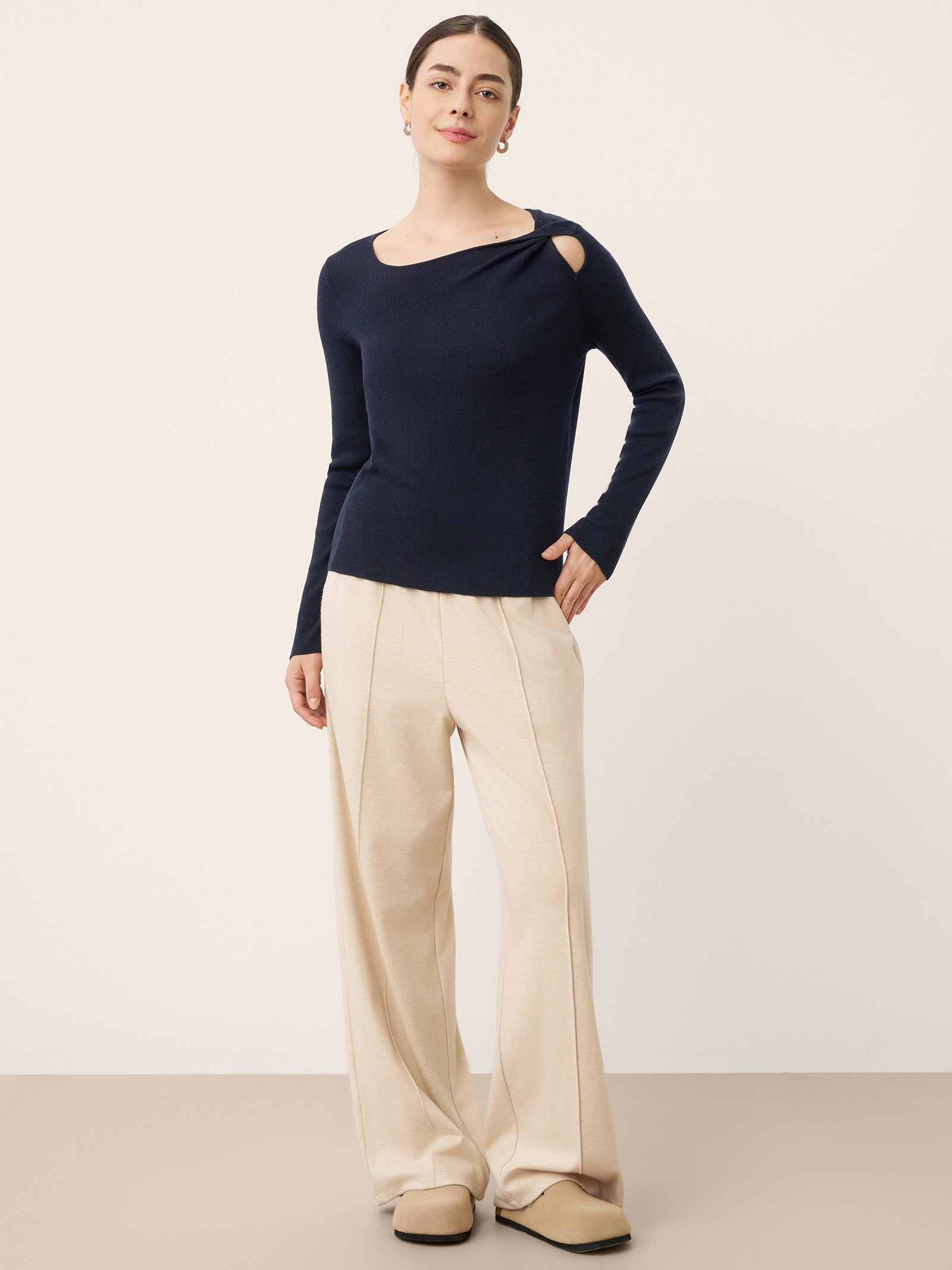 Wool Knot Detail Asymmetric Cutout Top QUINNLEY